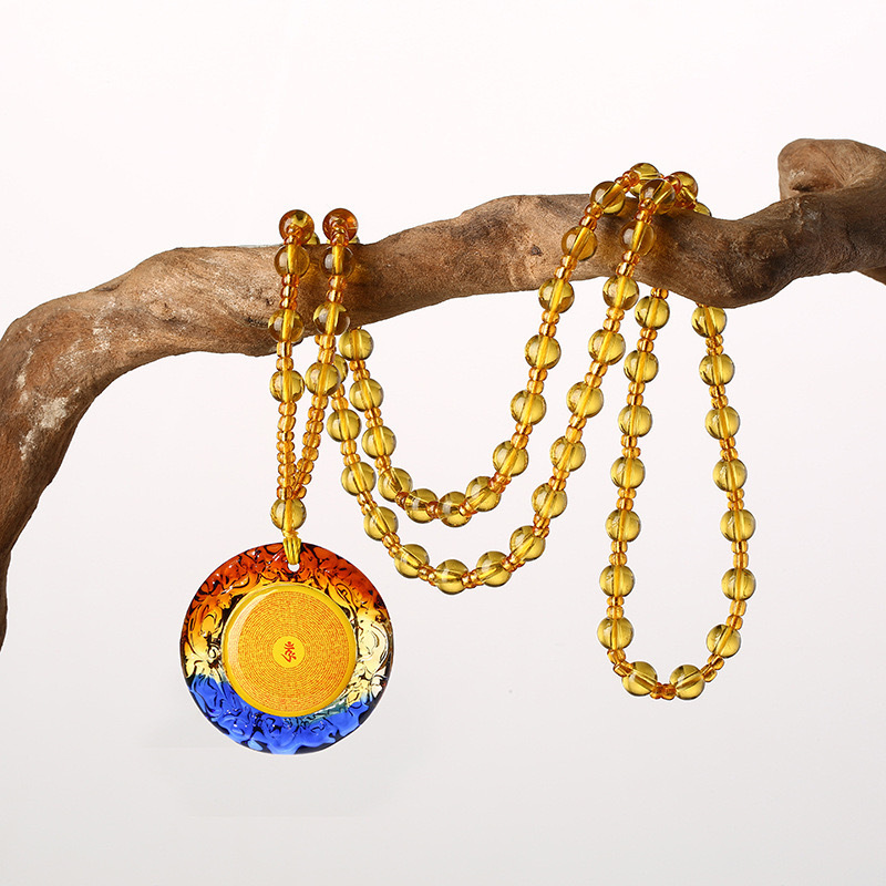 厂家直销新款琉璃楞严咒项链挂件多彩琉璃经文吊坠批发佛像可换