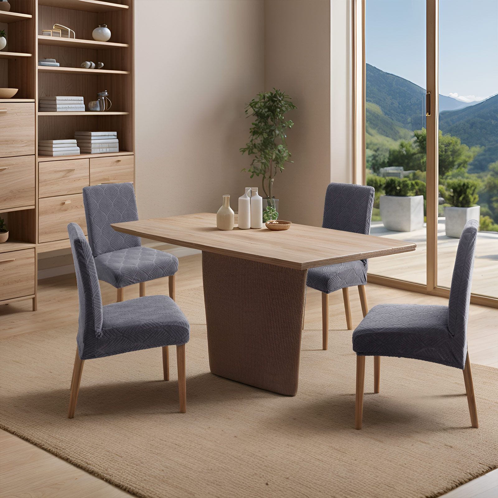 小叶子简约弹力万能通用餐椅套罩凳子套椅子套罩家用座椅保护套餐
