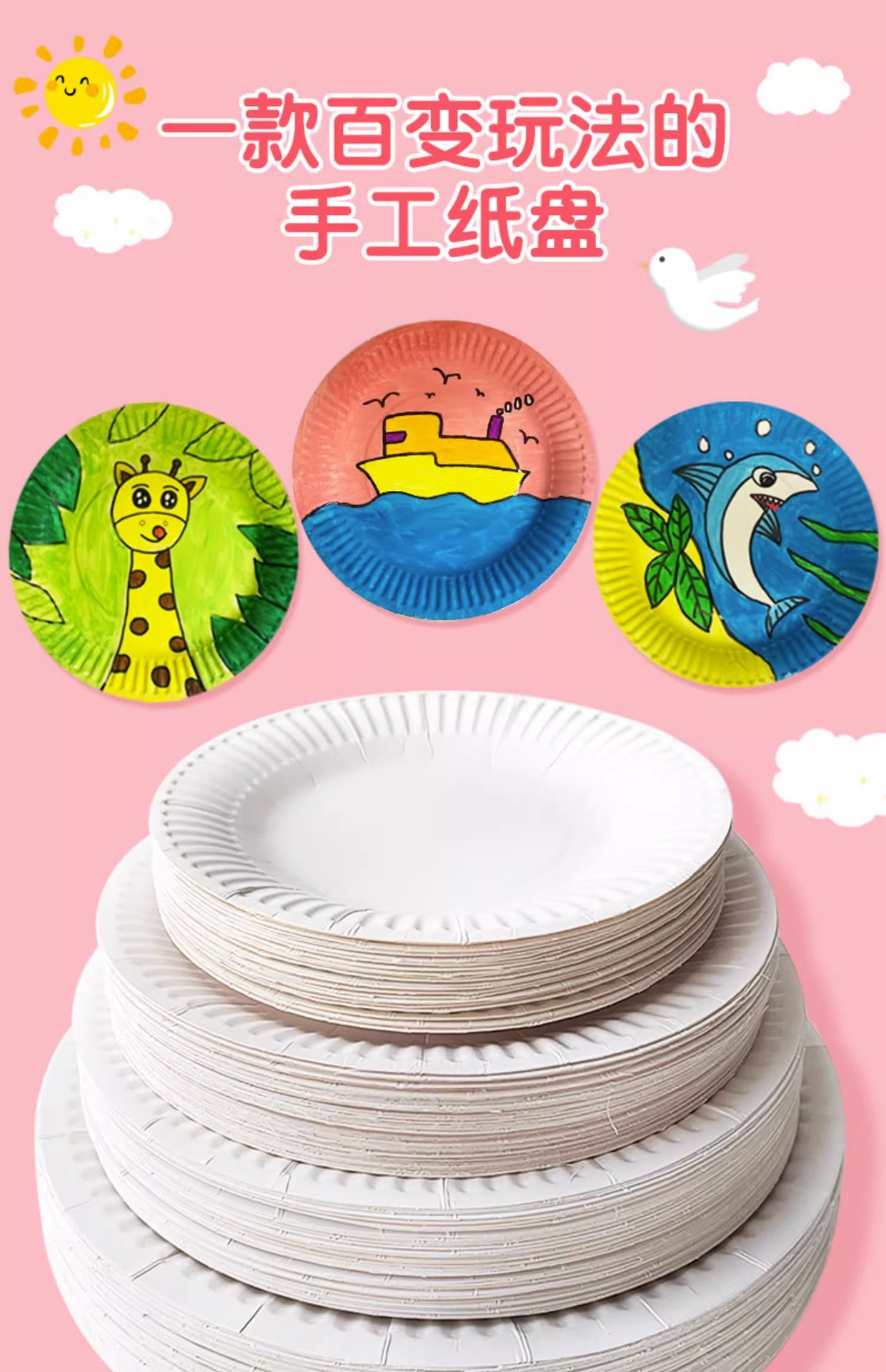 一次性纸盘幼儿园儿童手工diy绘画盘 生日蛋糕烧烤圆形餐盘厂批发