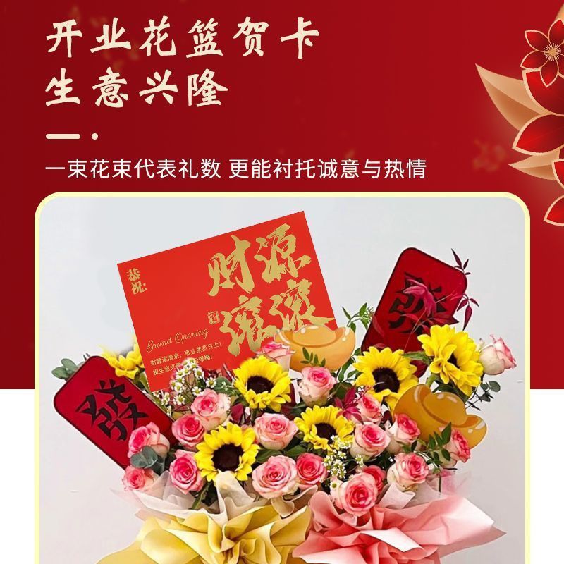 开业大吉花篮卡片开张牌子生意兴隆乔迁之喜花艺装饰祝福卡大卡片