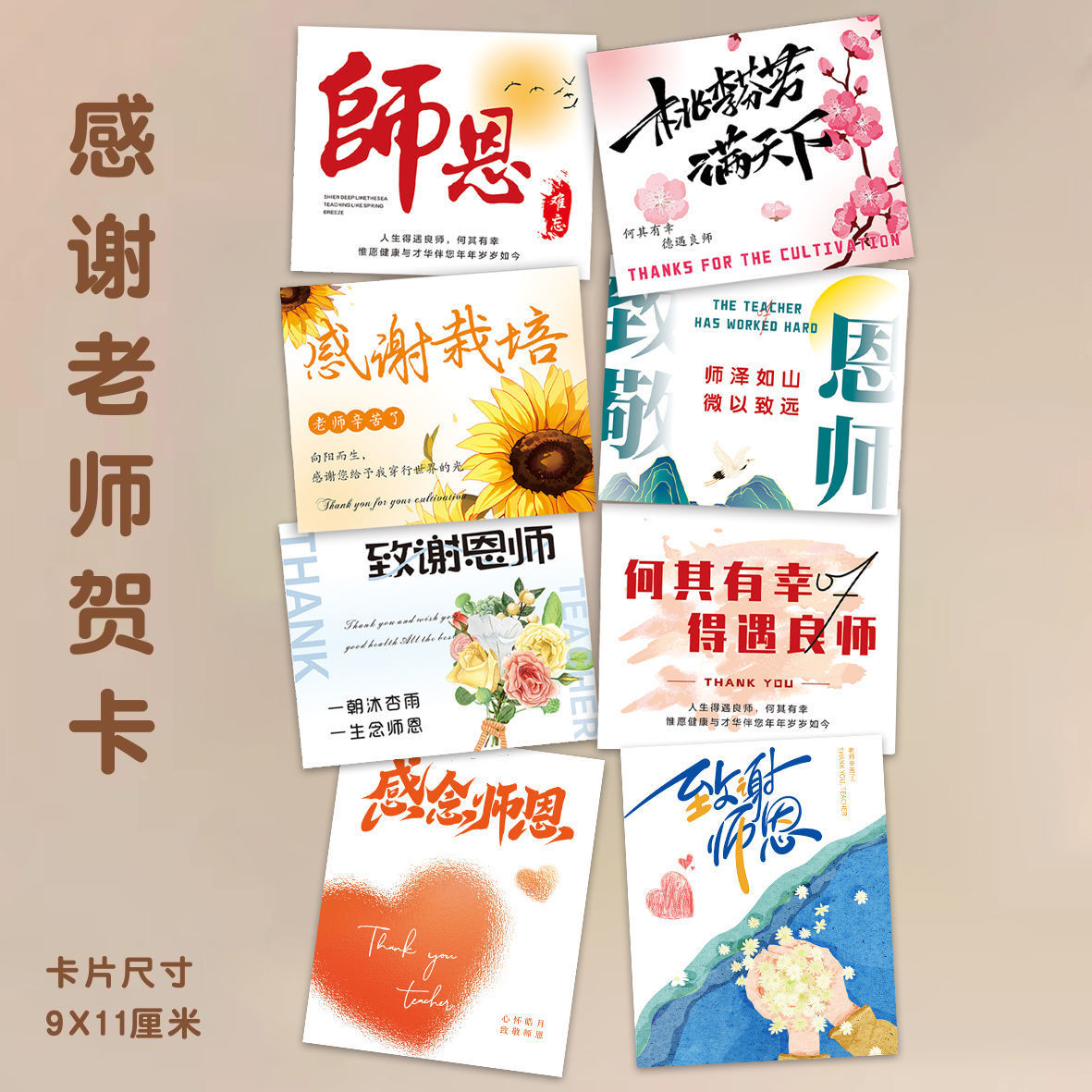 教师节贺卡送老师小卡片学生文字祝福留言花篮手捧花可写字卡片