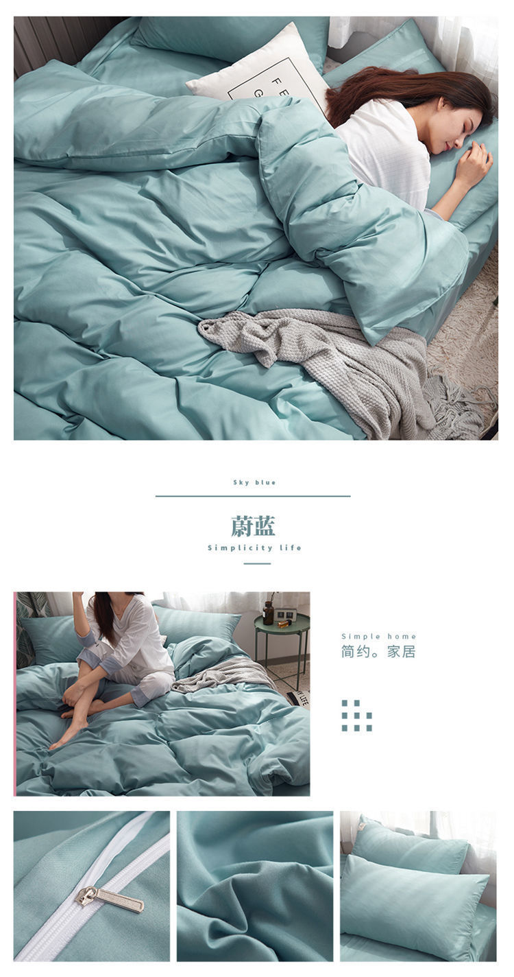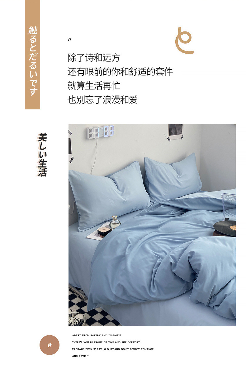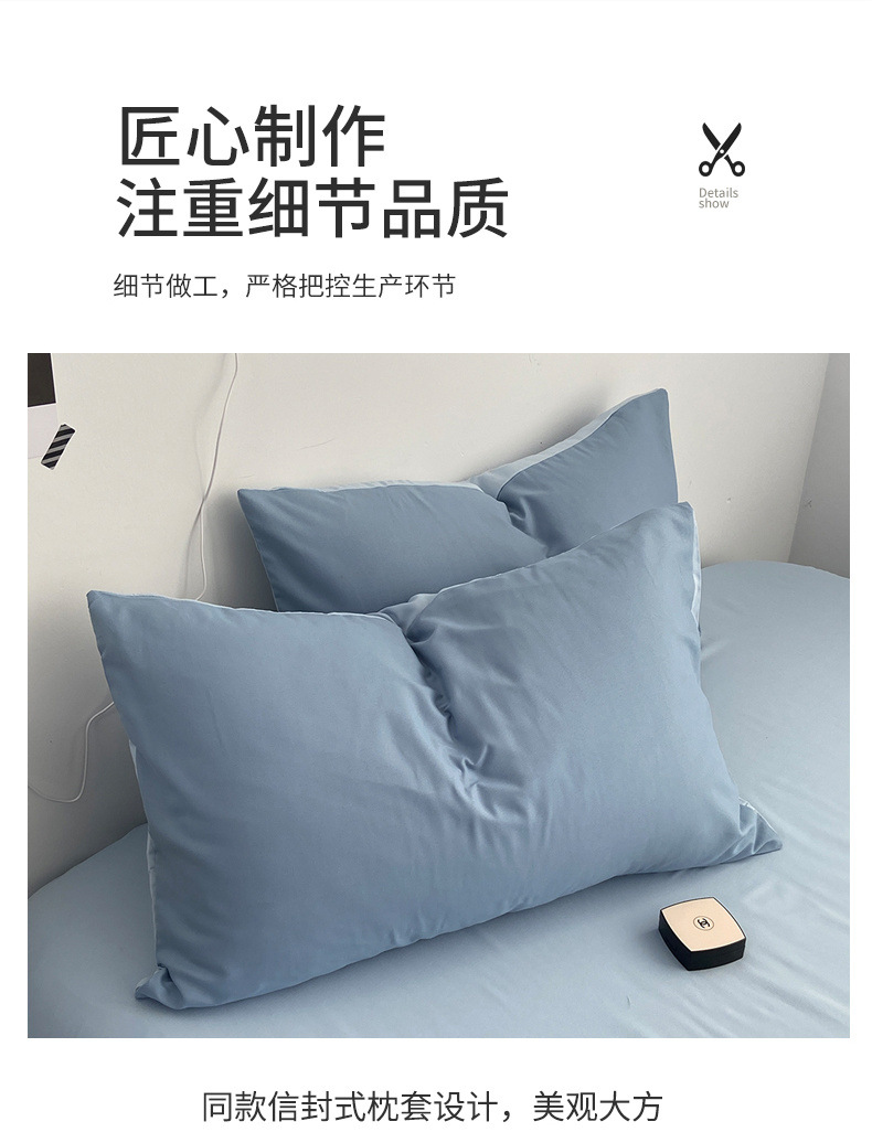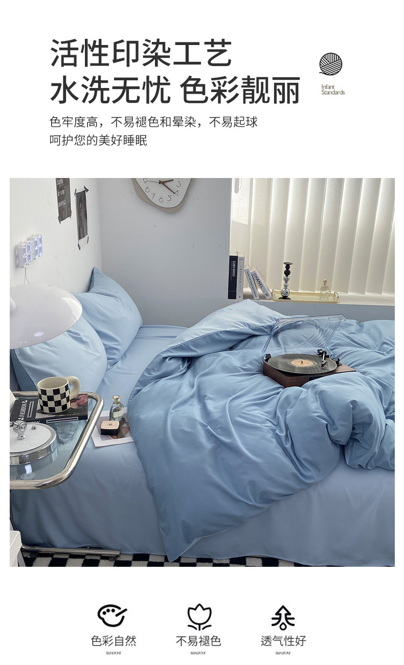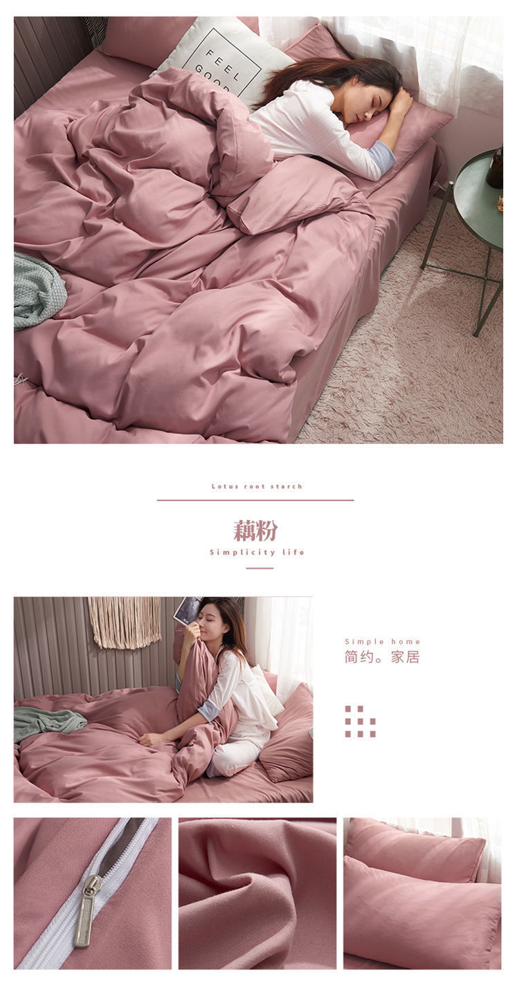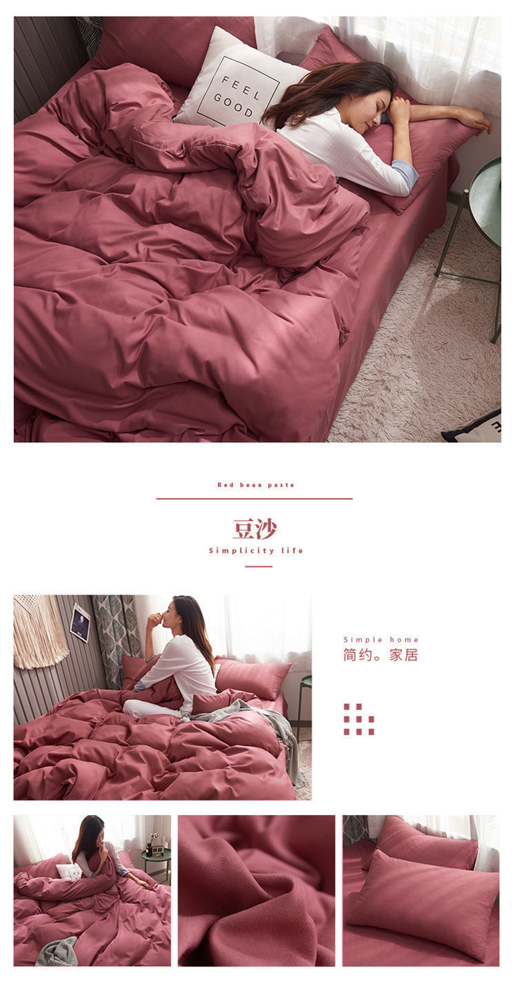 简约夏春秋款水洗棉四件套床单被套学生宿舍单人床上三件套纯色系