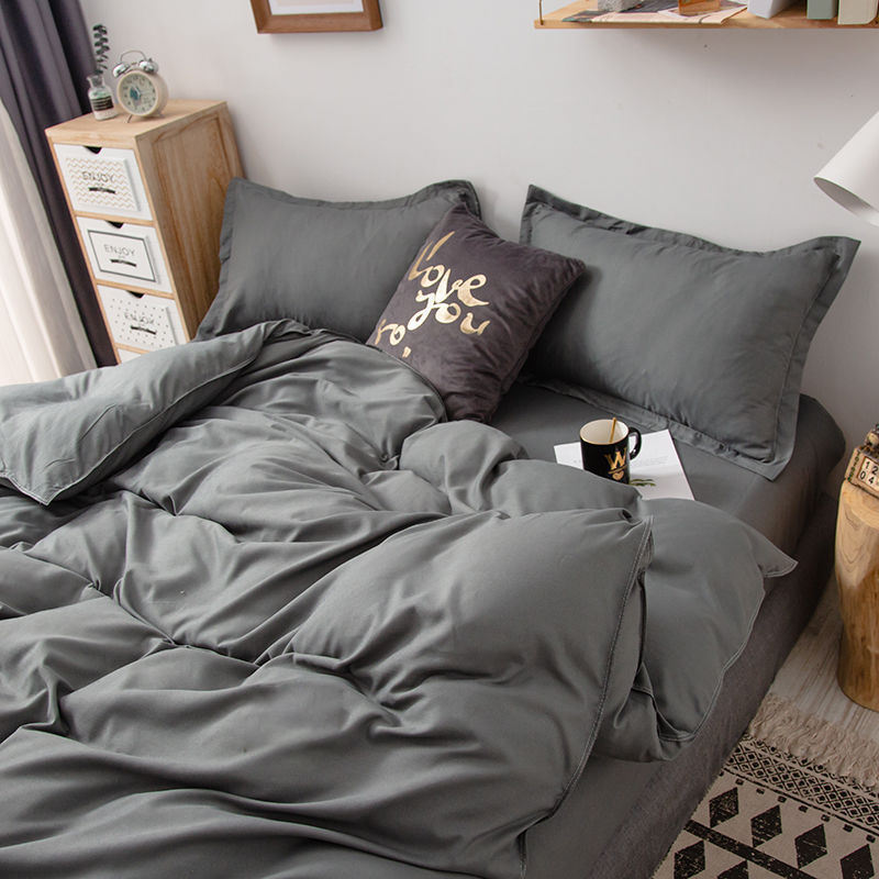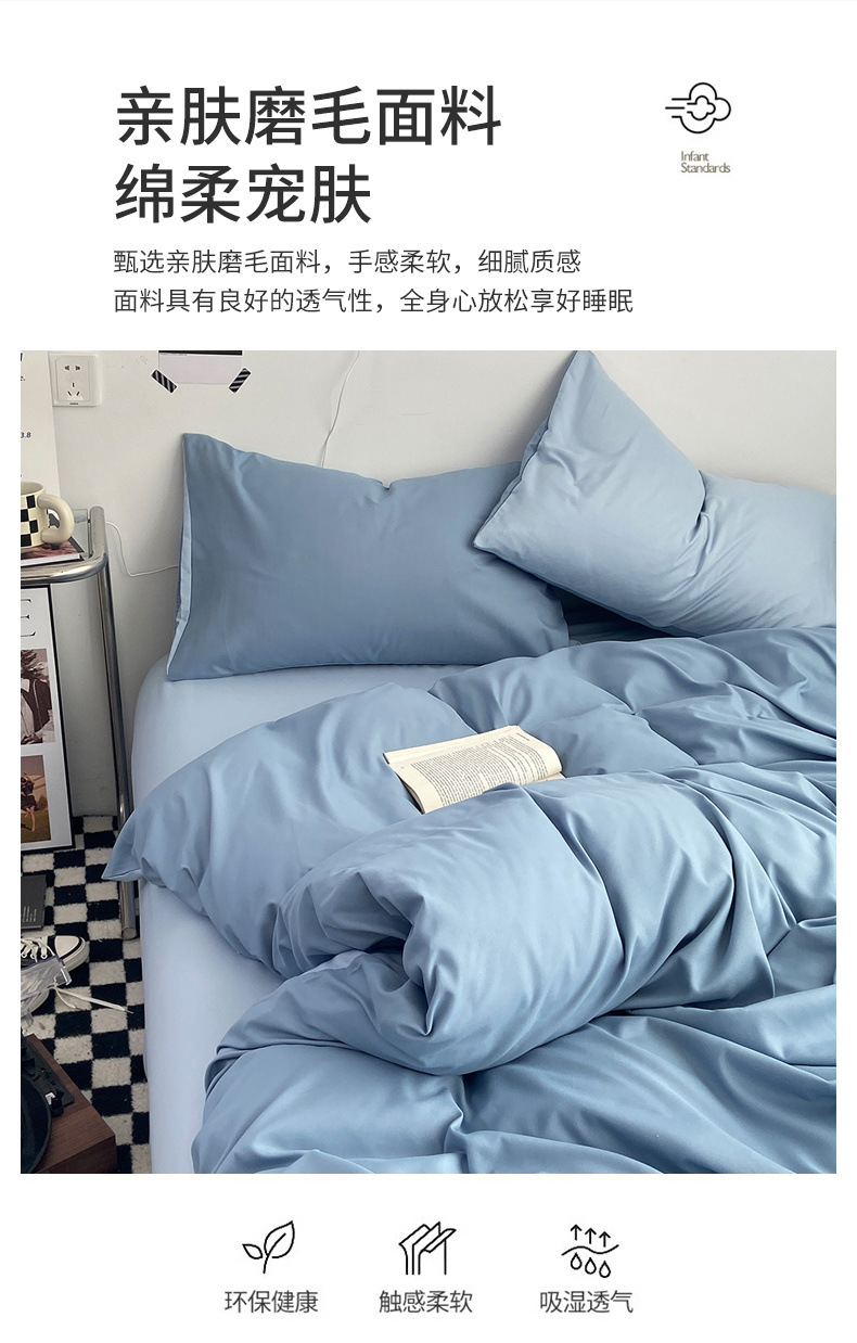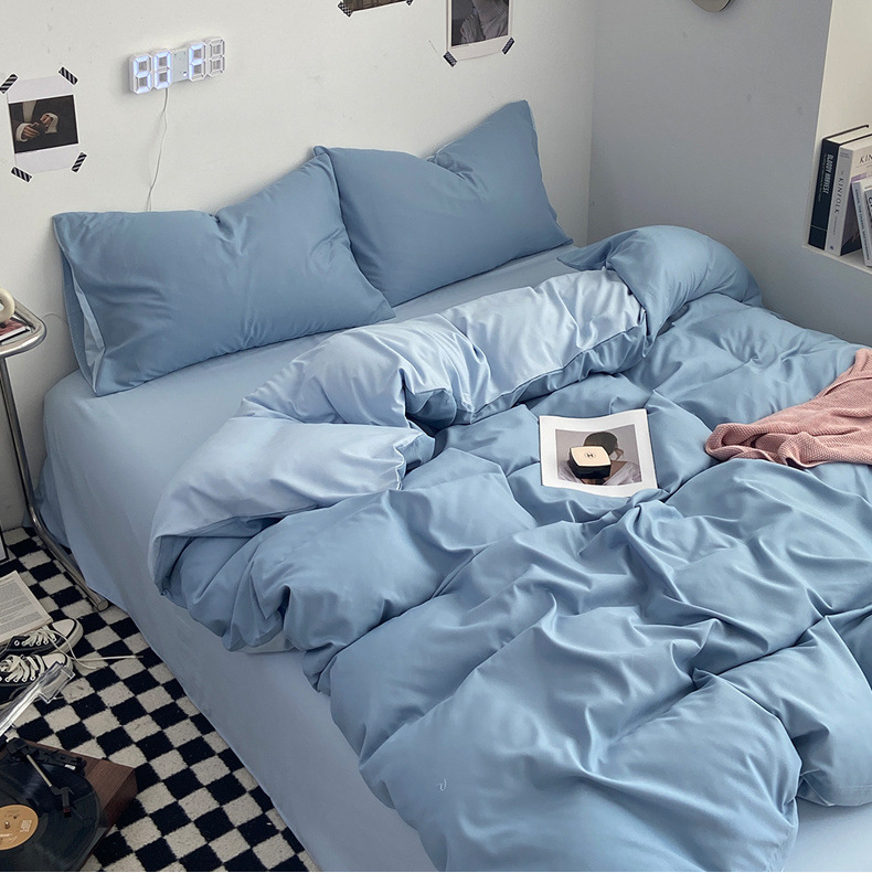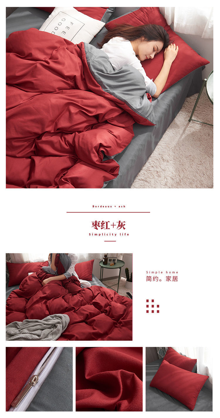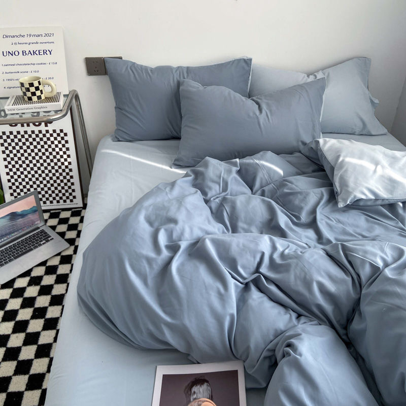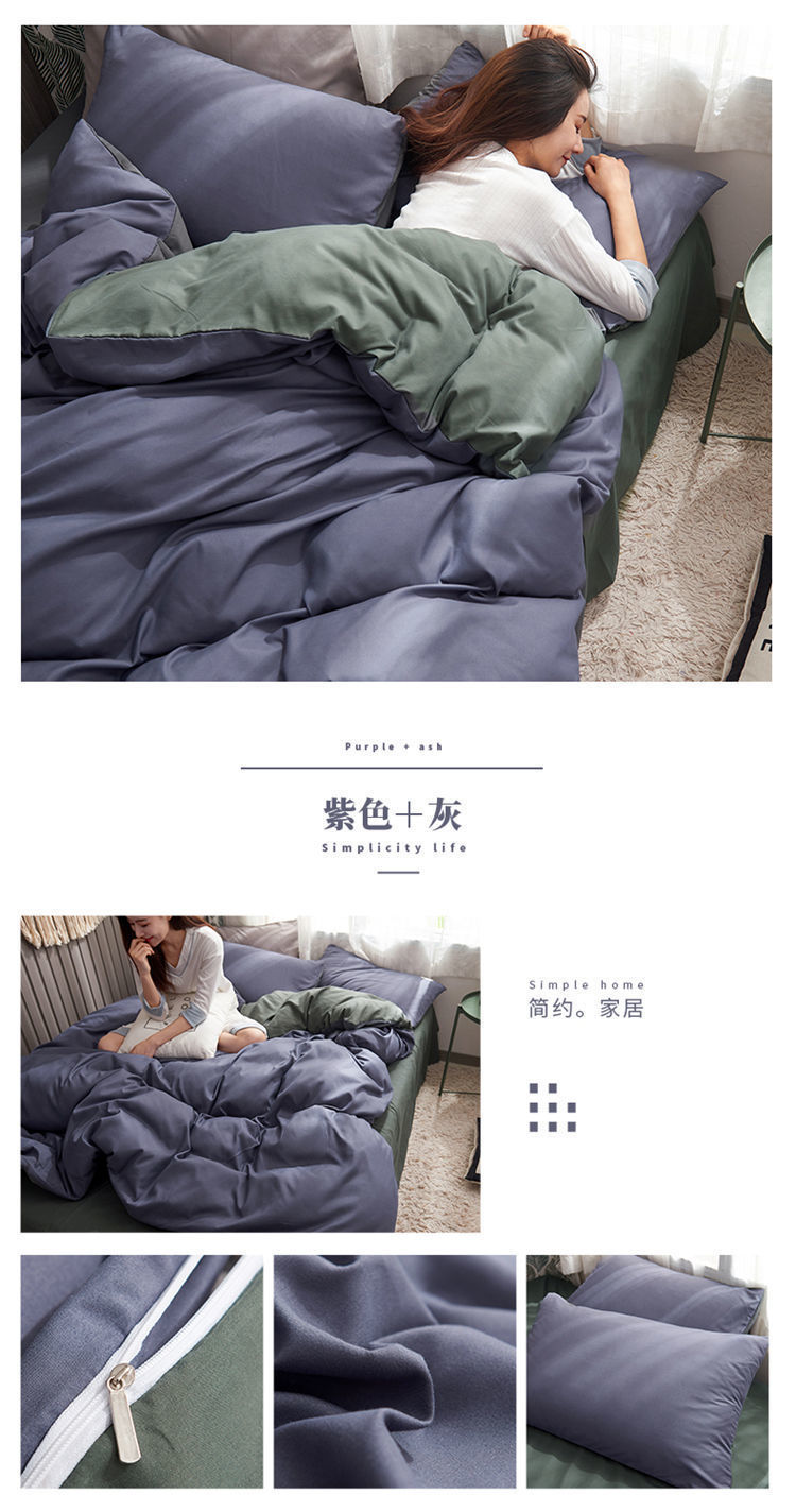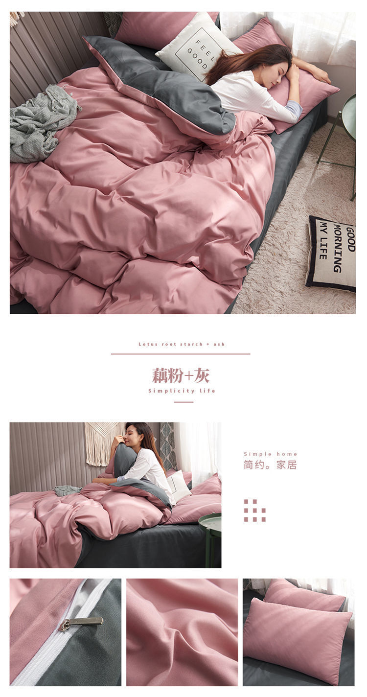 简约夏春秋款水洗棉四件套床单被套学生宿舍单人床上三件套纯色系