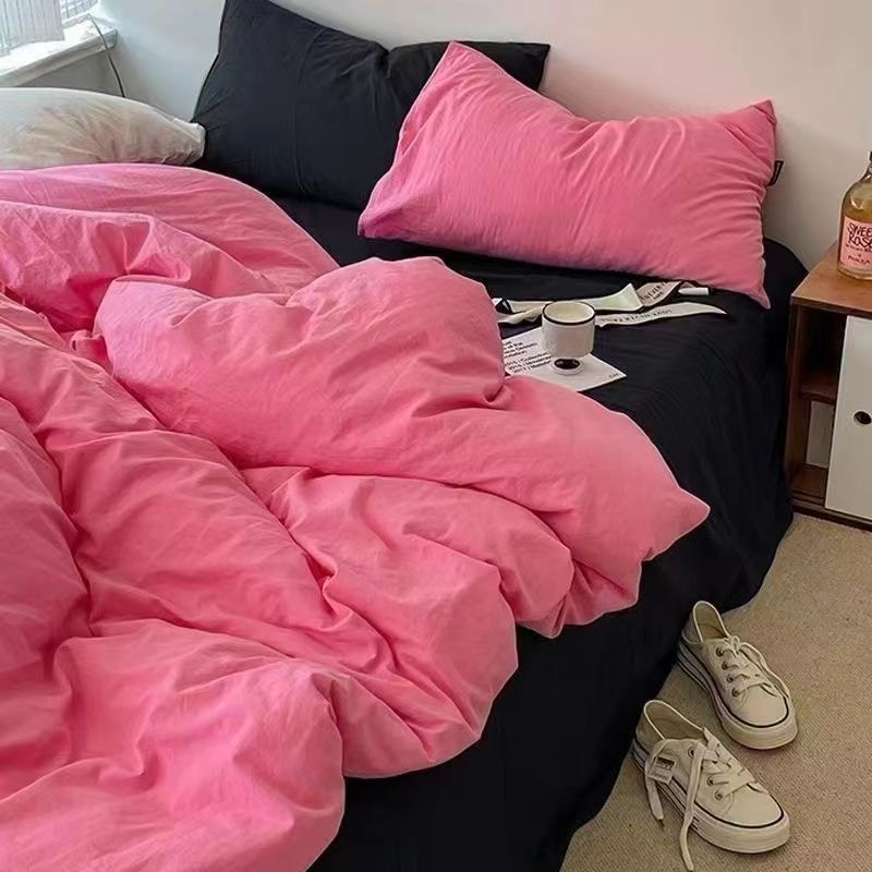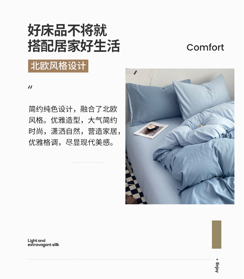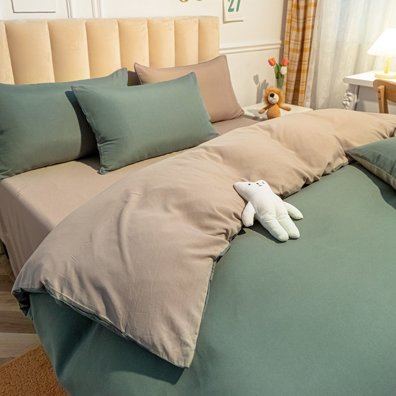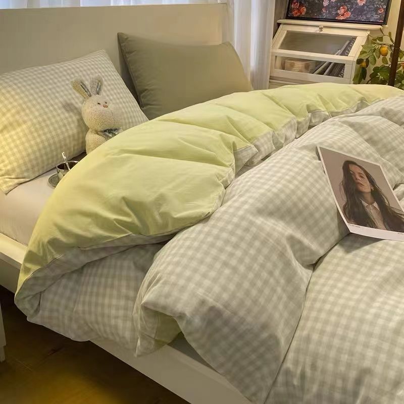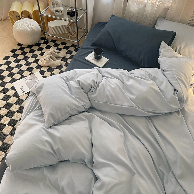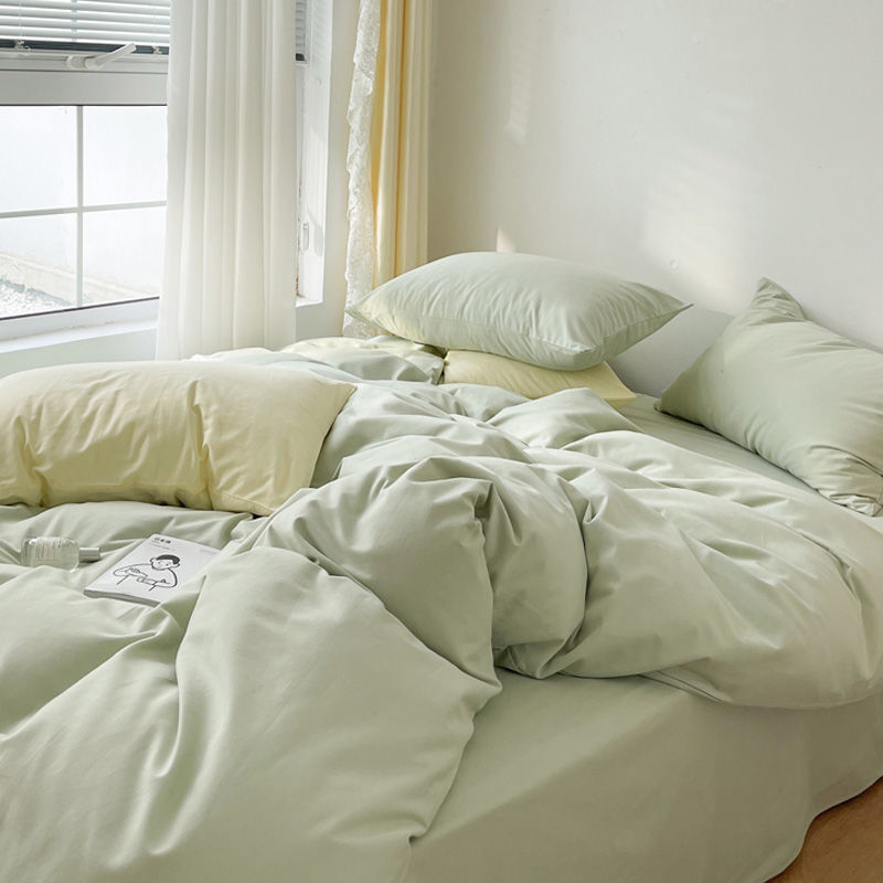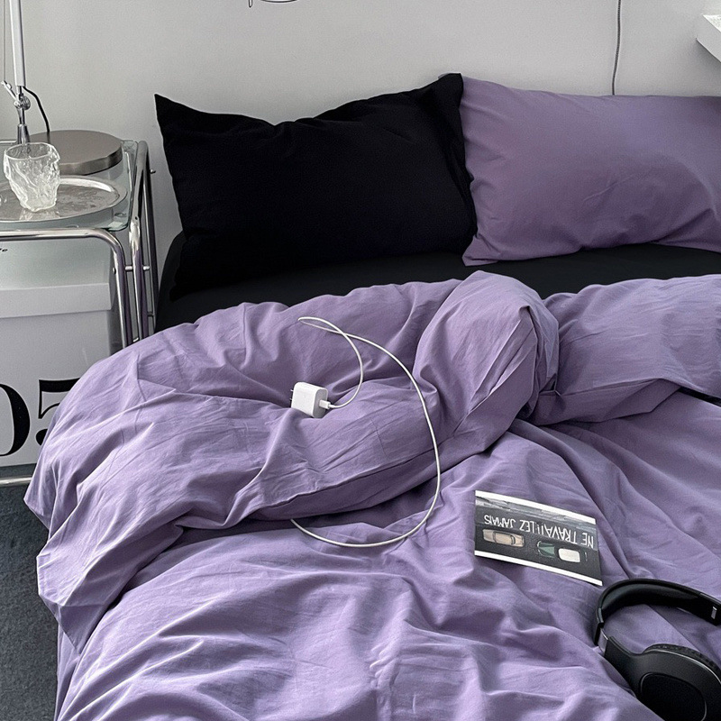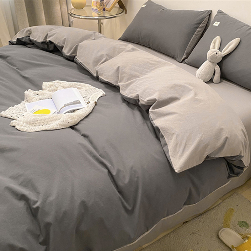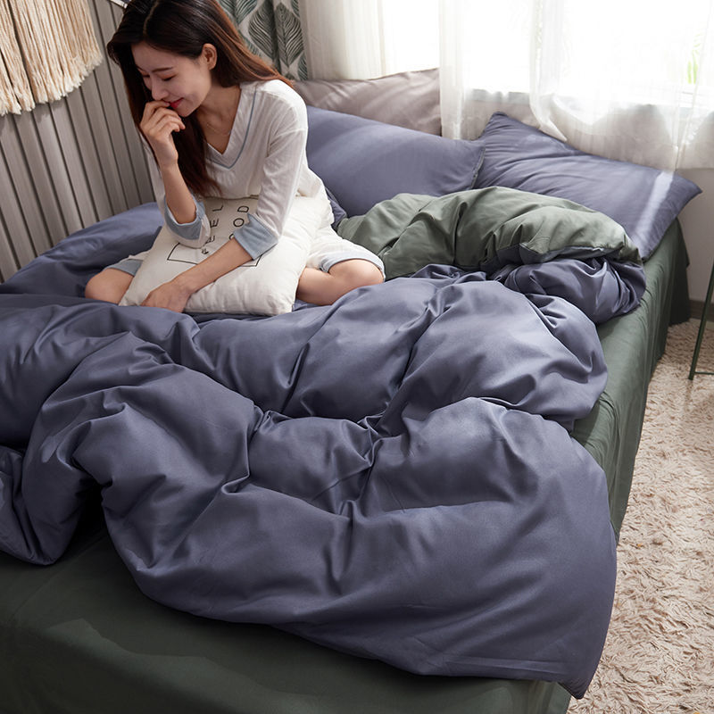 简约夏春秋款水洗棉四件套床单被套学生宿舍单人床上三件套纯色系