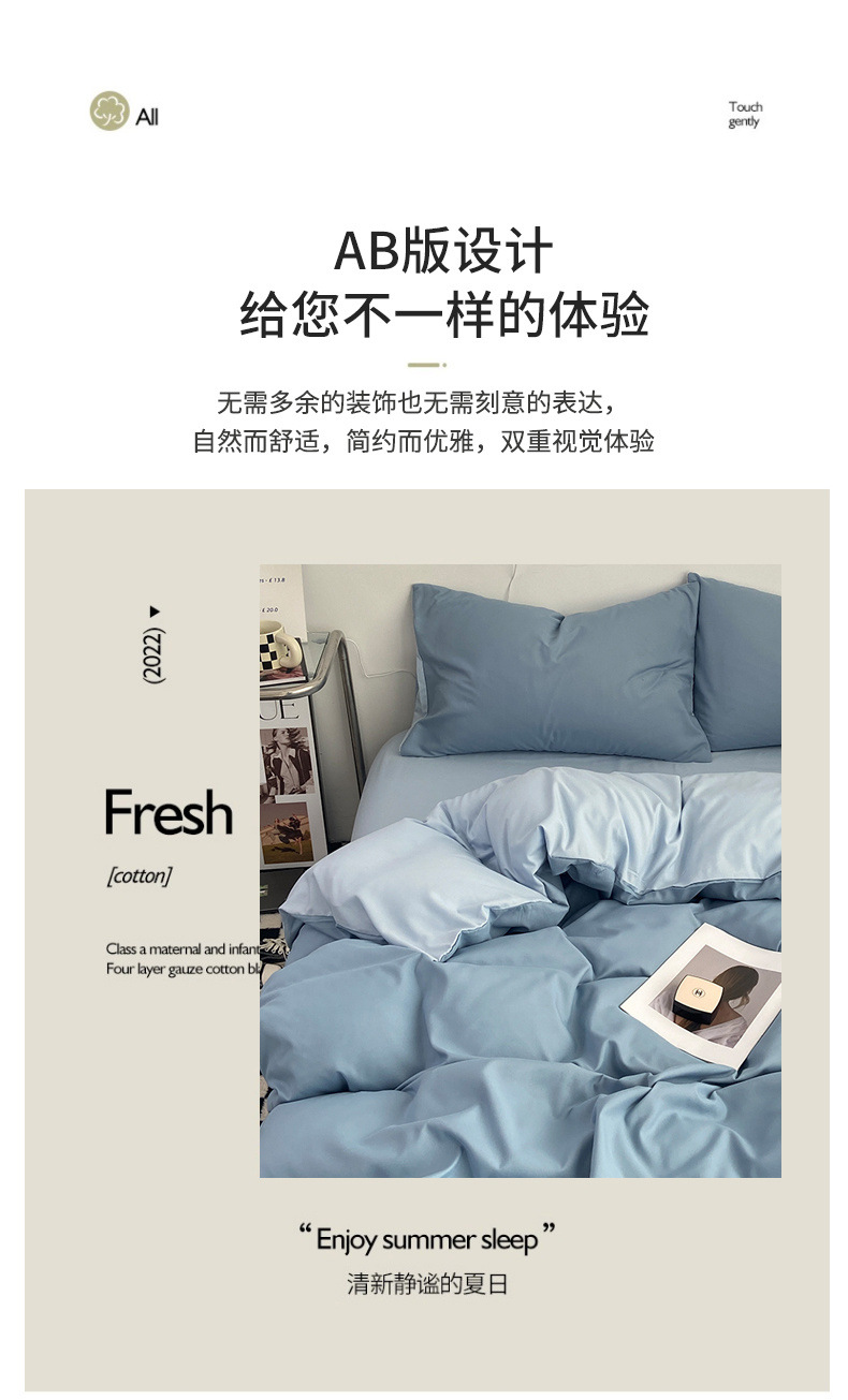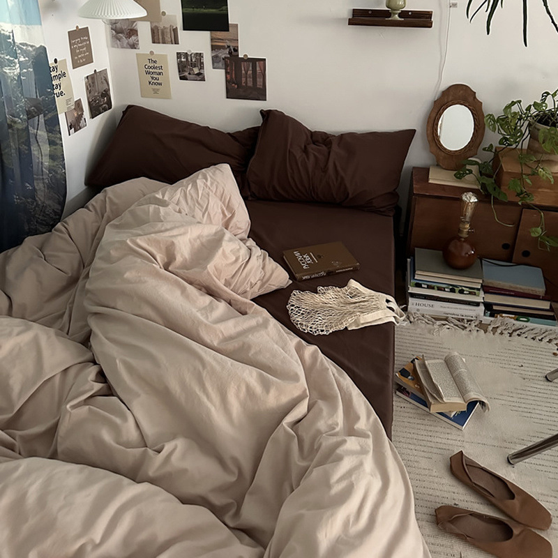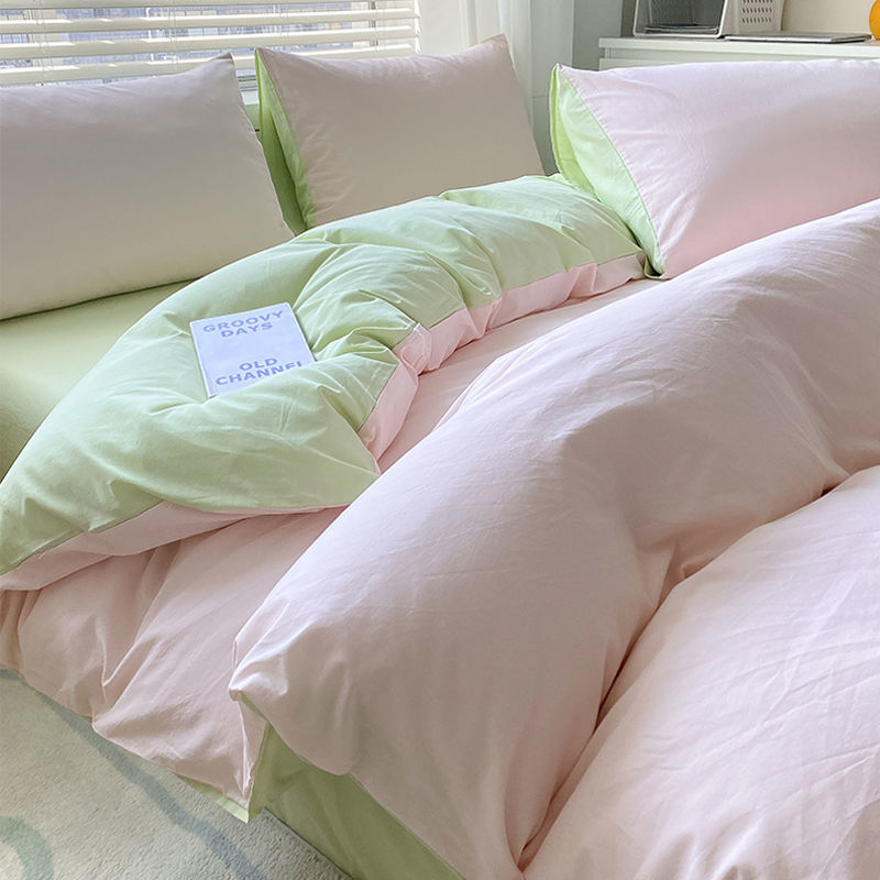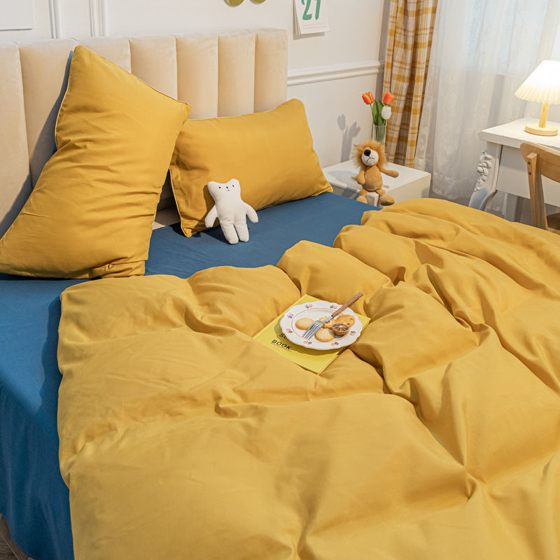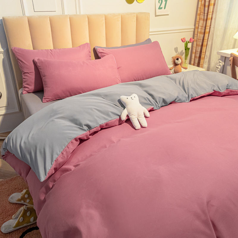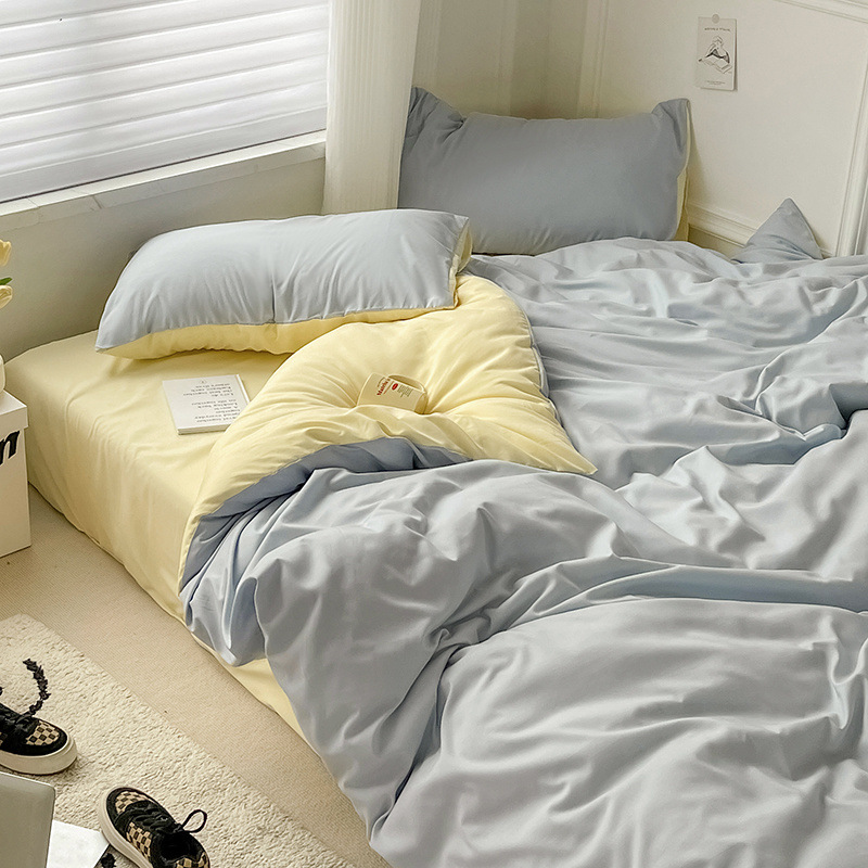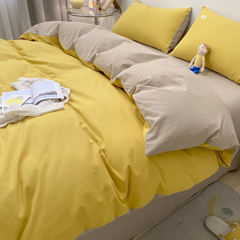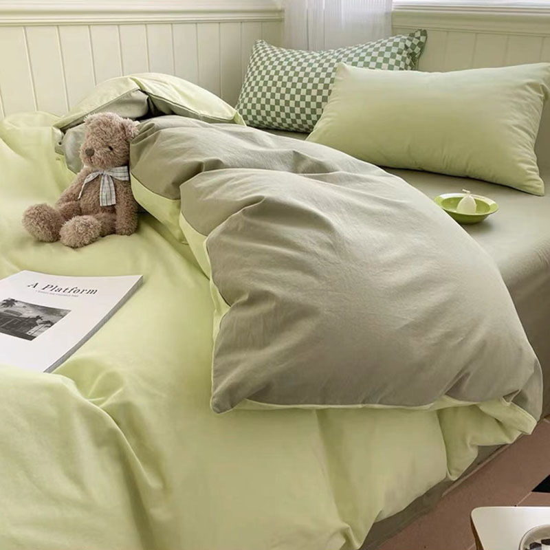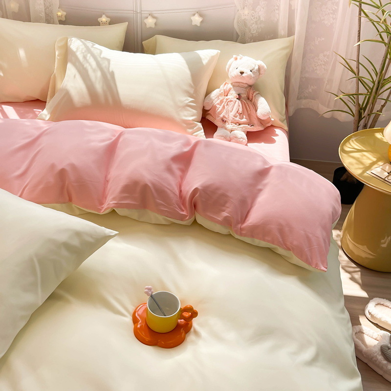 简约夏春秋款水洗棉四件套床单被套学生宿舍单人床上三件套纯色系