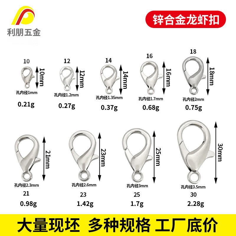 现货锌合金龙虾扣DIY饰品配件电镀项链扣手链连接扣箱包钥匙搭扣