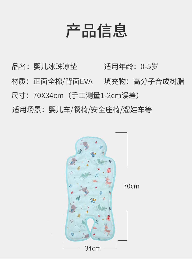 婴儿纯棉推车凉席宝宝安全座椅冰垫儿童推车餐椅冰垫靠垫冰珠凉垫