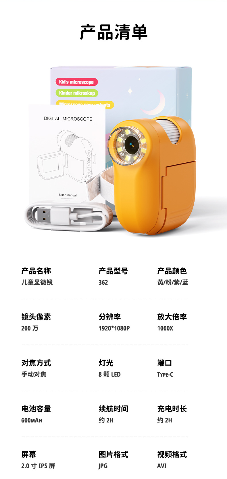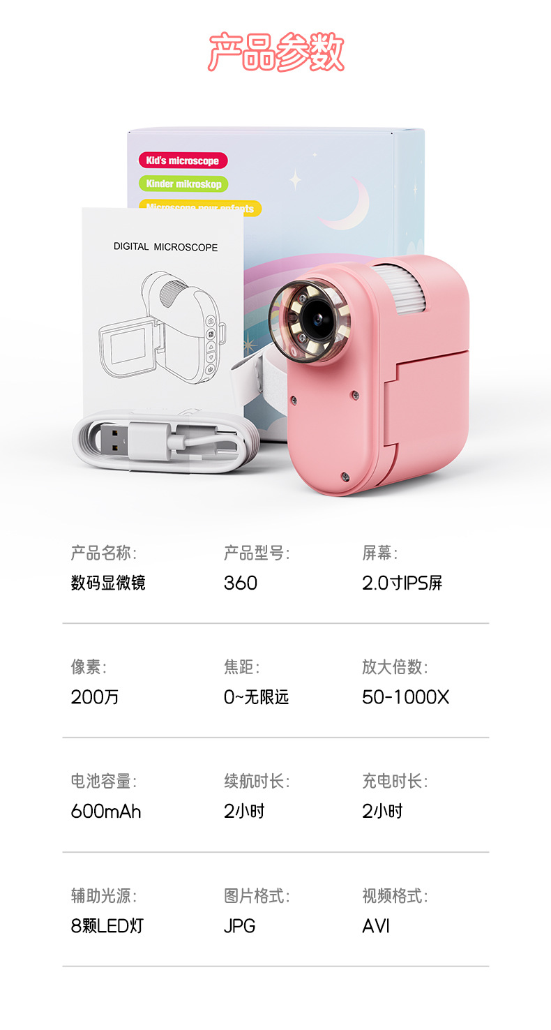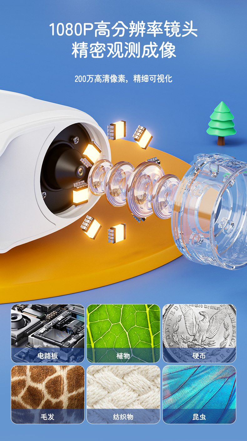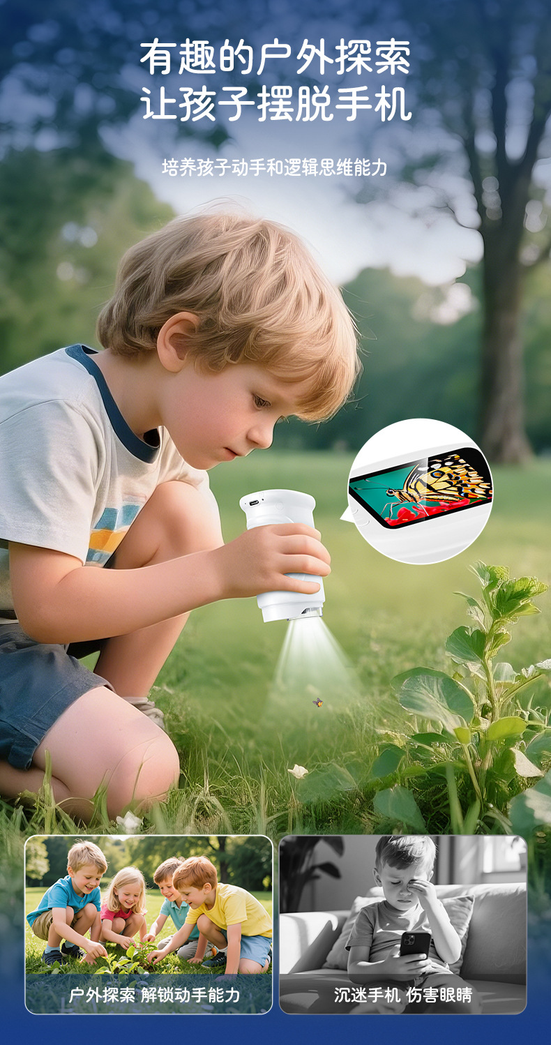 新款儿童显微镜户外探索手持便携式可看细菌科教玩具电子放大镜