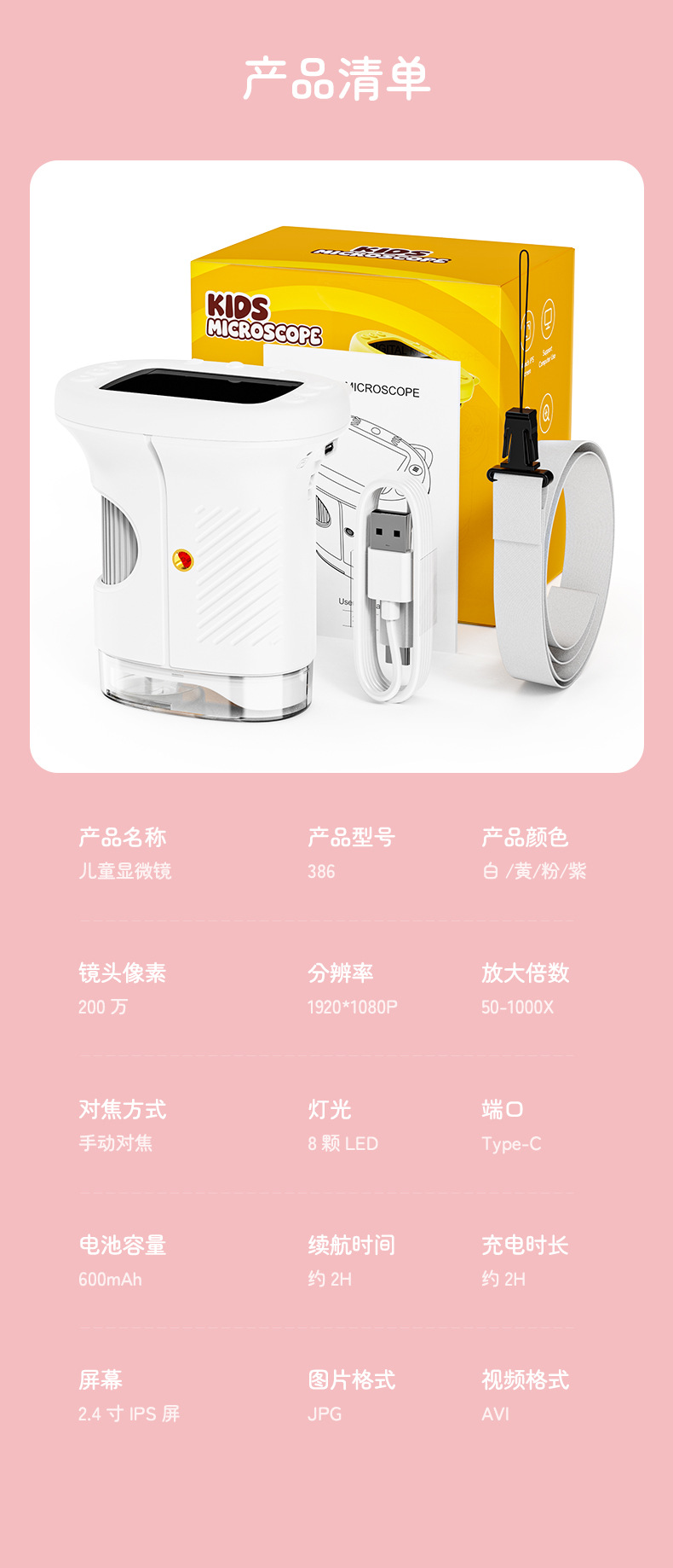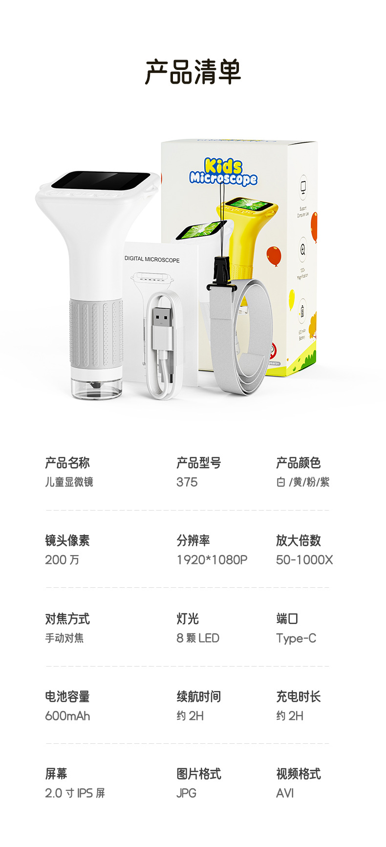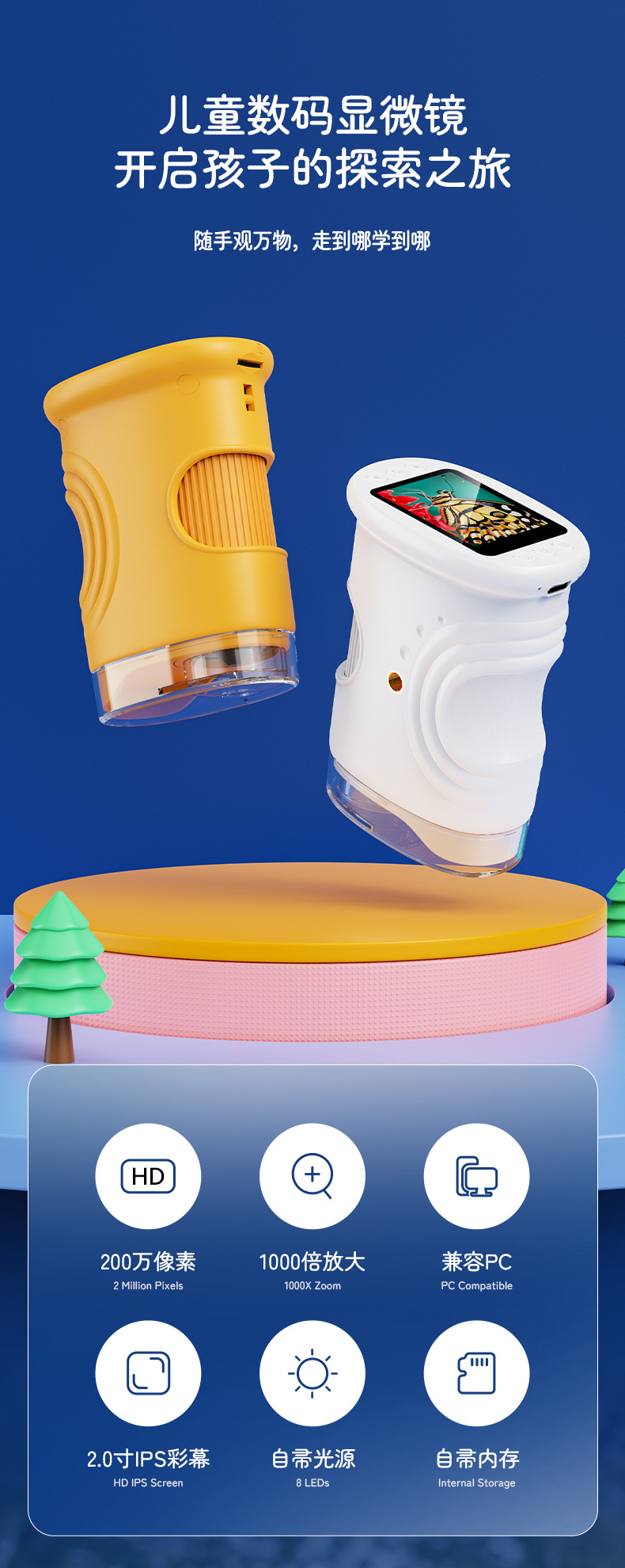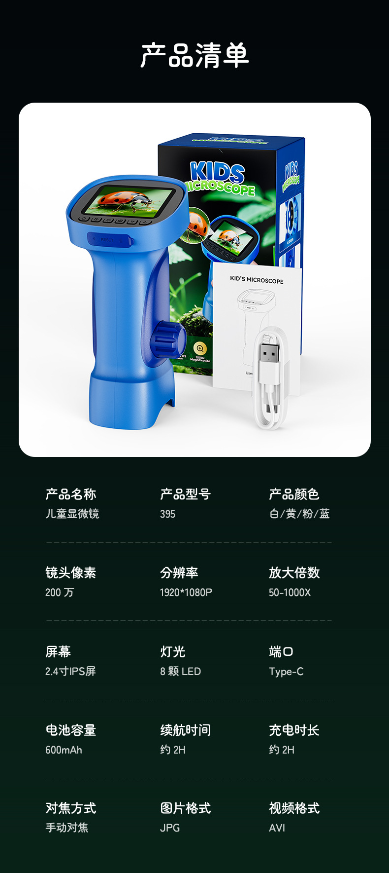 新款儿童显微镜户外探索手持便携式可看细菌科教玩具电子放大镜