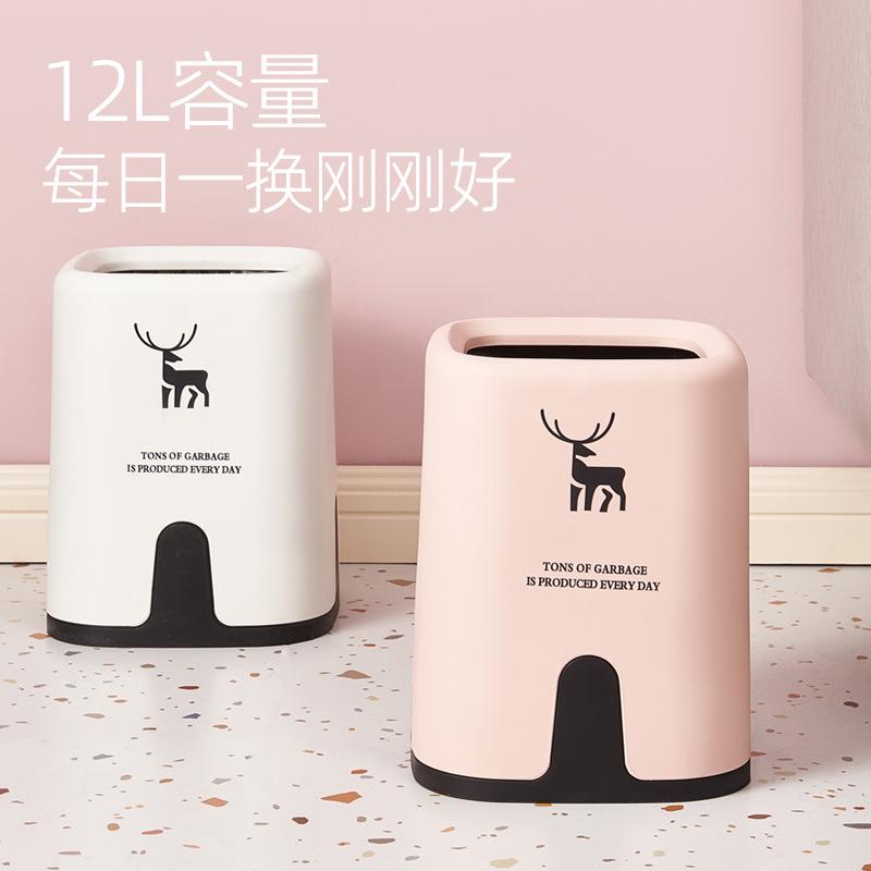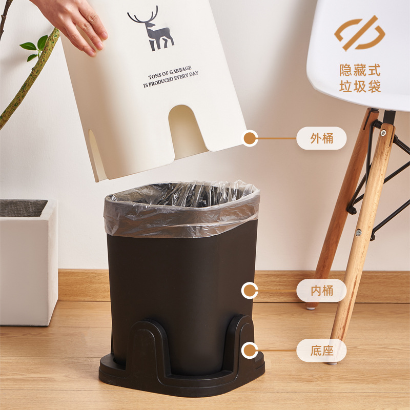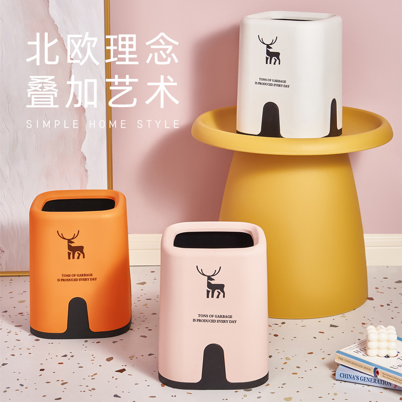 家用垃圾桶客厅轻奢北欧风纸篓创意厨房塑料收纳桶卧室高档垃圾桶