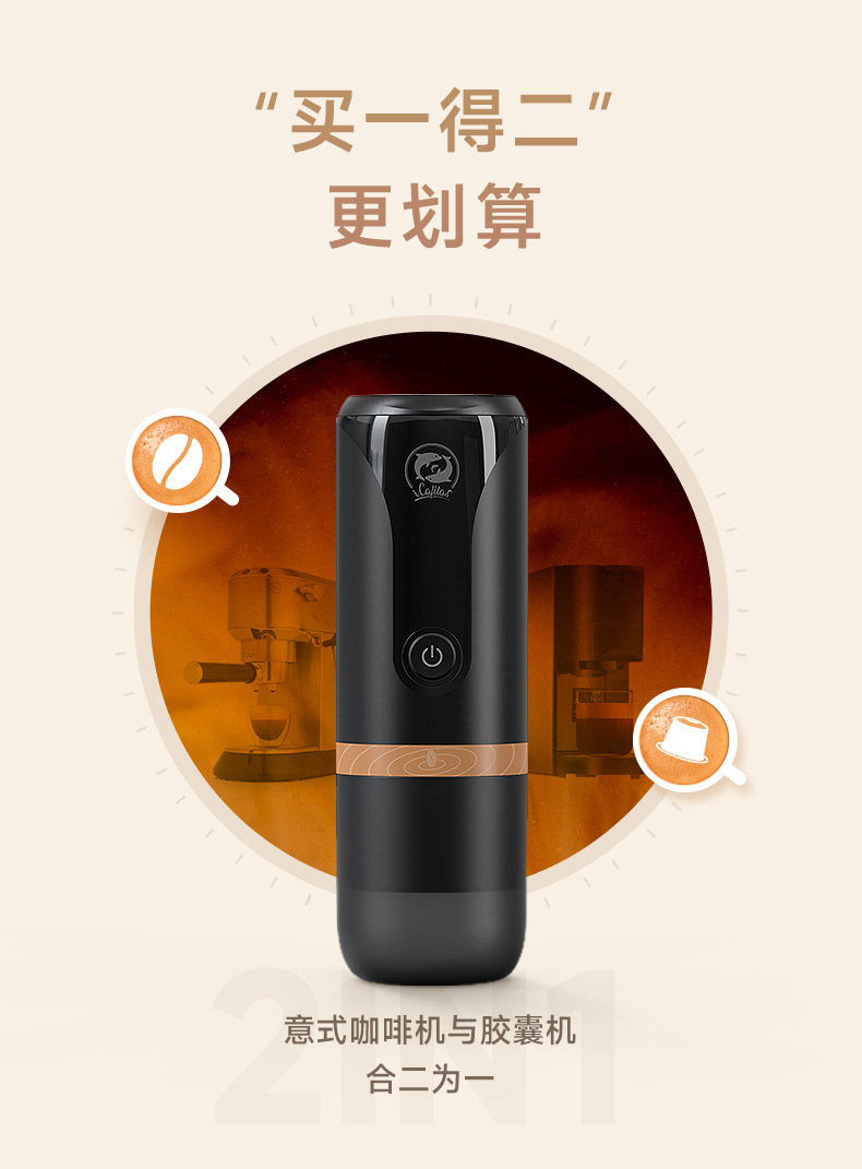 外贸批发USB充电咖啡机 户外便携车载粉托胶囊二合一咖啡杯咖啡壶