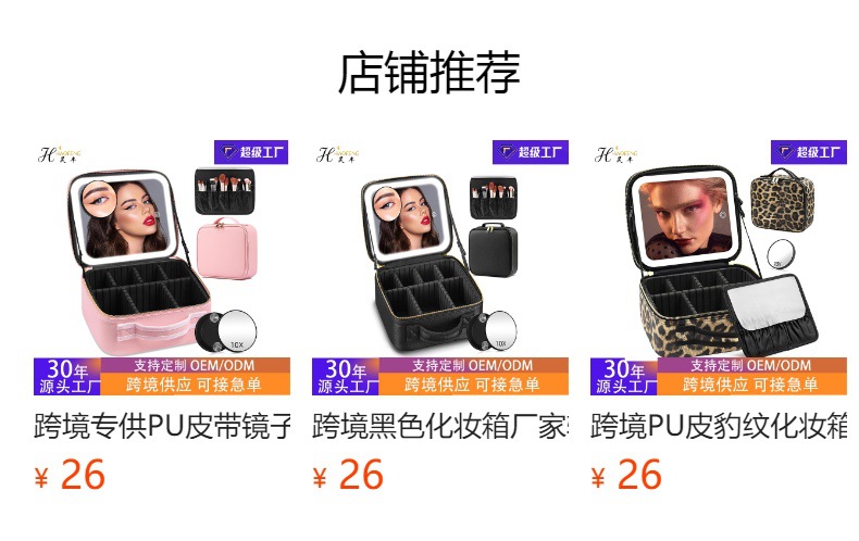 跨境带镜化妆箱简约高端化妆师化妆箱都市简约便捷化妆箱带镜带灯