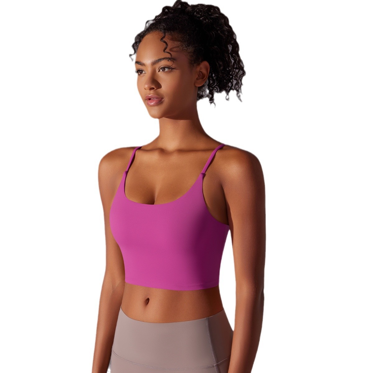 新款纯色双面锦纶半固定杯训练高强度运动文胸紧身高弹健身背心女