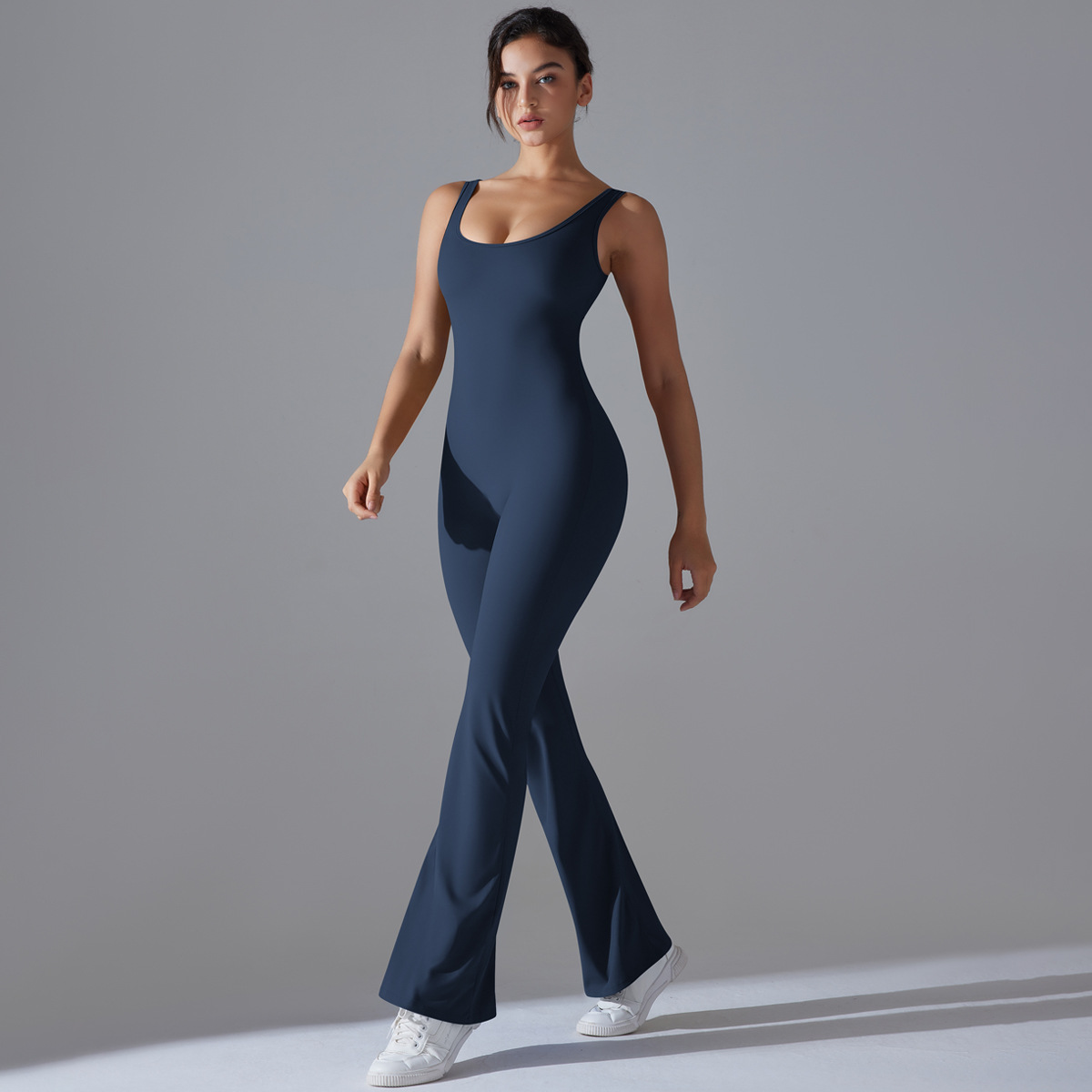 新款跨境纯色美背提臀长款修身阔腿连体衣运动跑步健身连体瑜伽服