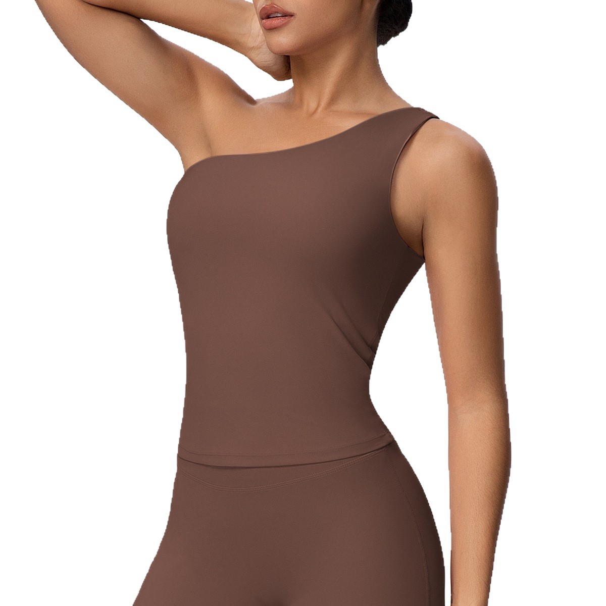 新款跨境双面磨毛裸感纯色紧身高弹运动内衣跑步健身瑜伽服上衣女