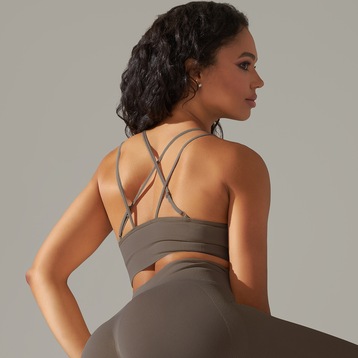 新款跨境欧美纯色美背高弹瑜伽服四件套跑步运动文胸健身瑜伽裤女