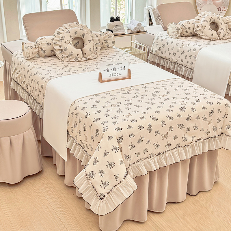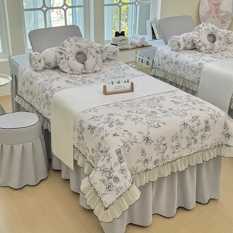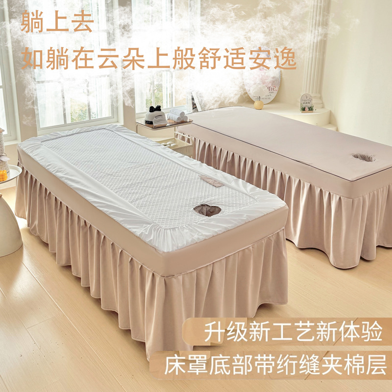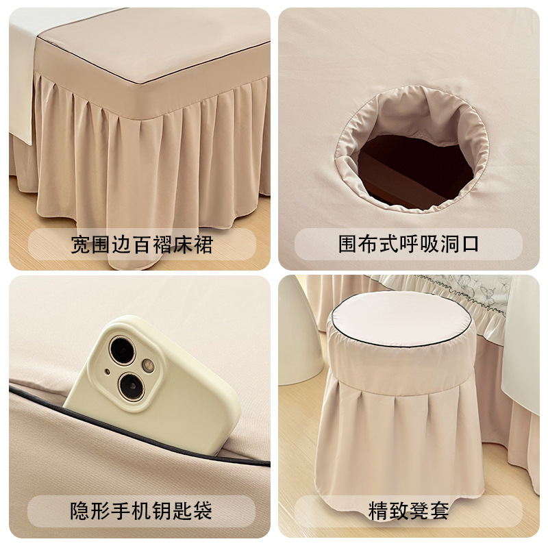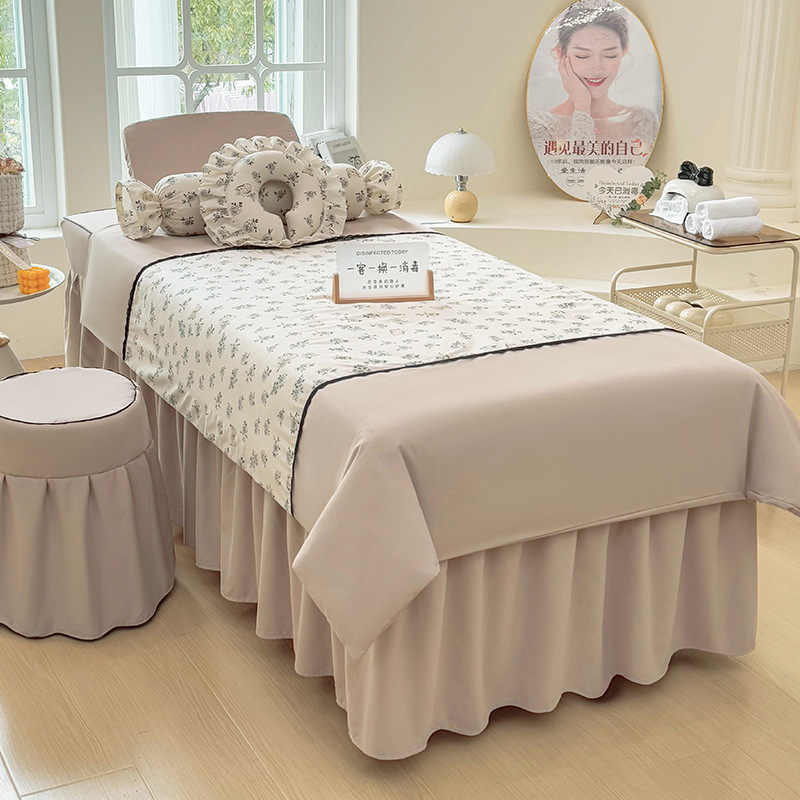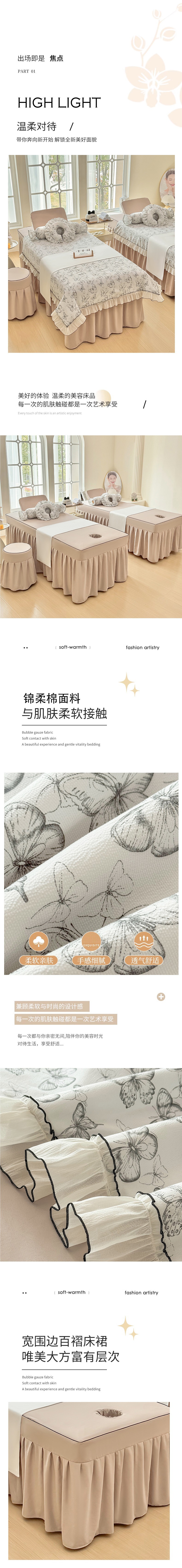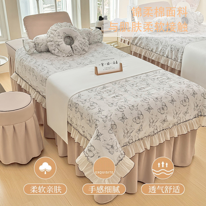 新款美容院床罩四件套床单带洞按摩轻奢理疗馆美容床品F^