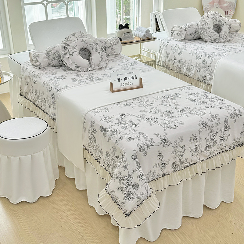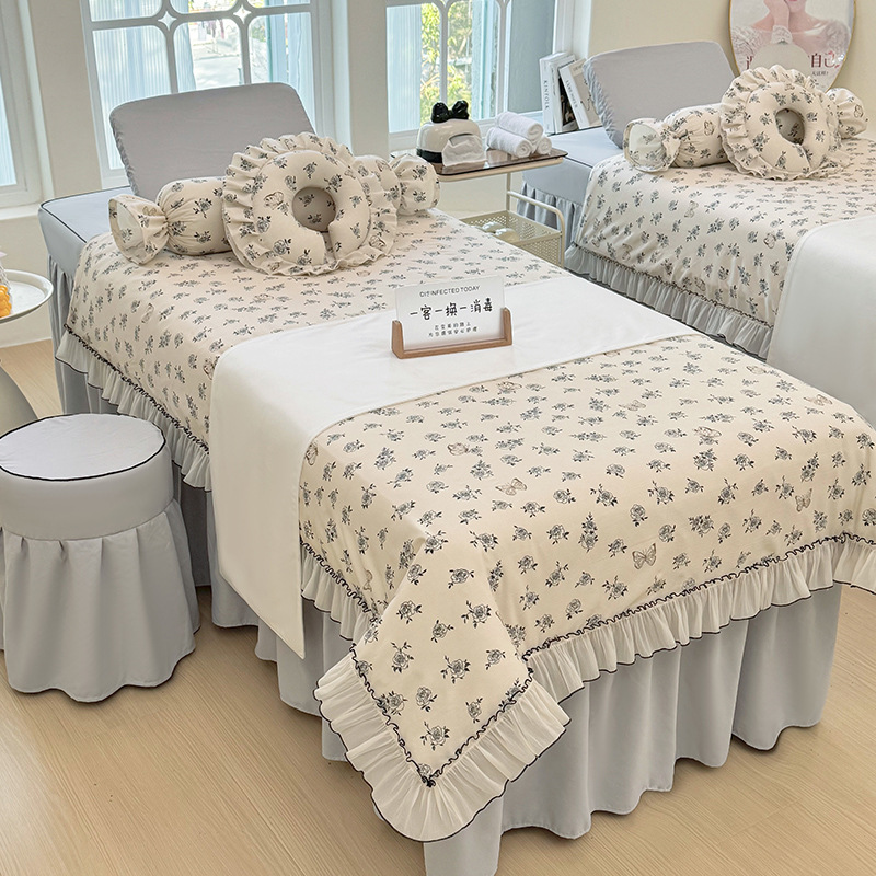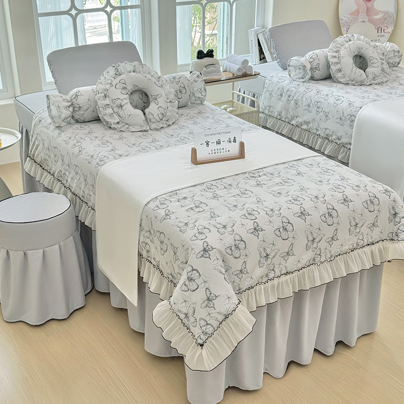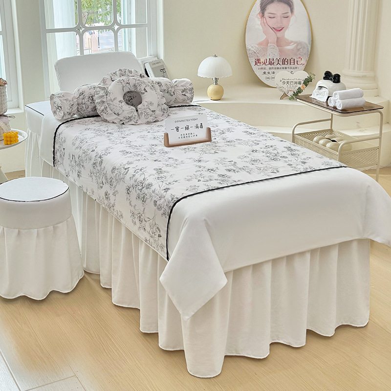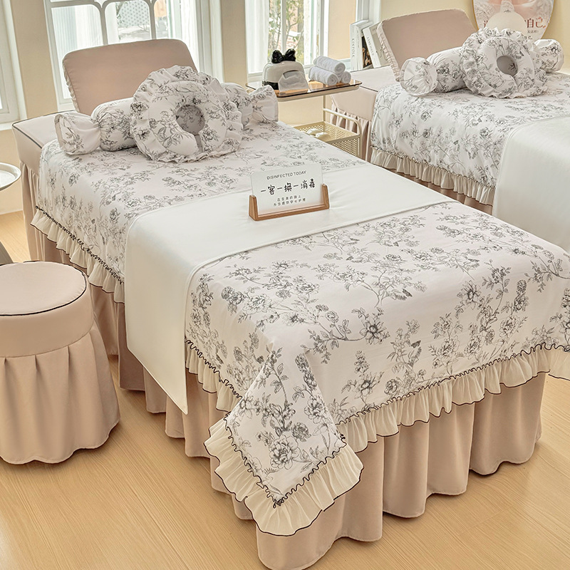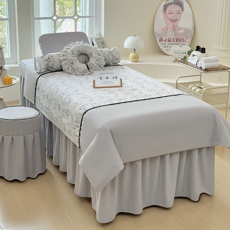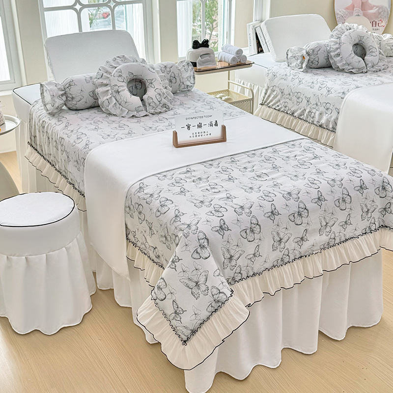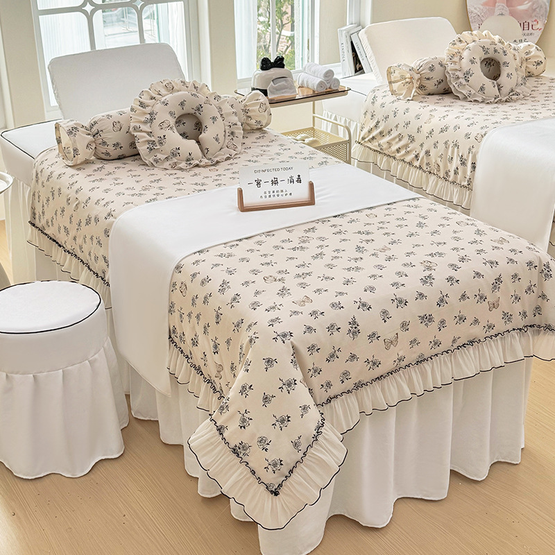 新款美容院床罩四件套床单带洞按摩轻奢理疗馆美容床品F^
