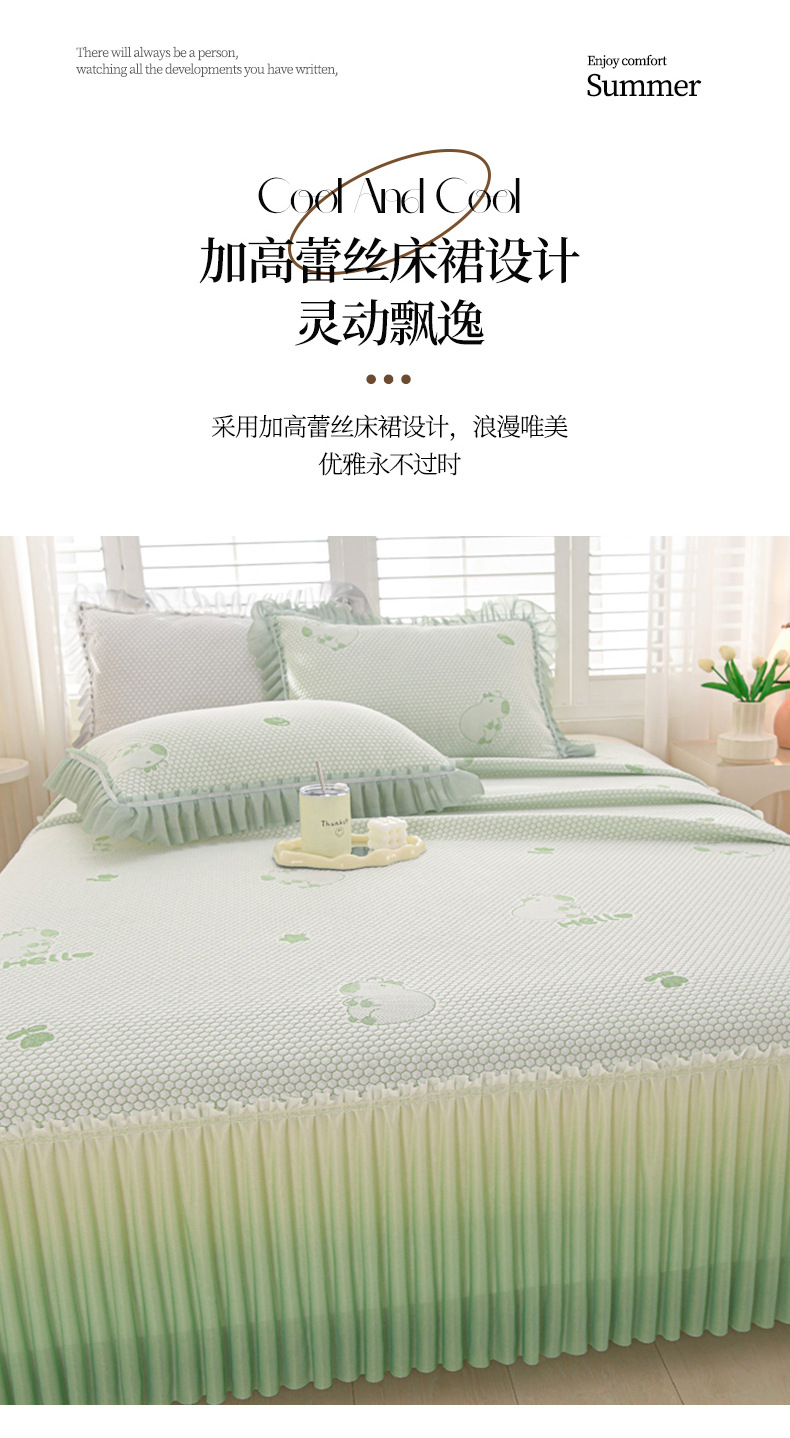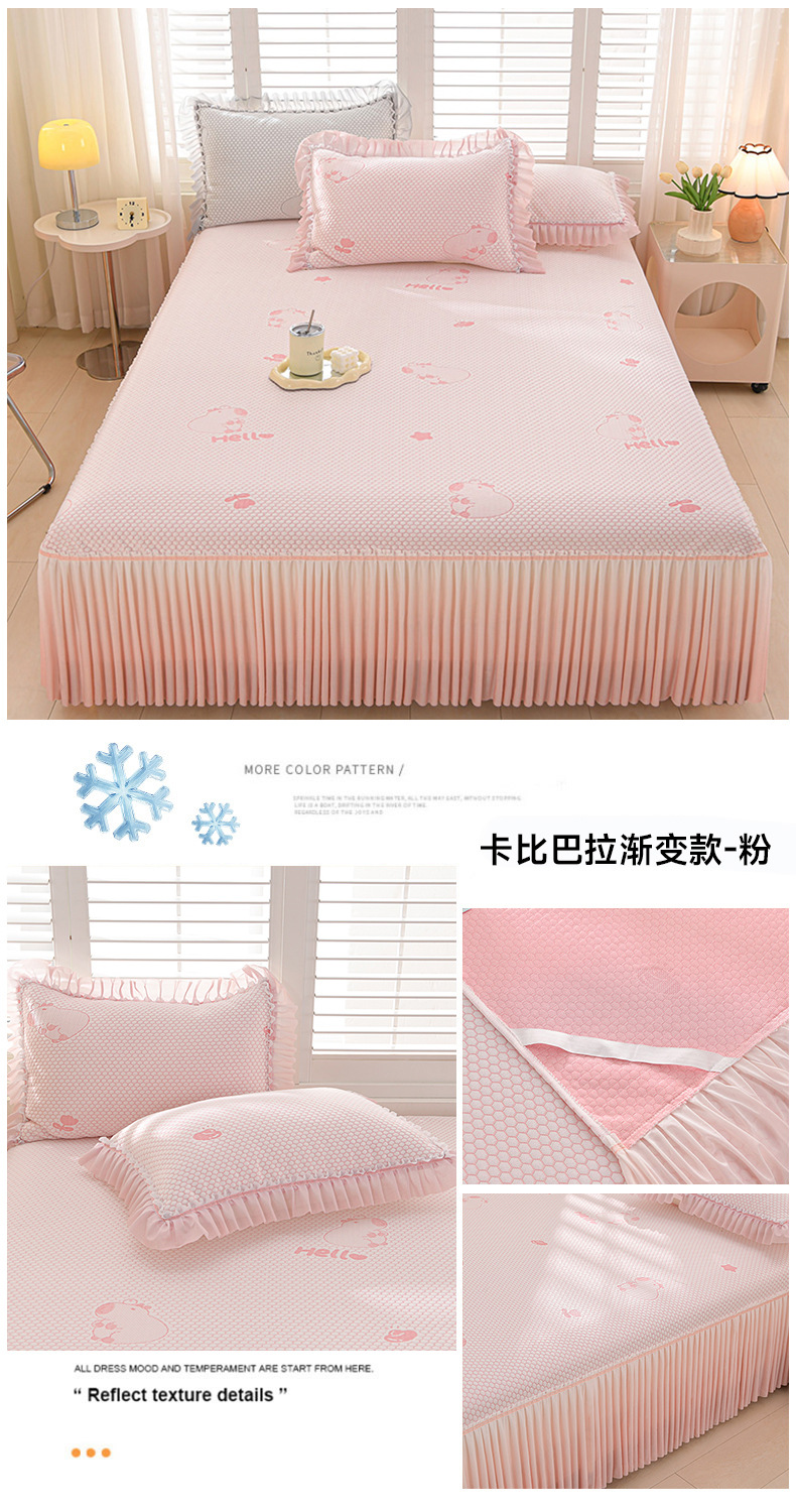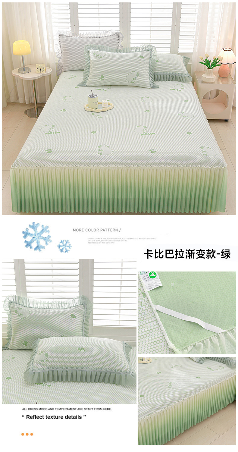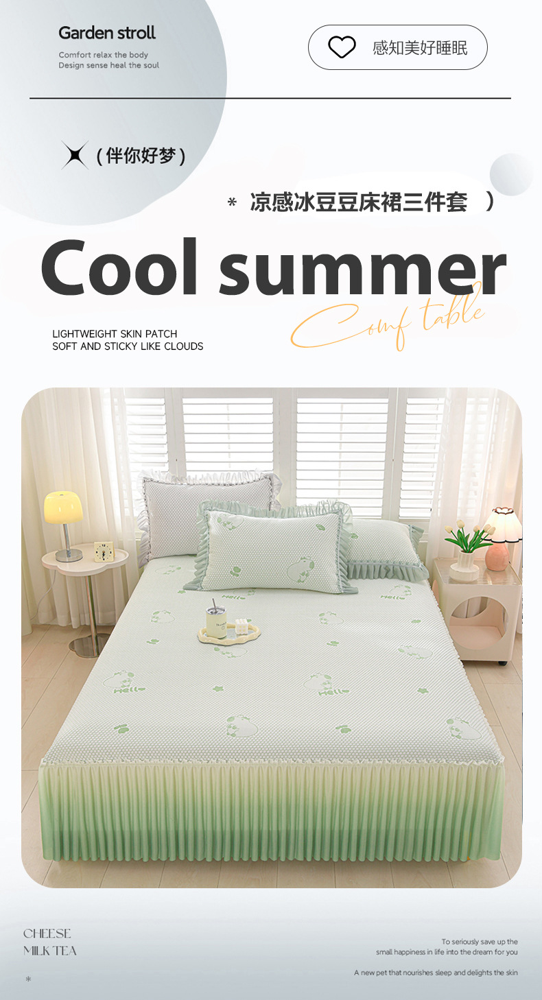 夏季新款冰感凉豆豆凉席三件套家用小清新冰爽床裙床笠保护罩批发