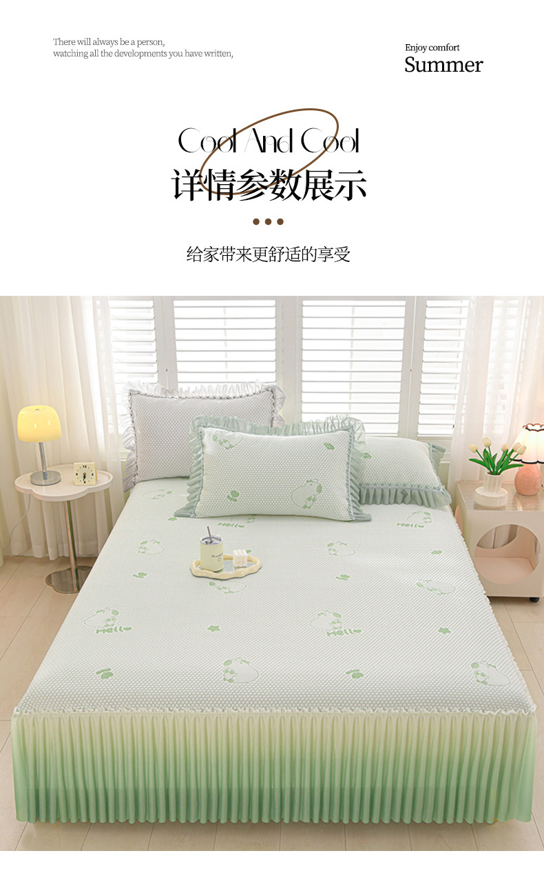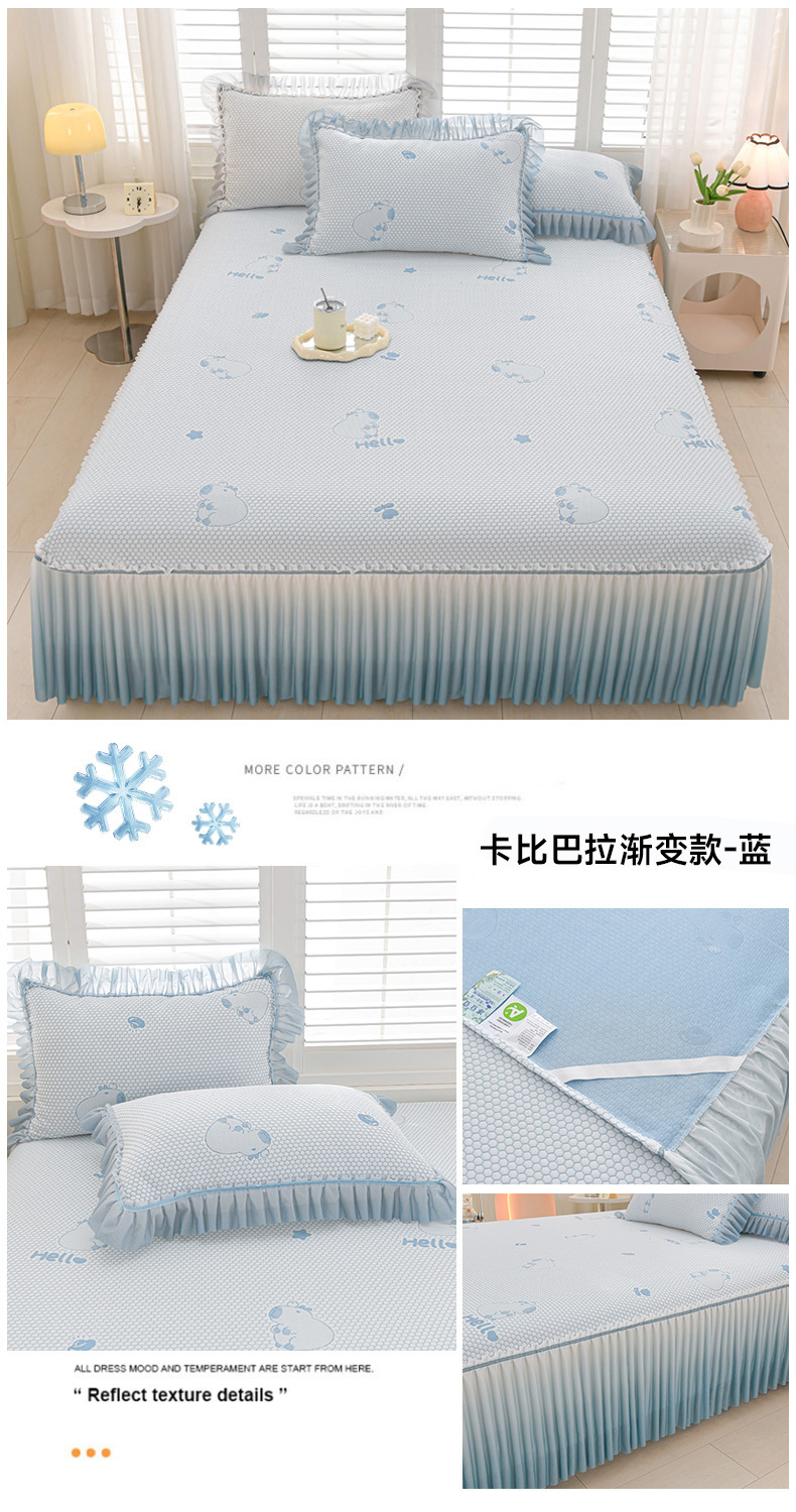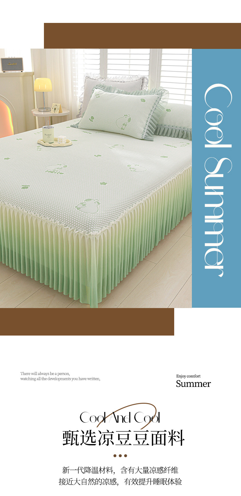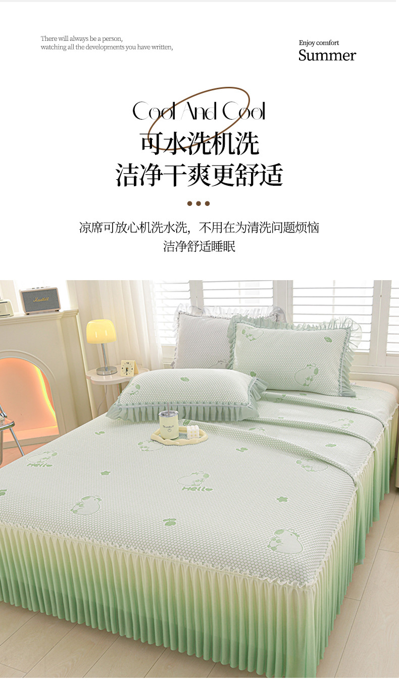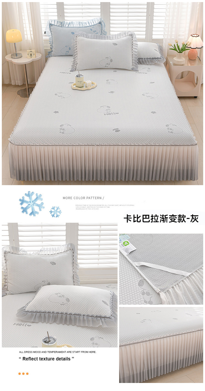 夏季新款冰感凉豆豆凉席三件套家用小清新冰爽床裙床笠保护罩批发
