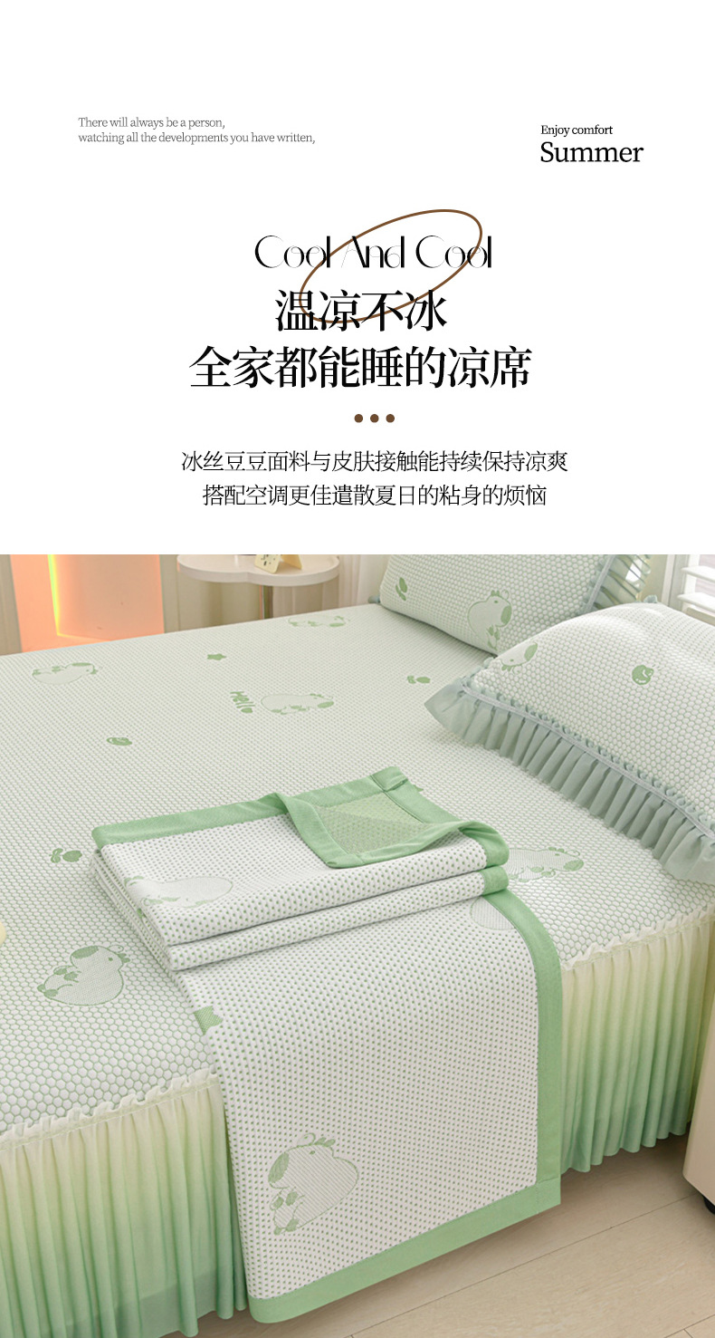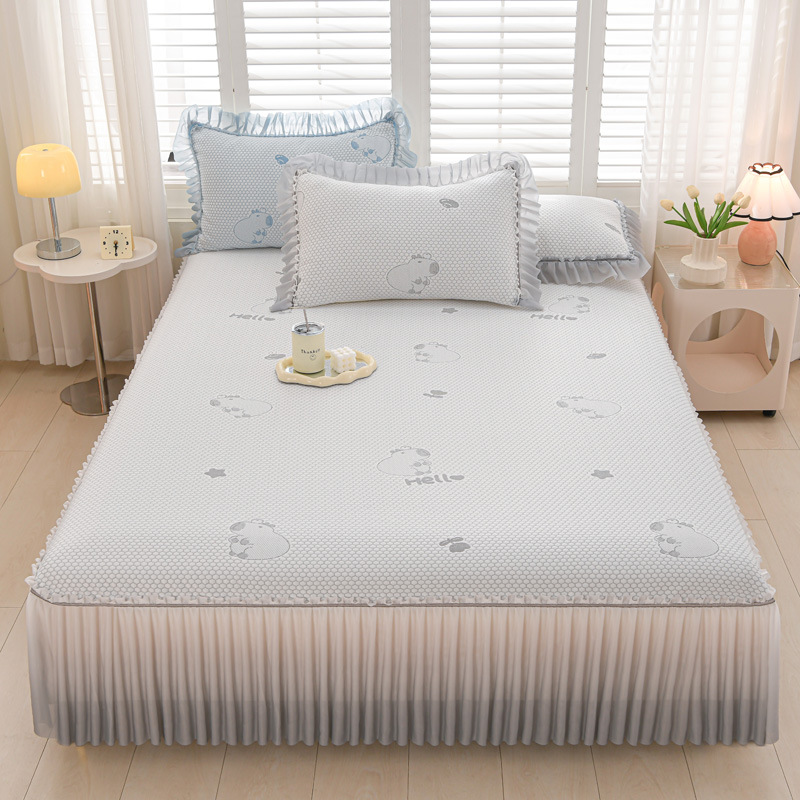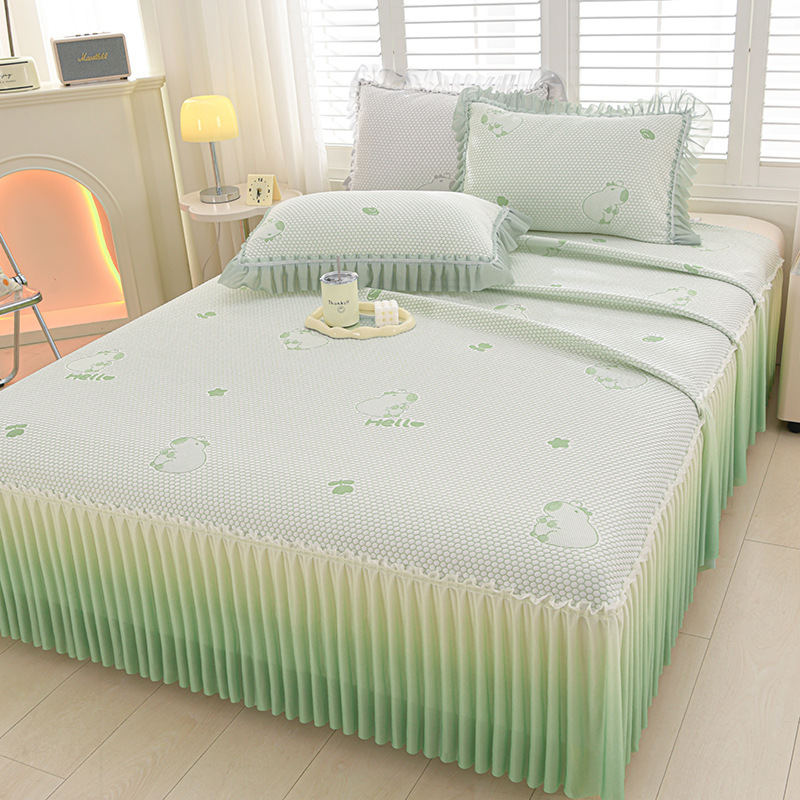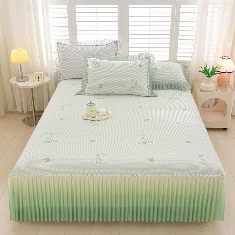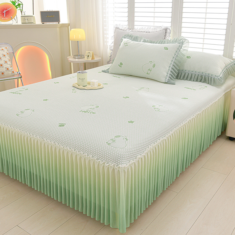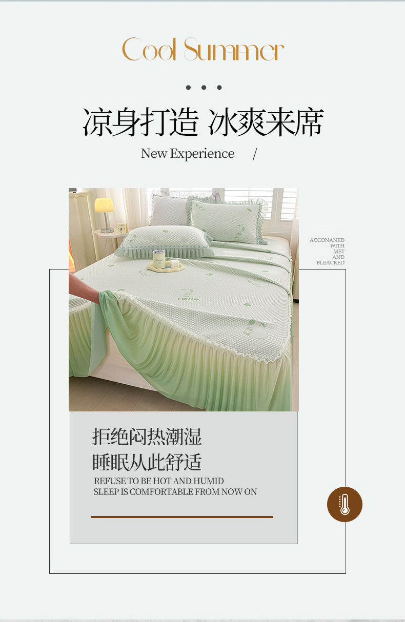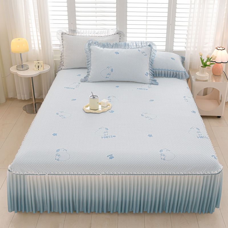 夏季新款冰感凉豆豆凉席三件套家用小清新冰爽床裙床笠保护罩批发