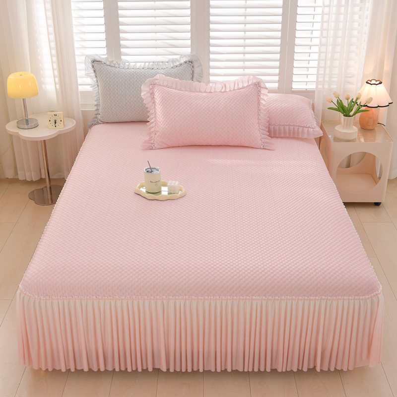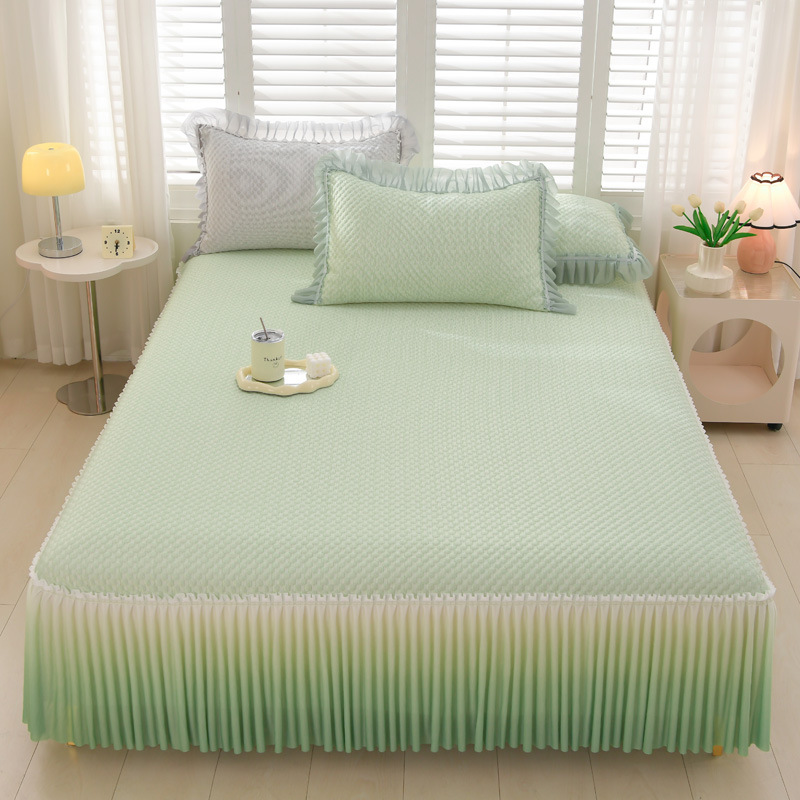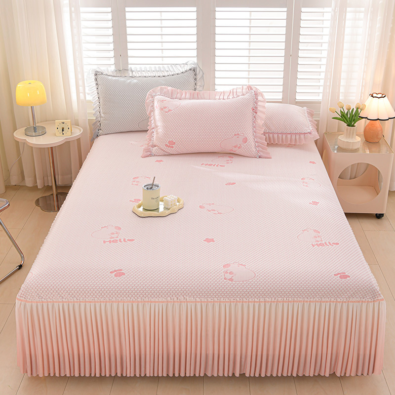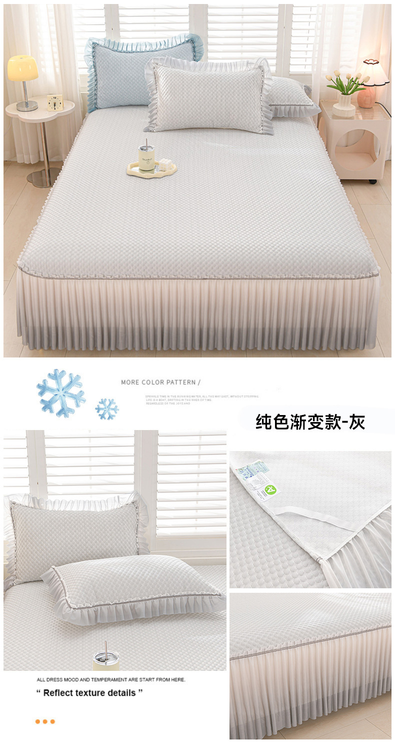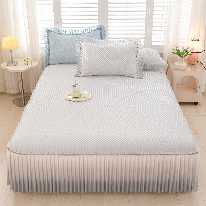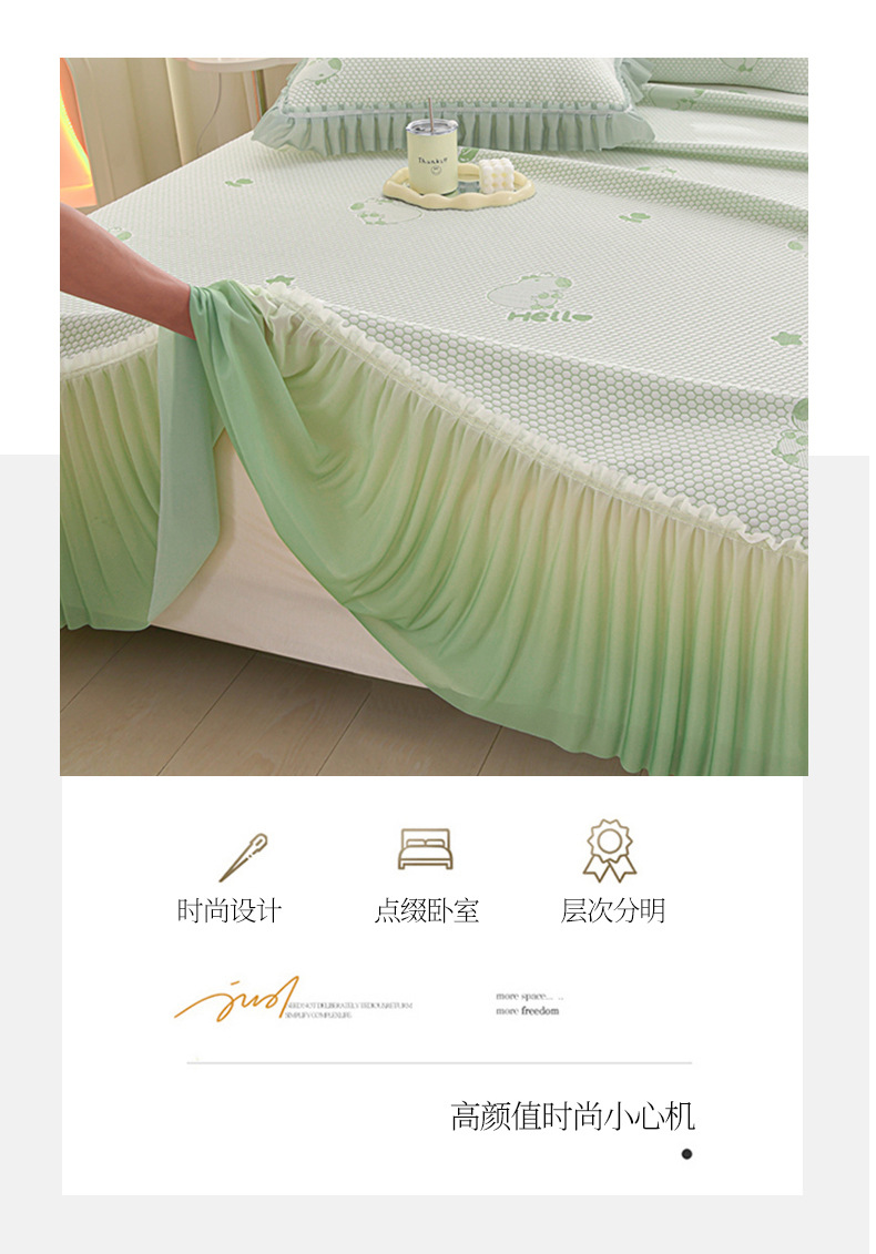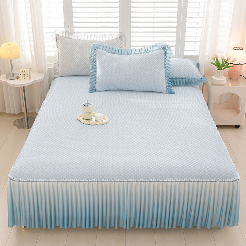 夏季新款冰感凉豆豆凉席三件套家用小清新冰爽床裙床笠保护罩批发