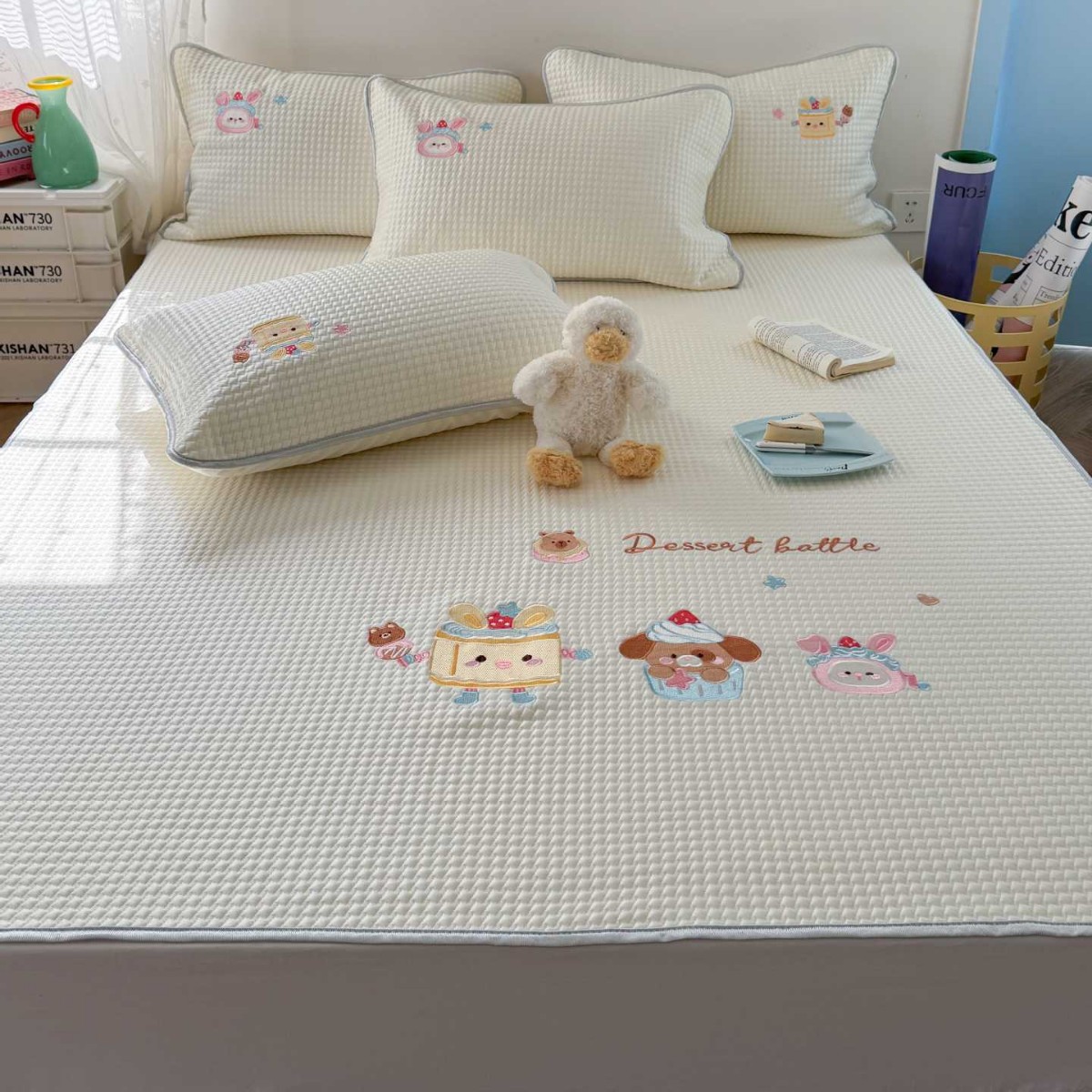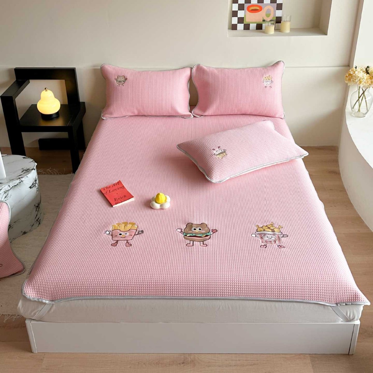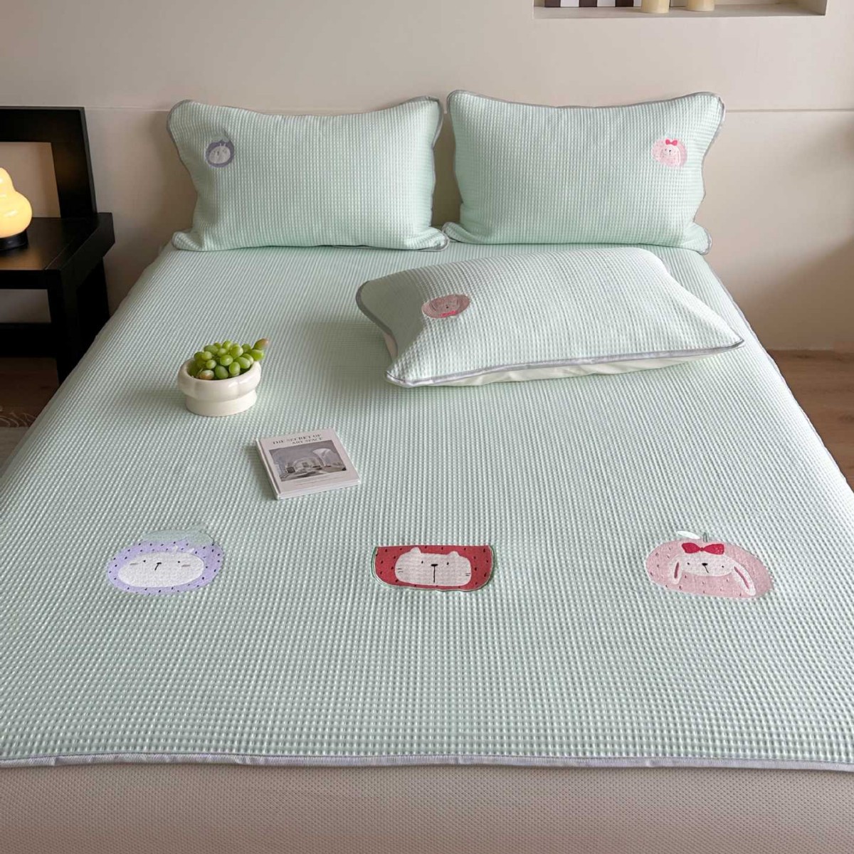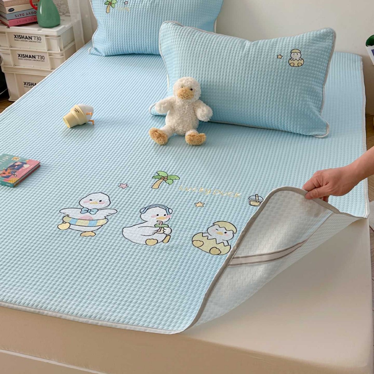 马卡龙色系PE超高分子冰豆豆凉感凉席三件套单双人席折叠机洗床笠