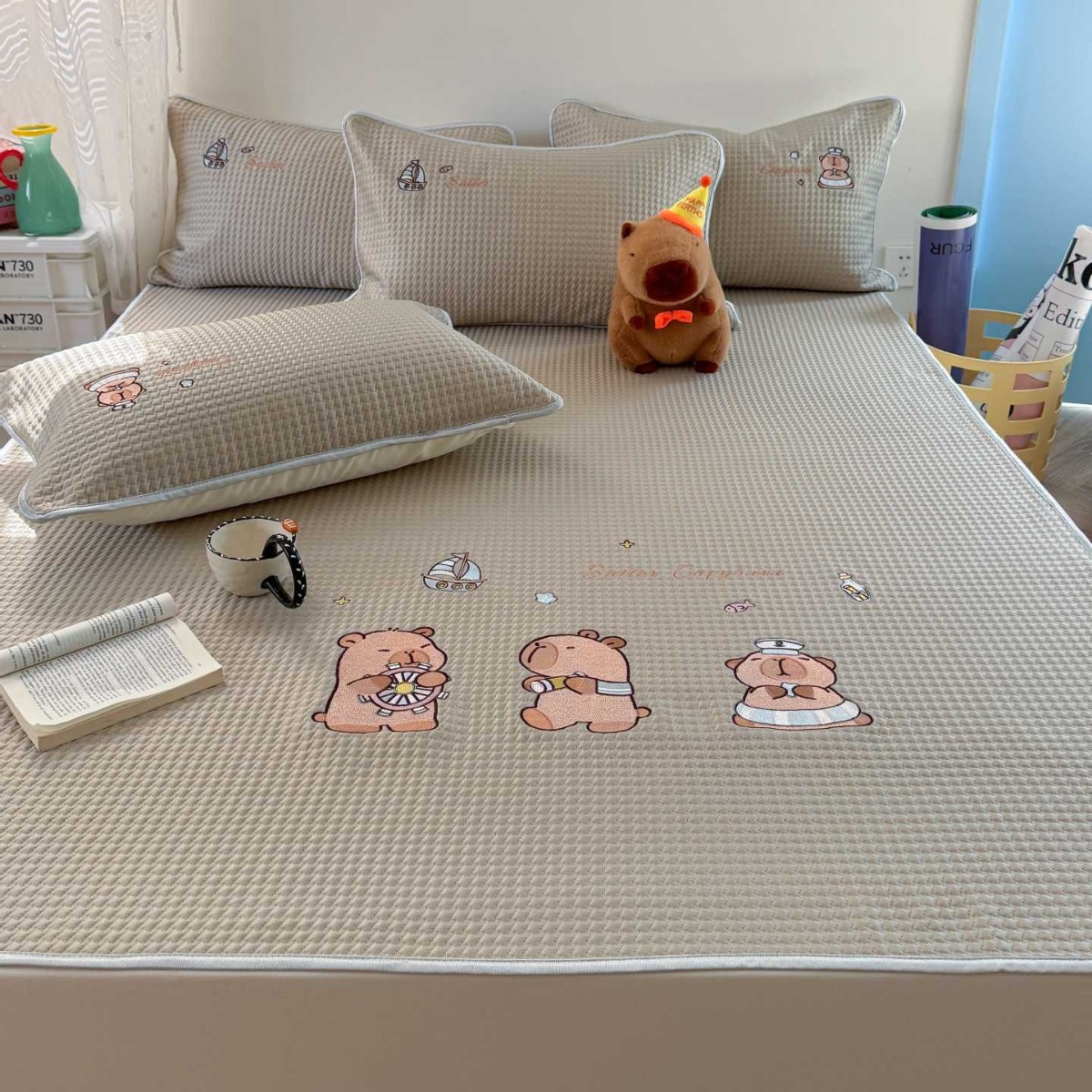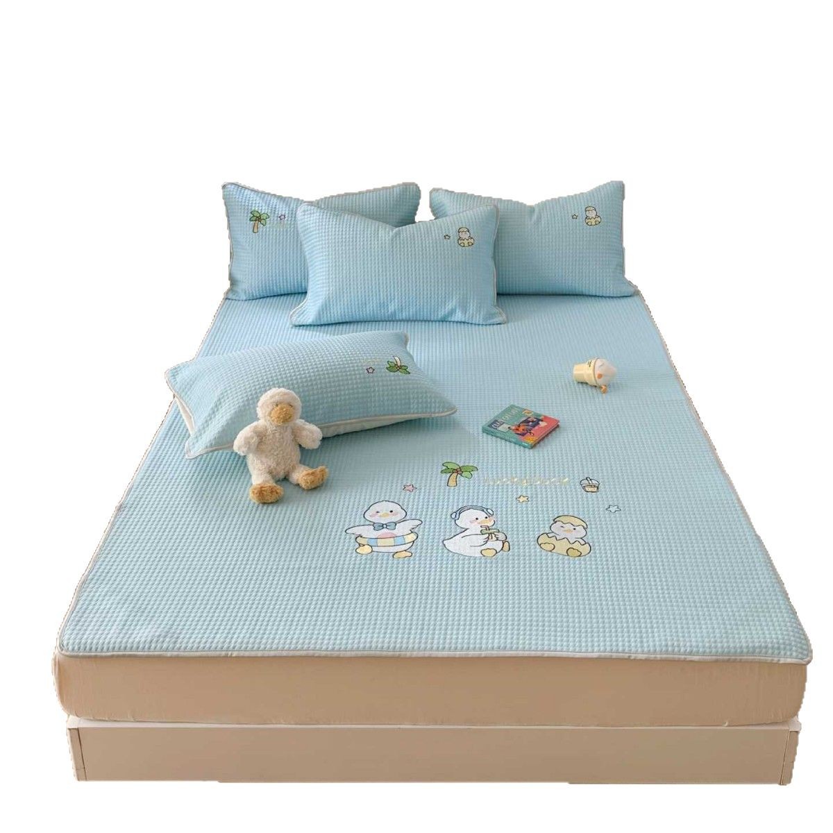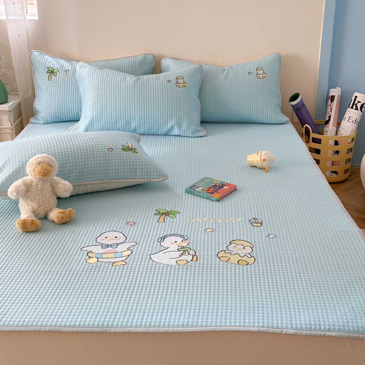马卡龙色系PE超高分子冰豆豆凉感凉席三件套单双人席折叠机洗床笠
