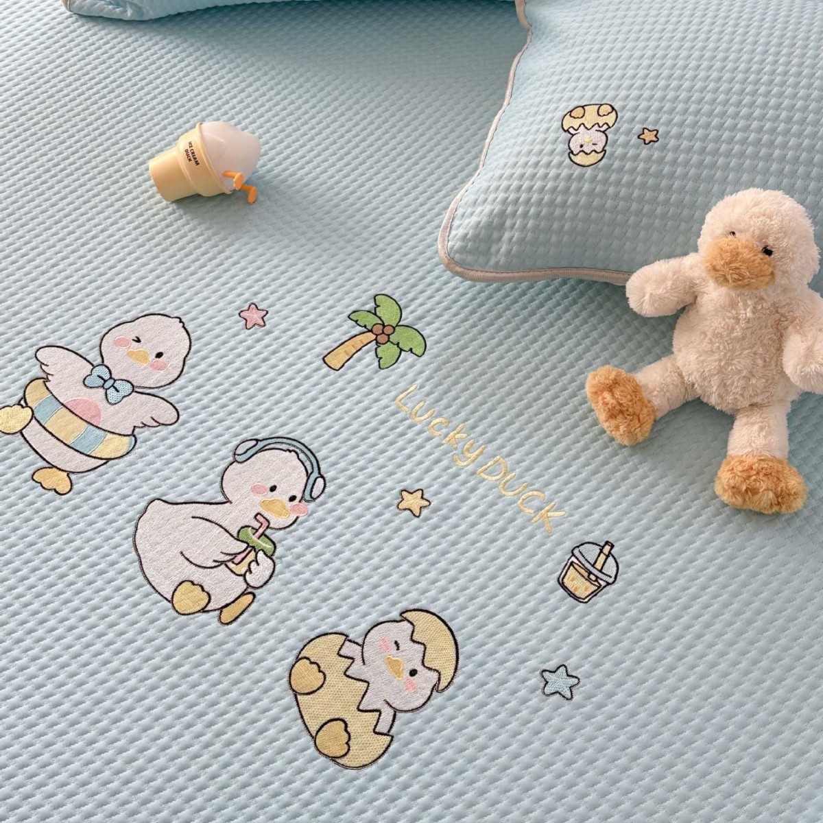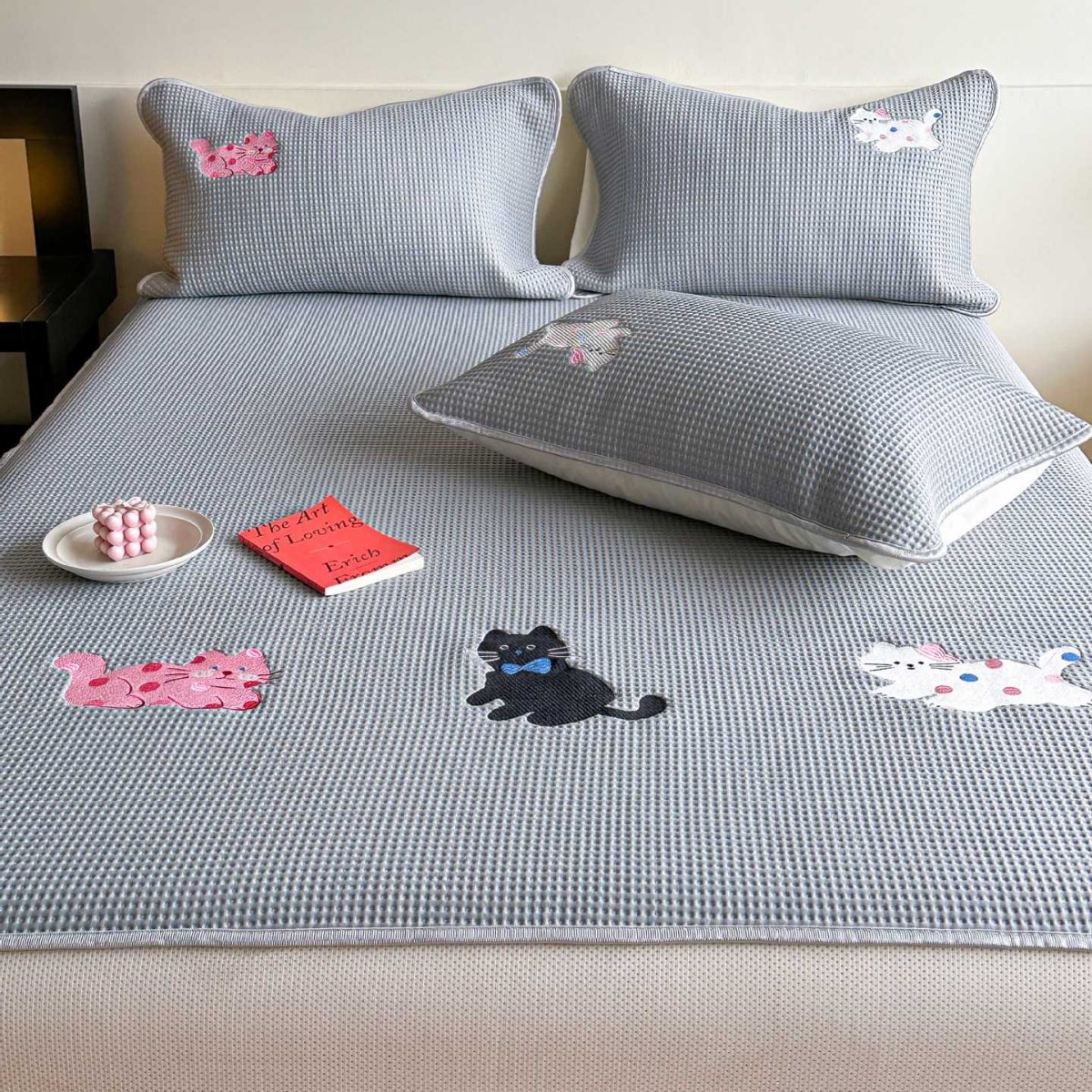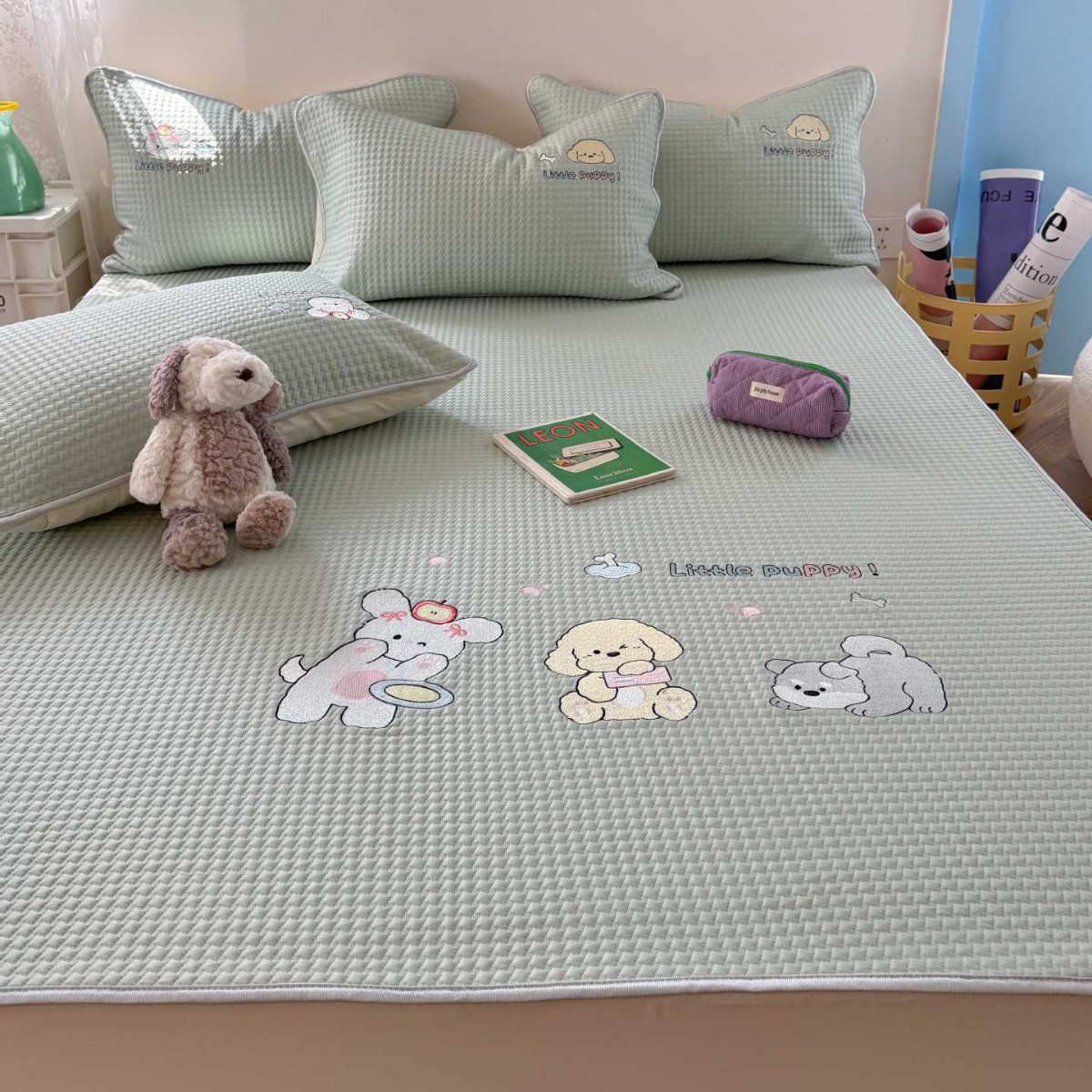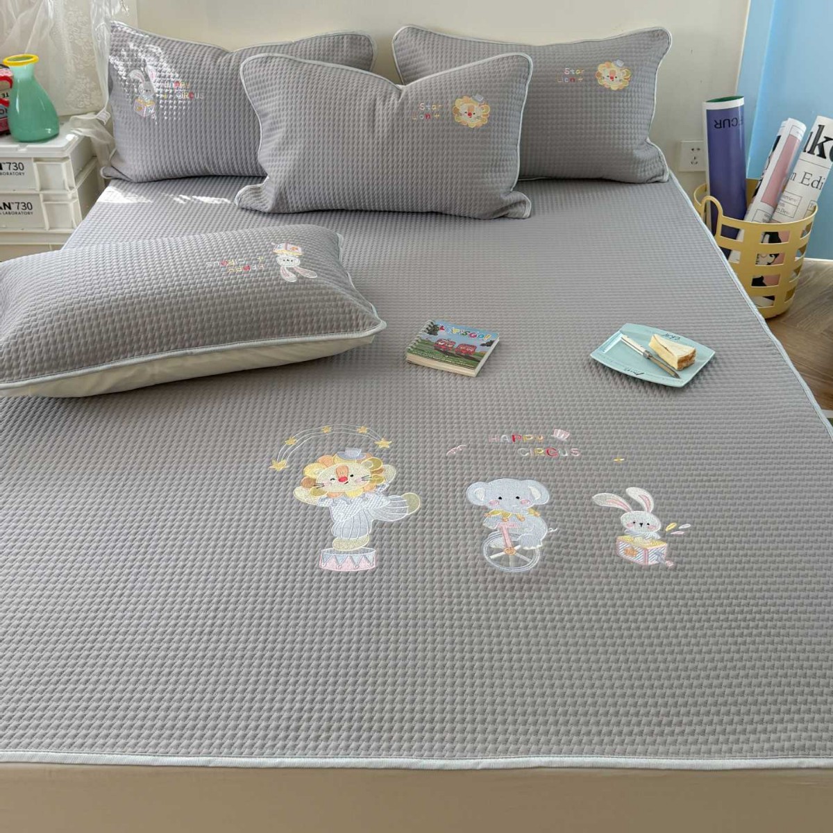 马卡龙色系PE超高分子冰豆豆凉感凉席三件套单双人席折叠机洗床笠