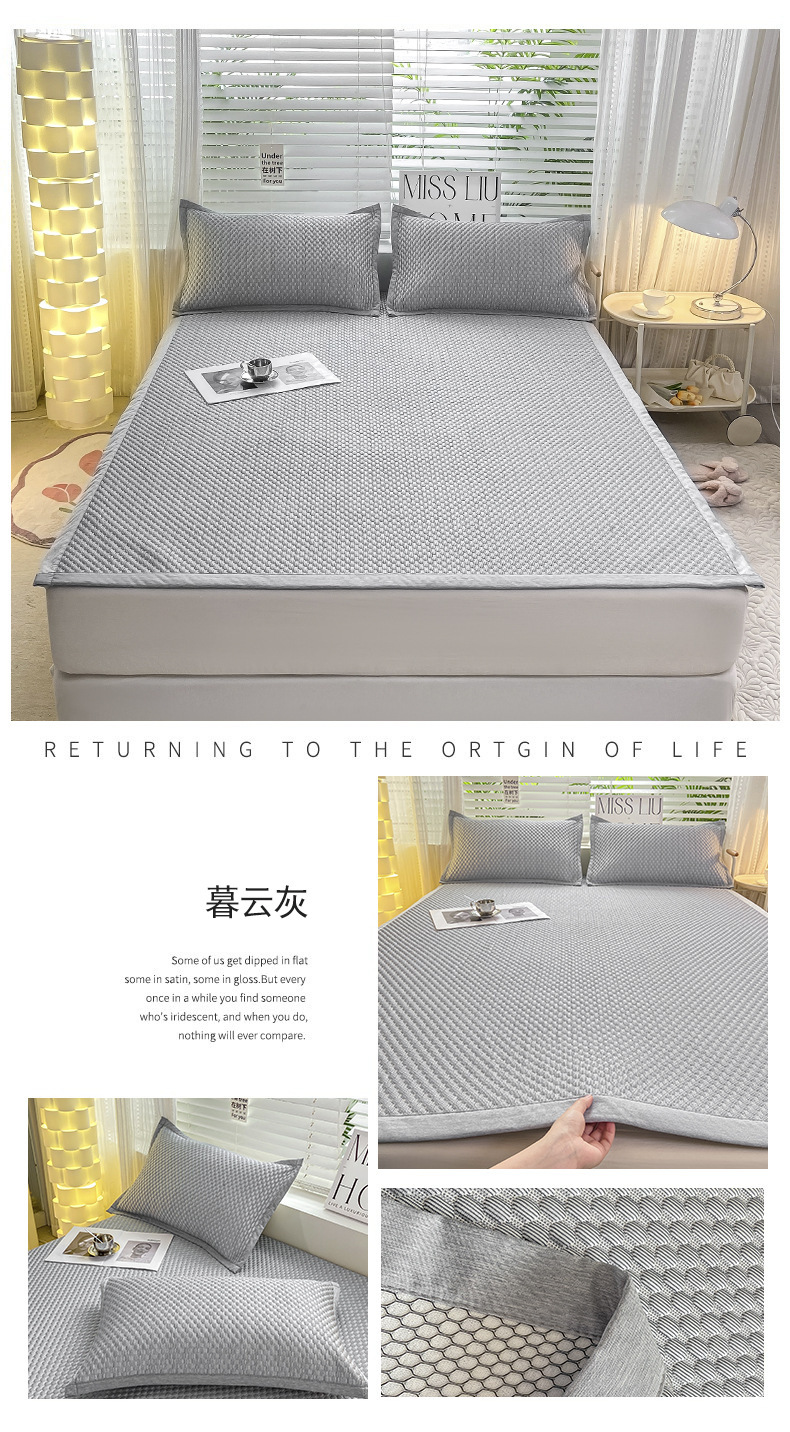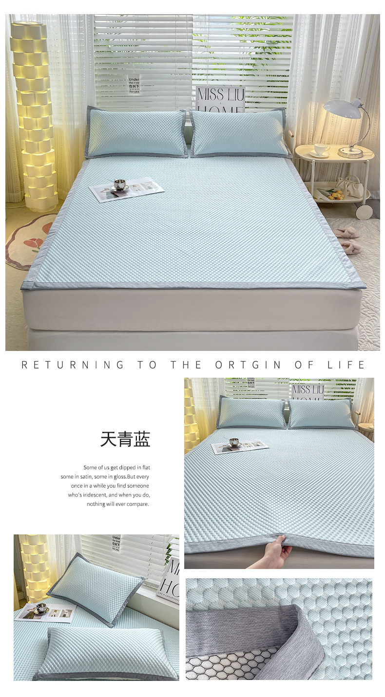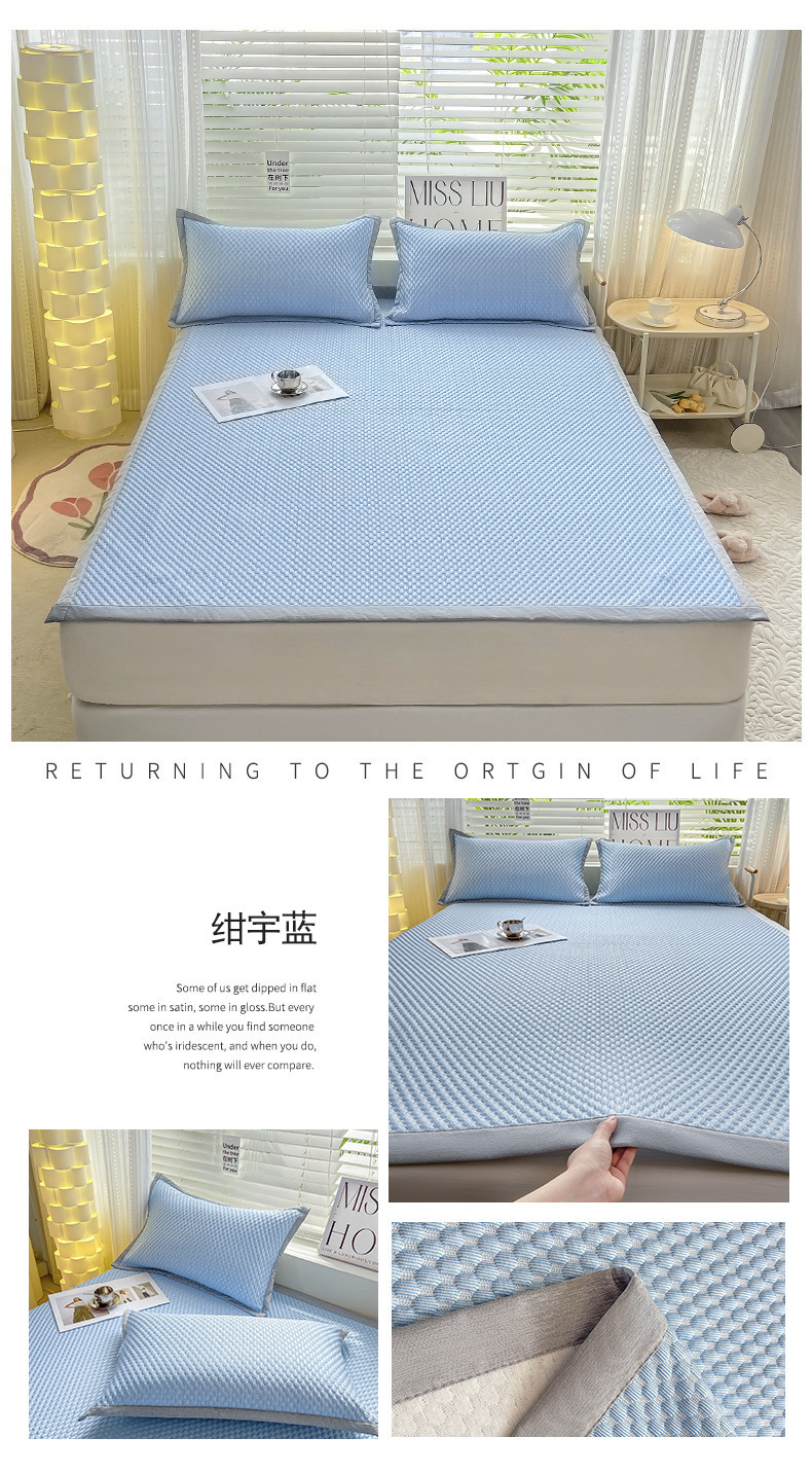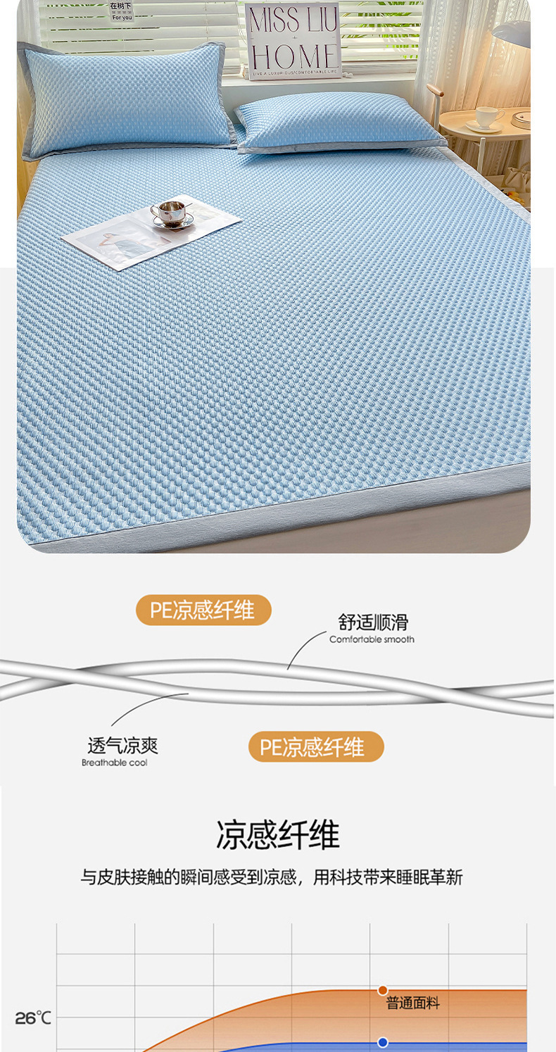 A类母婴级冰丝纯色冰豆豆凉感丝凉席三件套可折叠床笠床裙款凉席