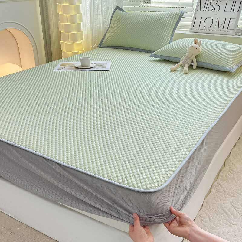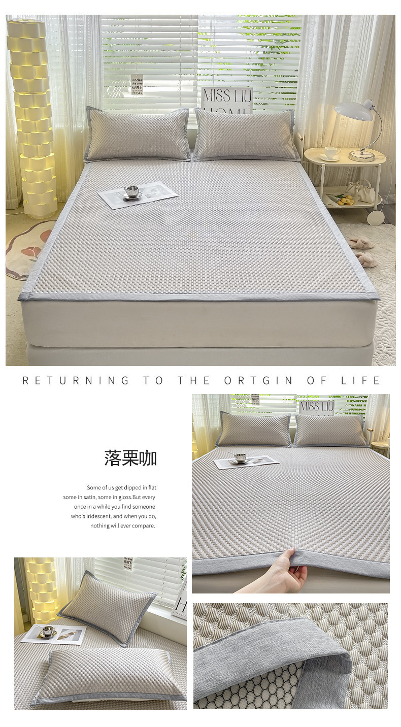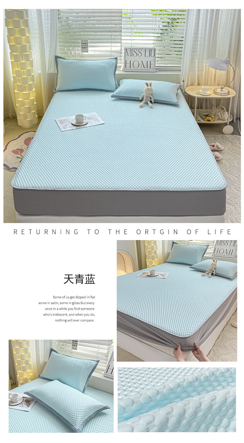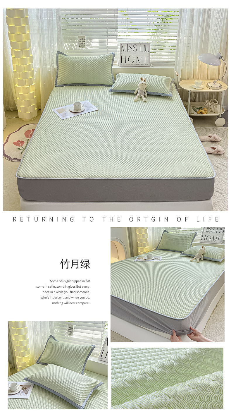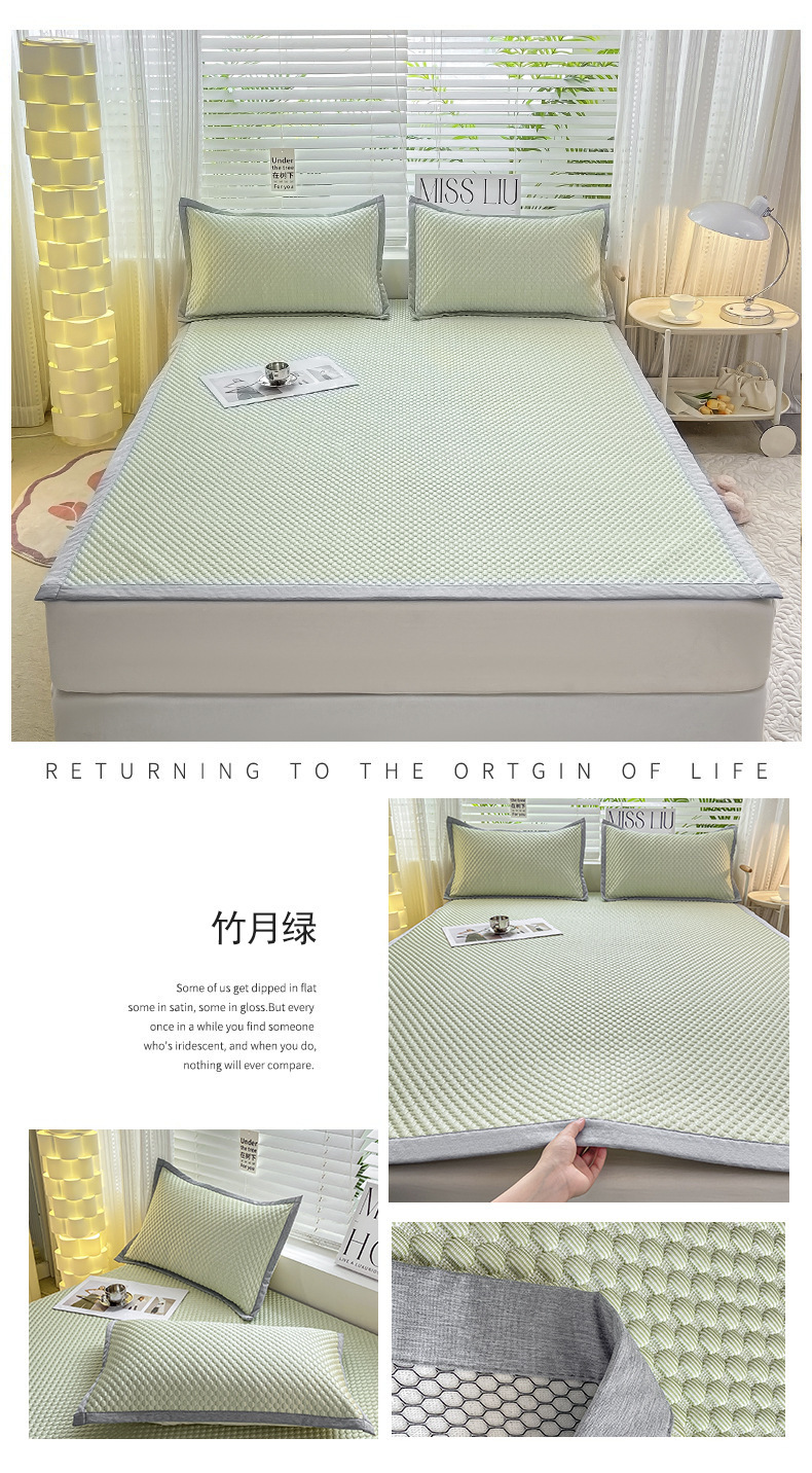 A类母婴级冰丝纯色冰豆豆凉感丝凉席三件套可折叠床笠床裙款凉席