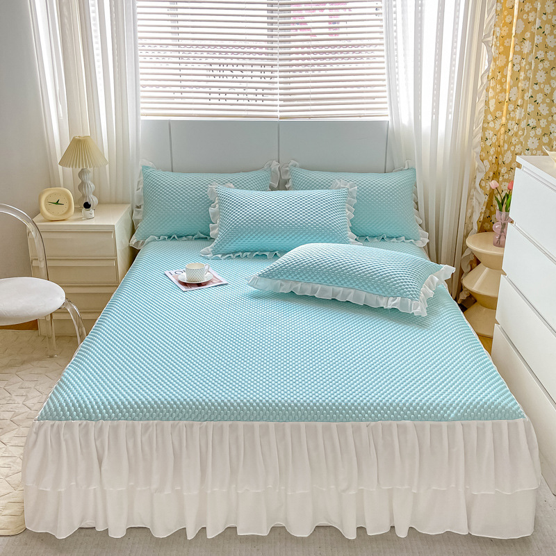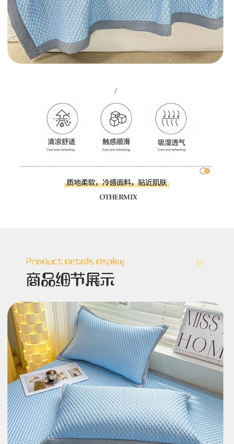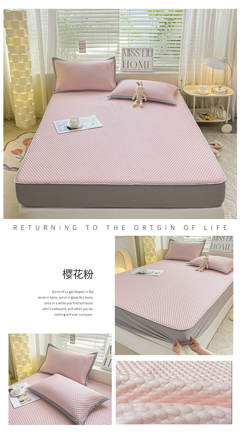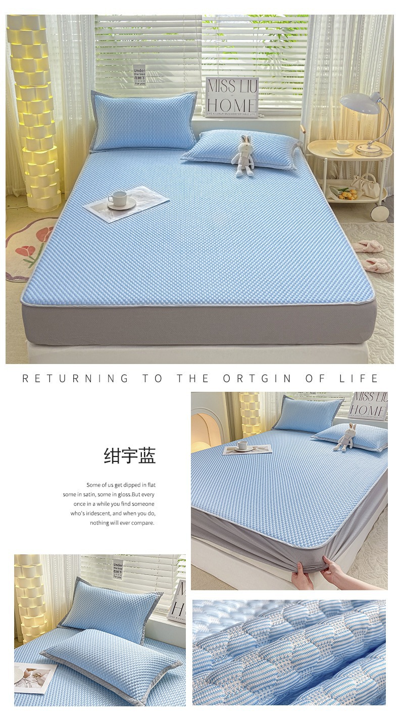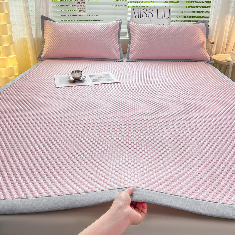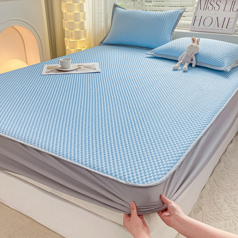 A类母婴级冰丝纯色冰豆豆凉感丝凉席三件套可折叠床笠床裙款凉席