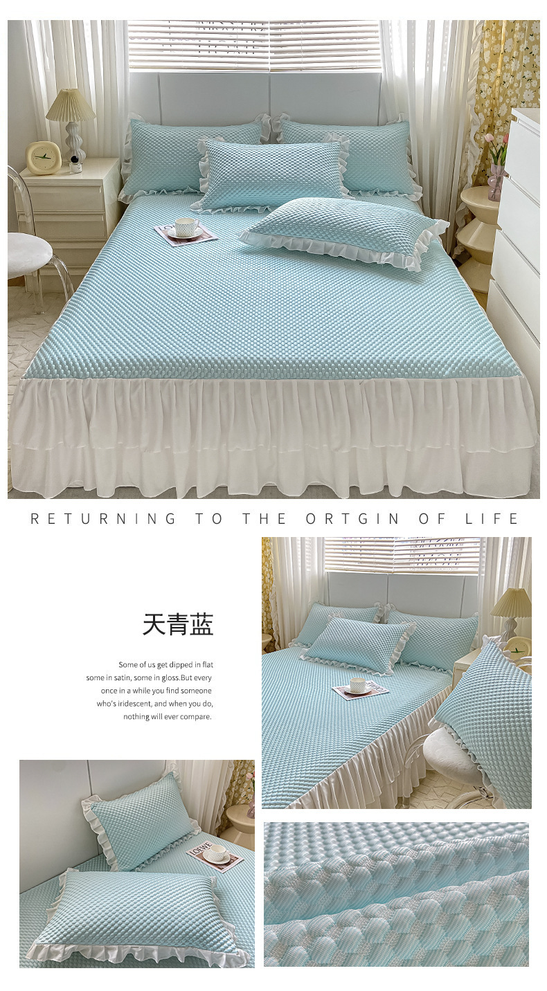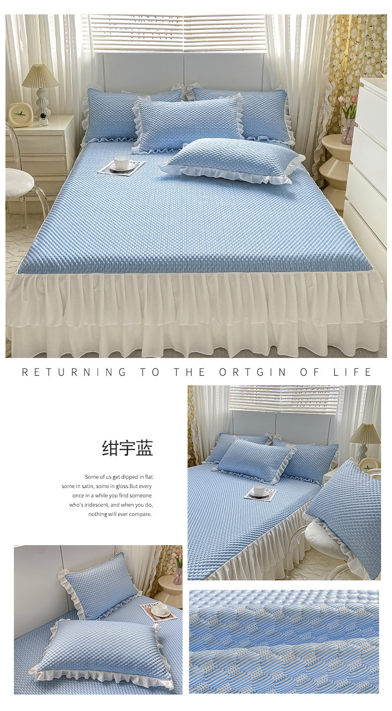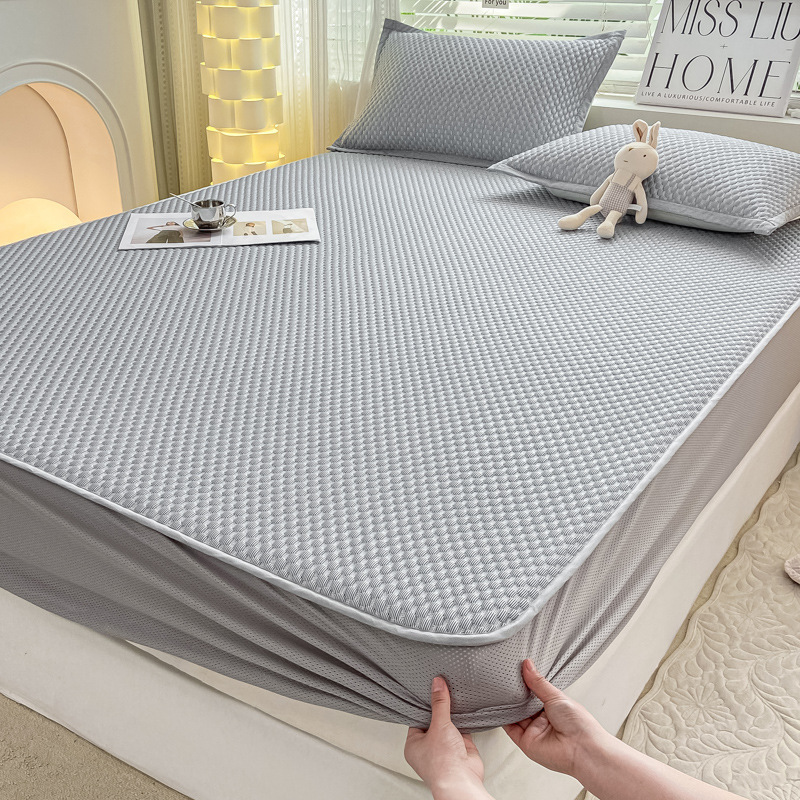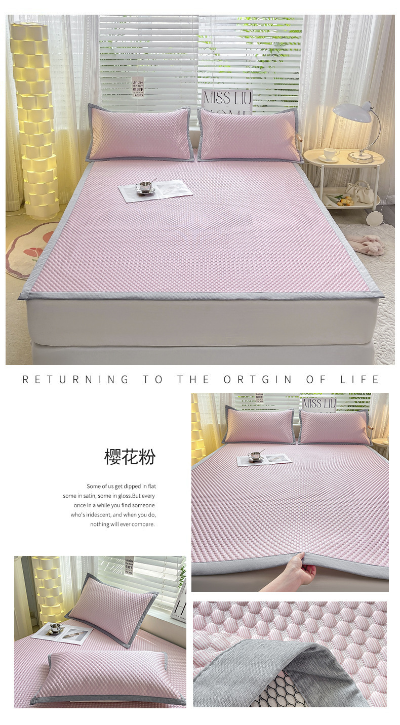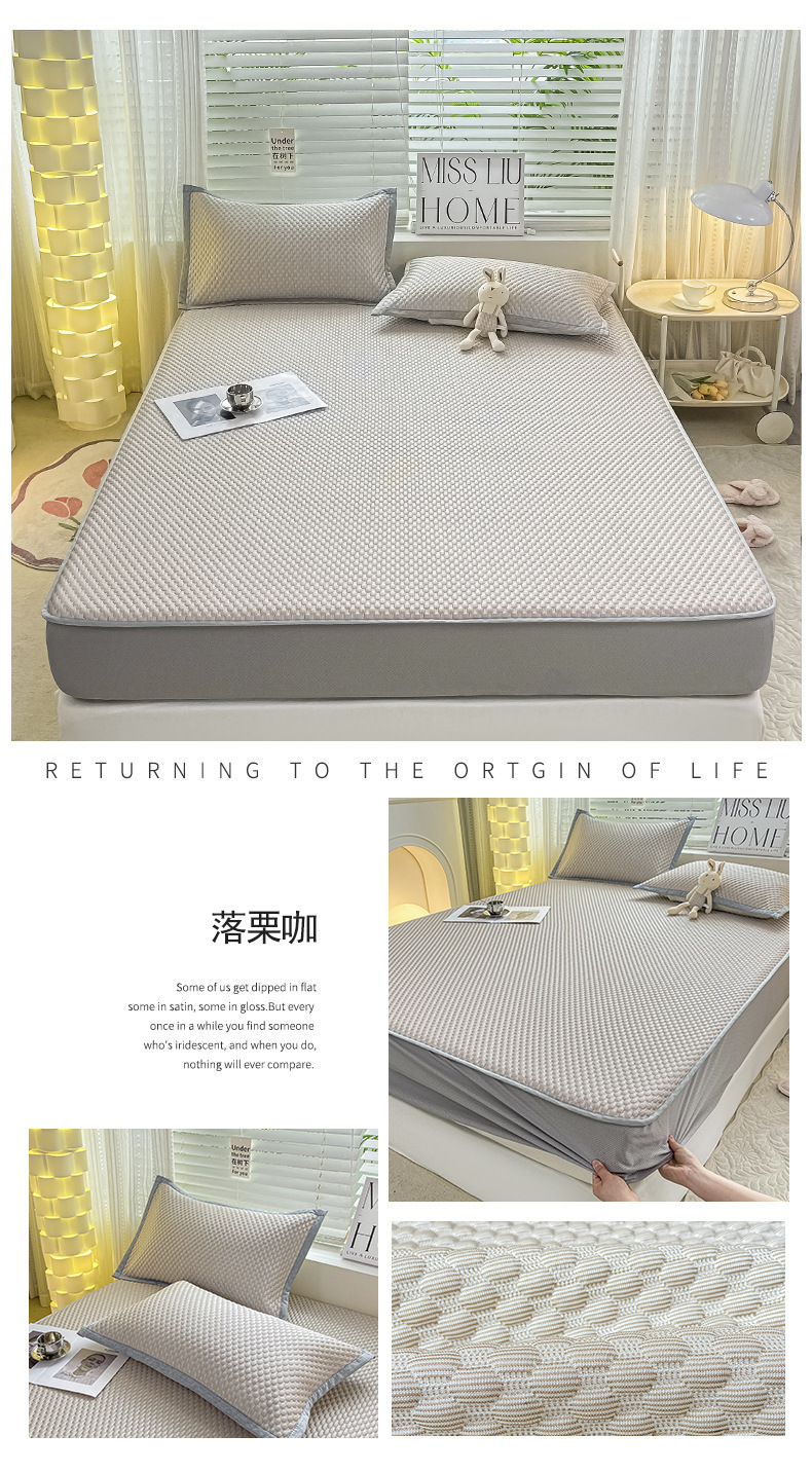 A类母婴级冰丝纯色冰豆豆凉感丝凉席三件套可折叠床笠床裙款凉席