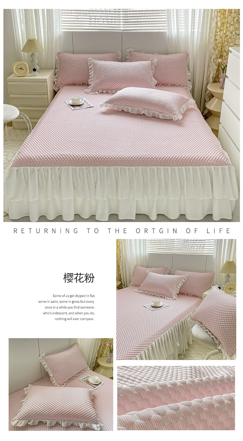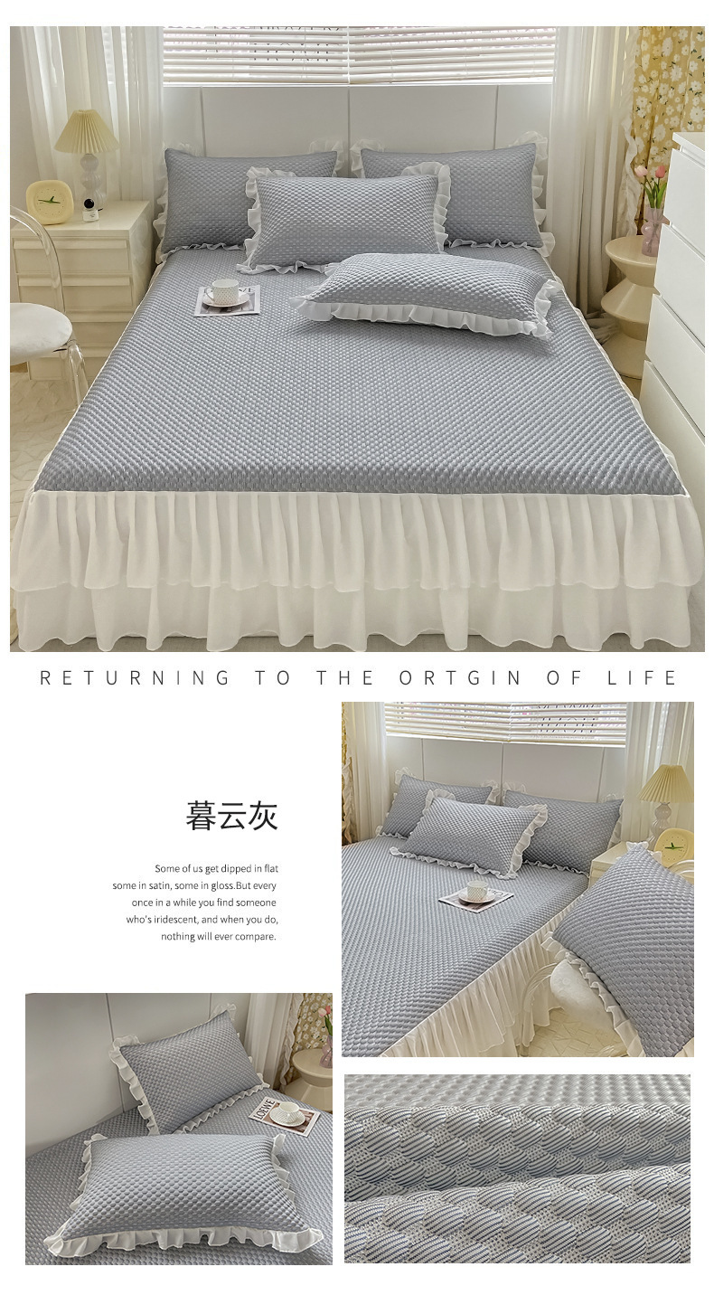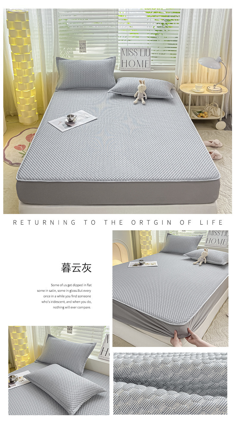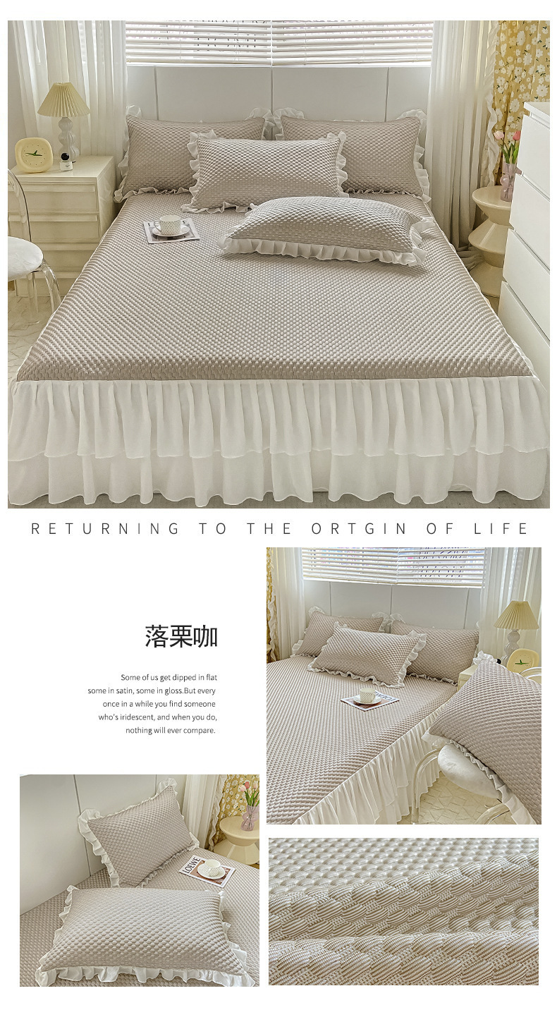 A类母婴级冰丝纯色冰豆豆凉感丝凉席三件套可折叠床笠床裙款凉席