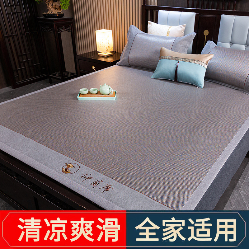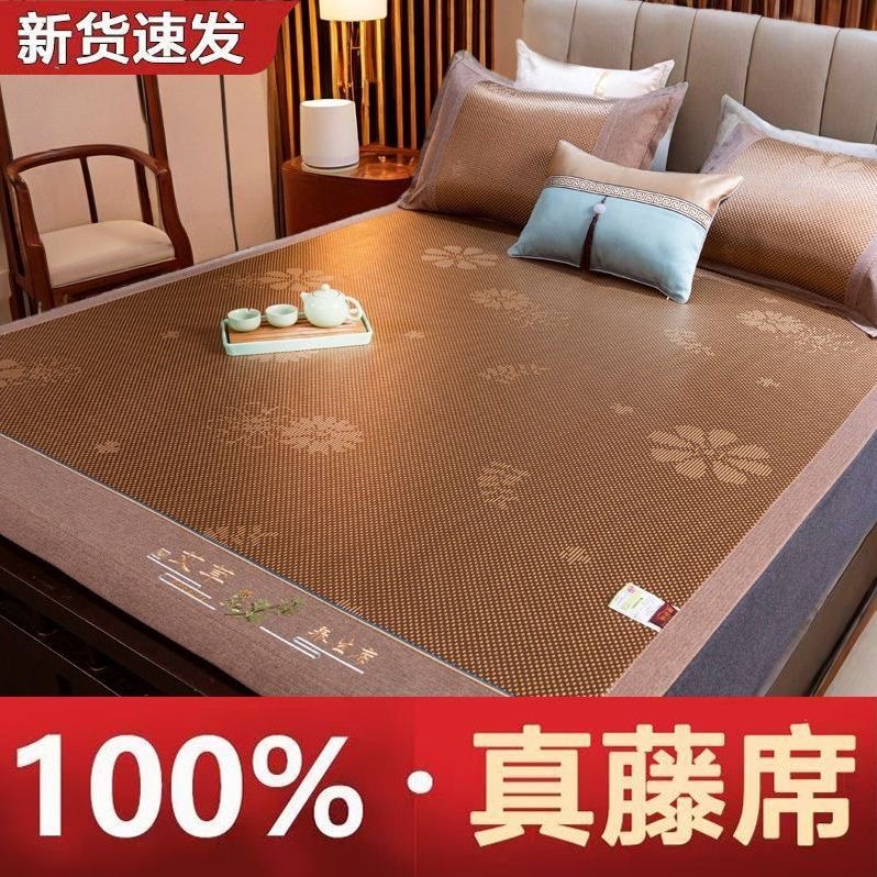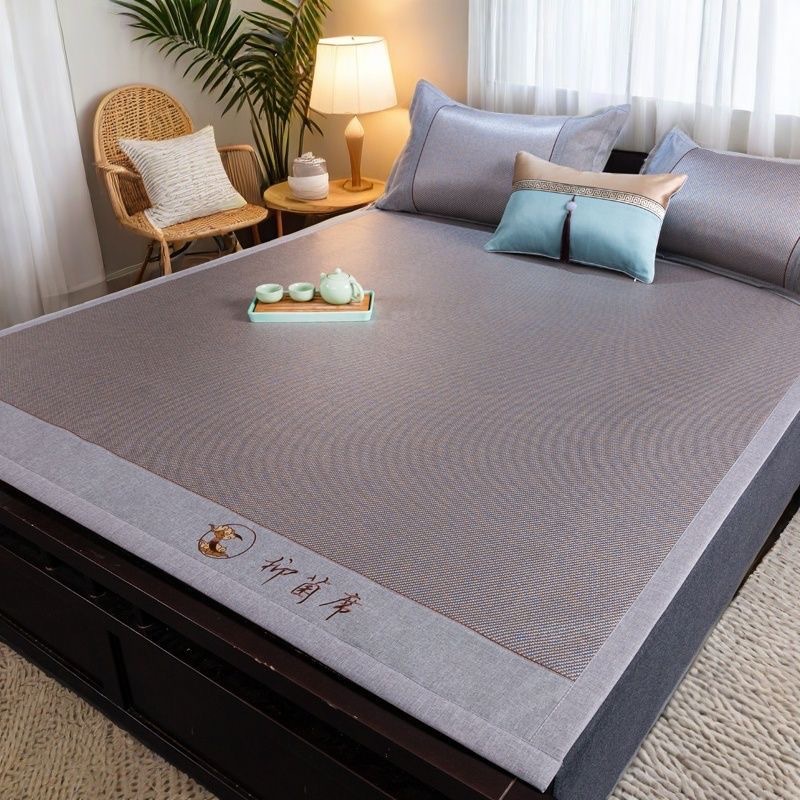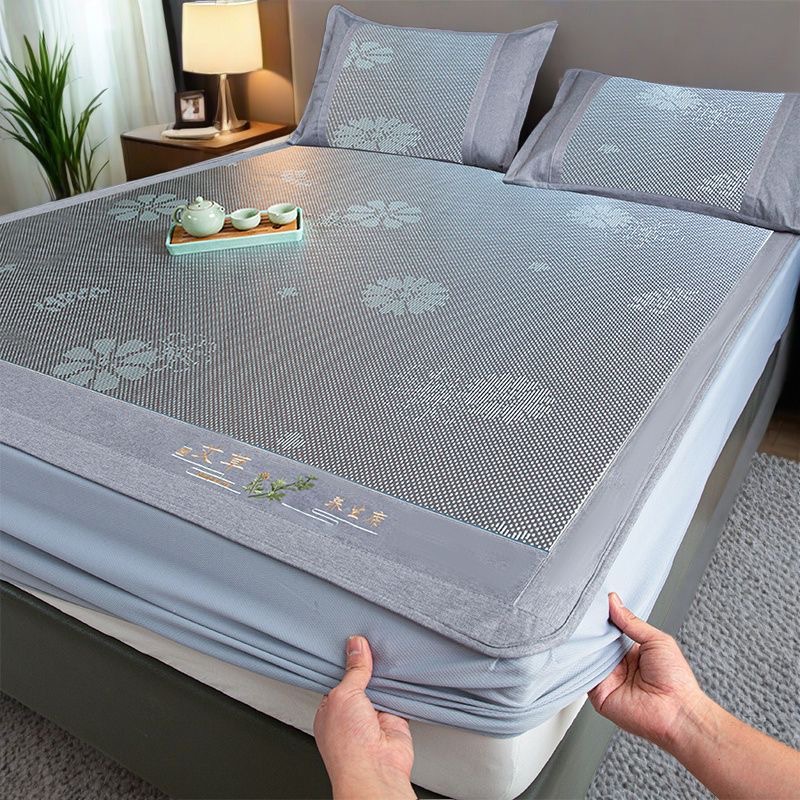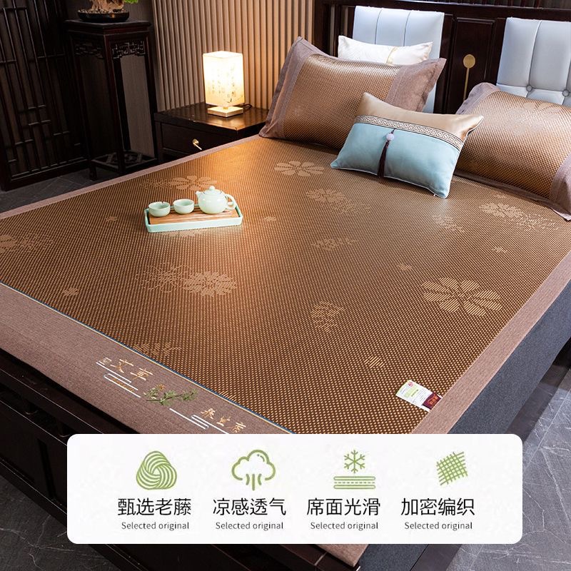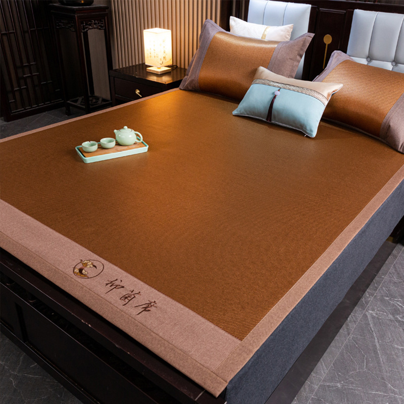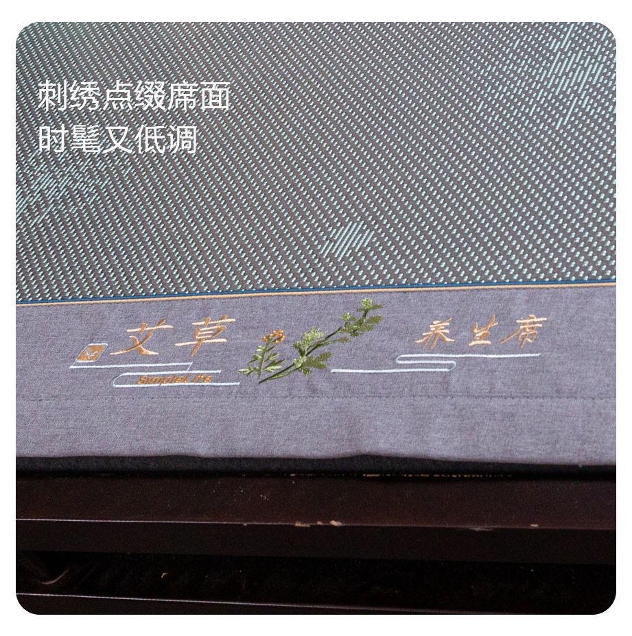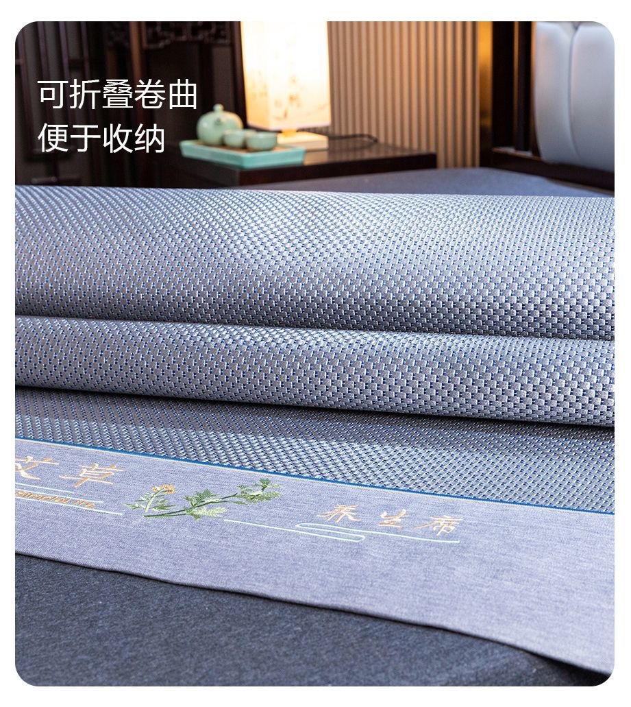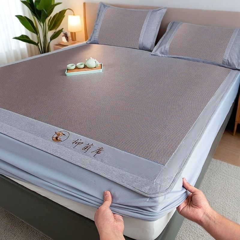 藤席三件套冰丝凉席夏天床笠款纯色榻榻米加厚折叠软防滑刺绣席子