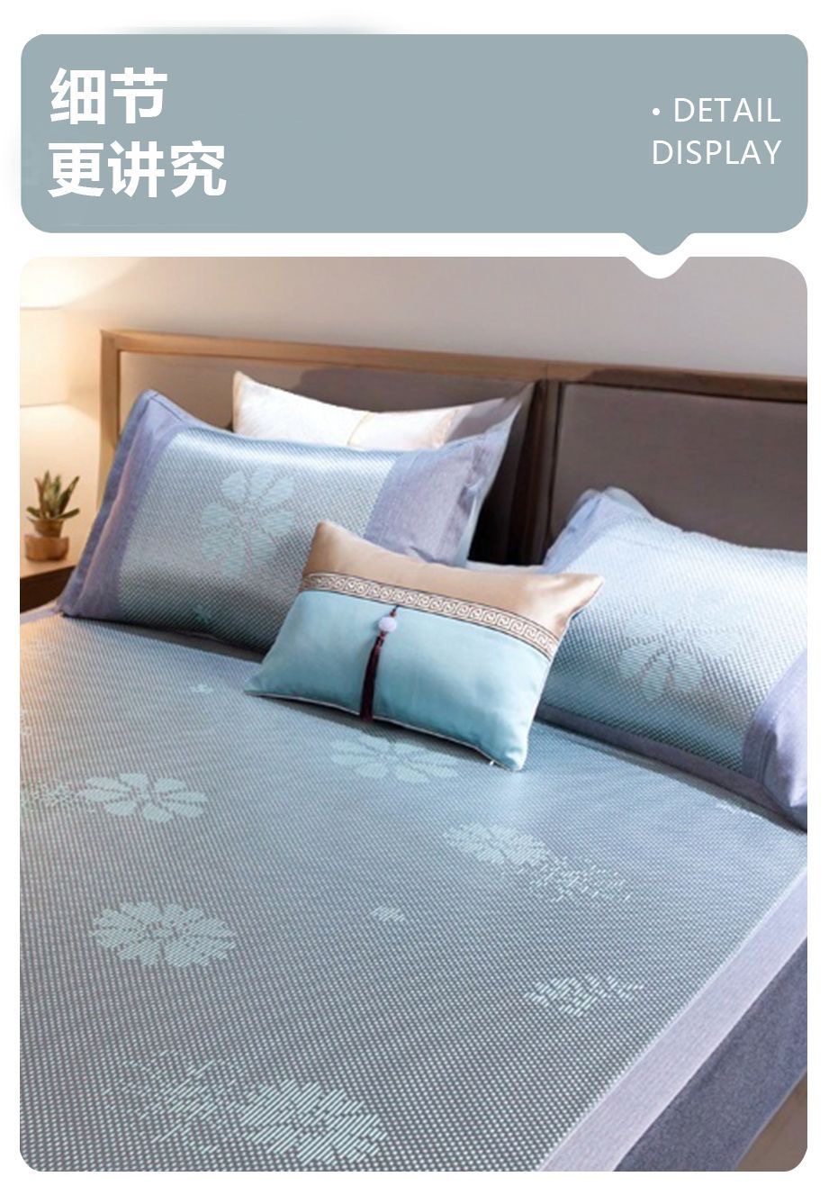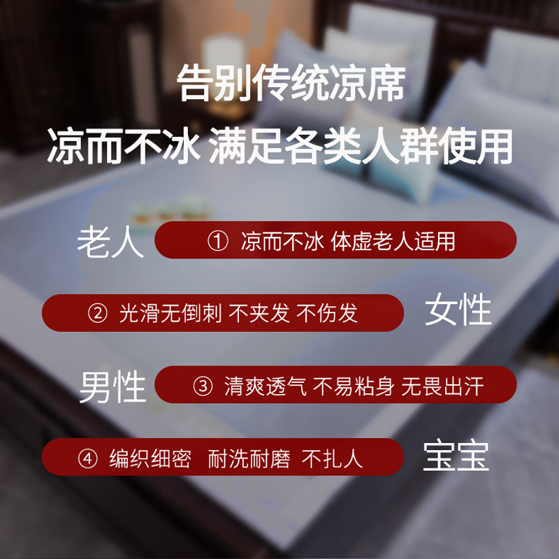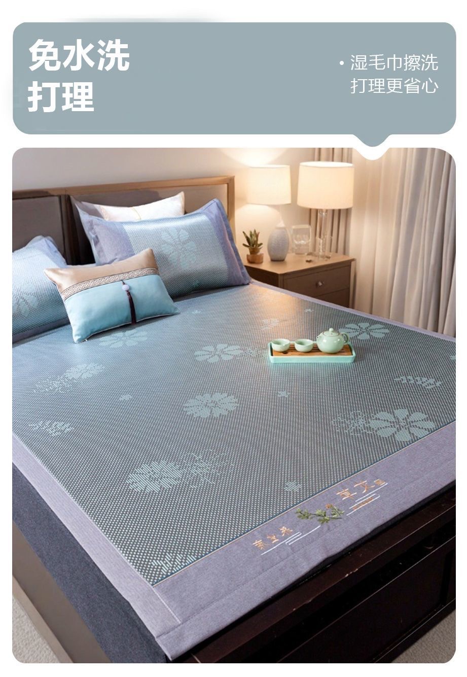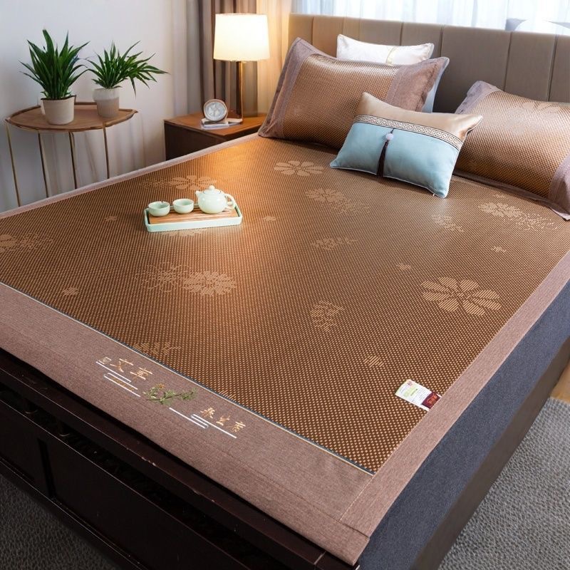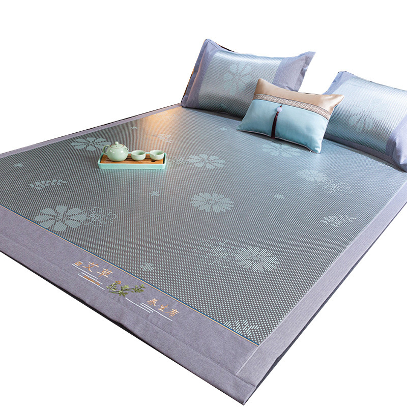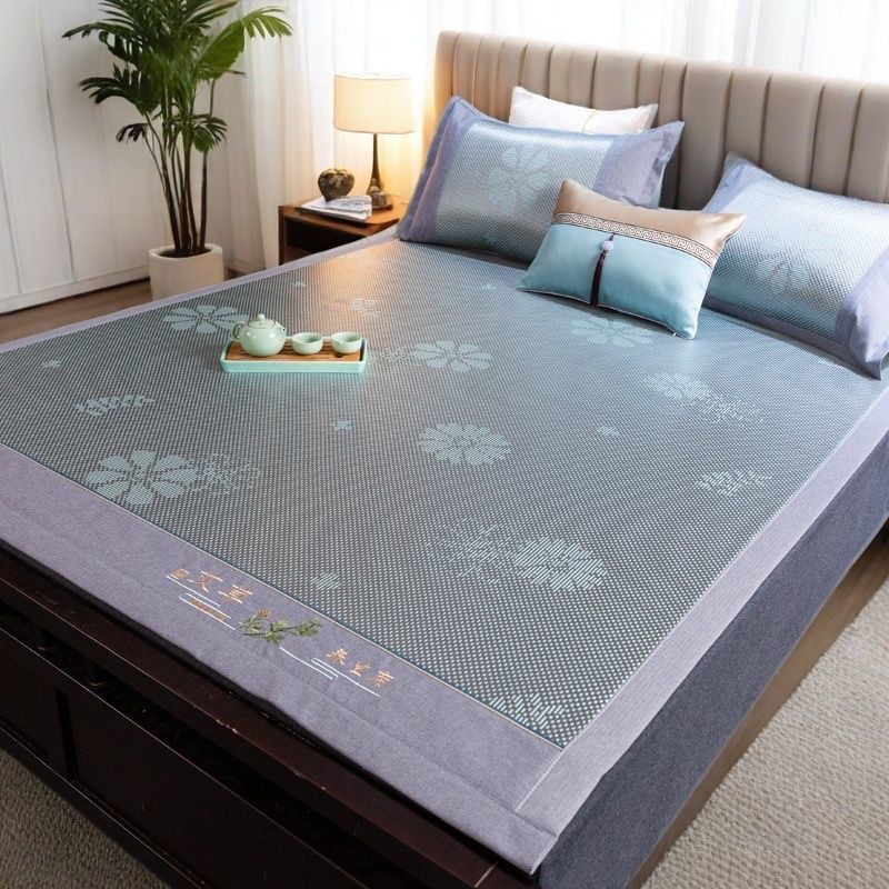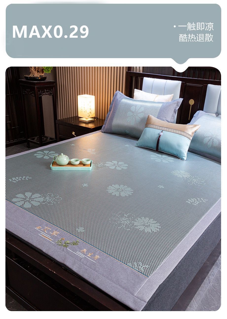 藤席三件套冰丝凉席夏天床笠款纯色榻榻米加厚折叠软防滑刺绣席子
