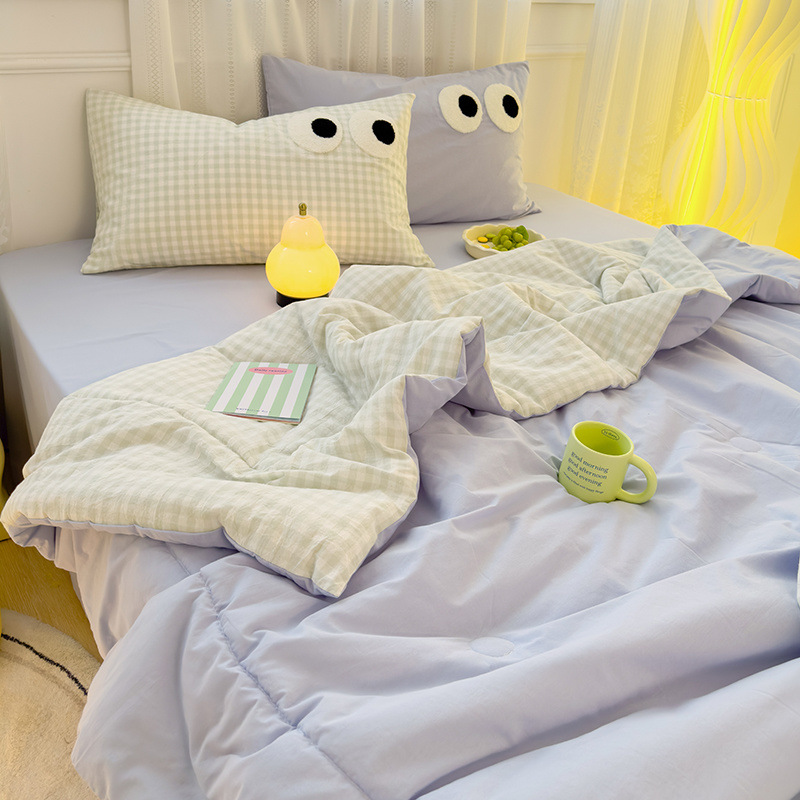 水洗棉空调被子薄款夏凉被床笠款四件套夏季单人宿舍夏被三件套