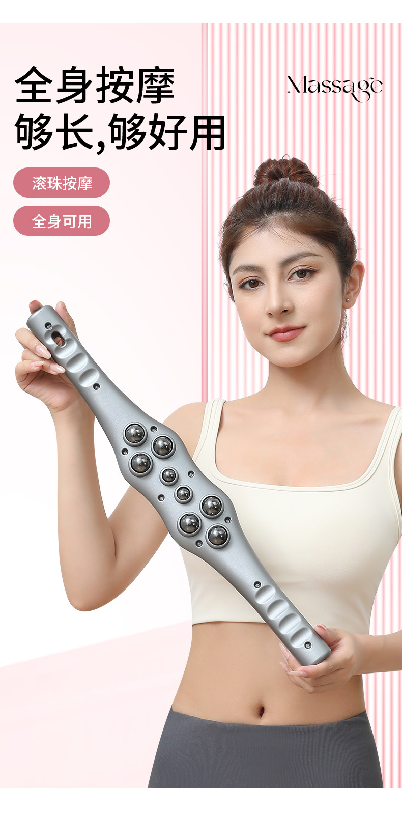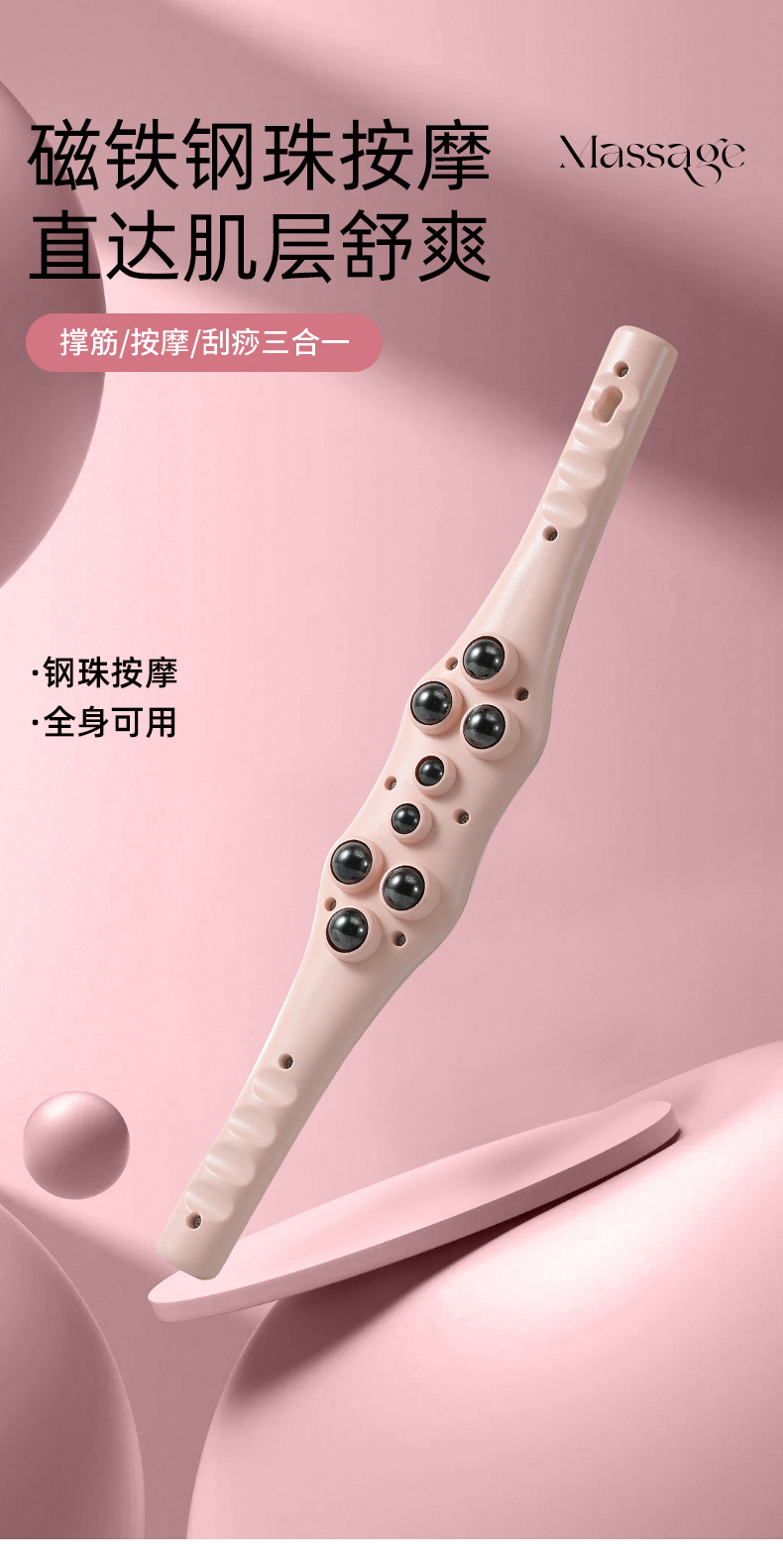 按摩器按摩背刷经络擀背钢珠滚轮滚轮刷推手动滚珠按摩磁珠刮痧棒