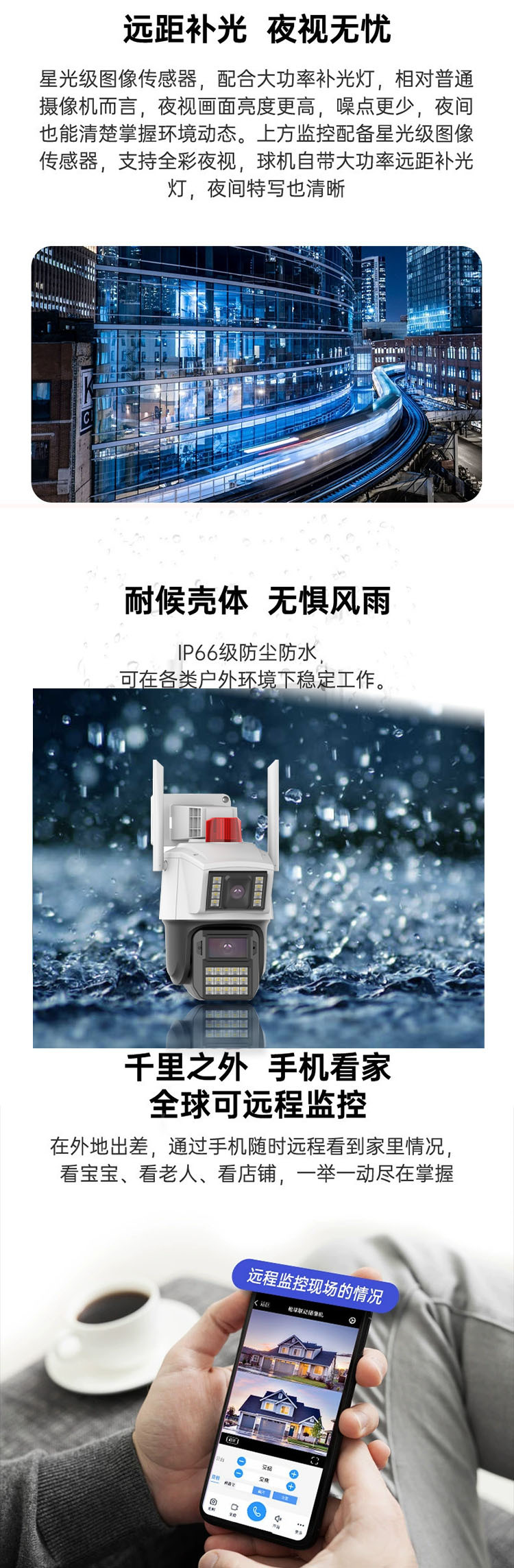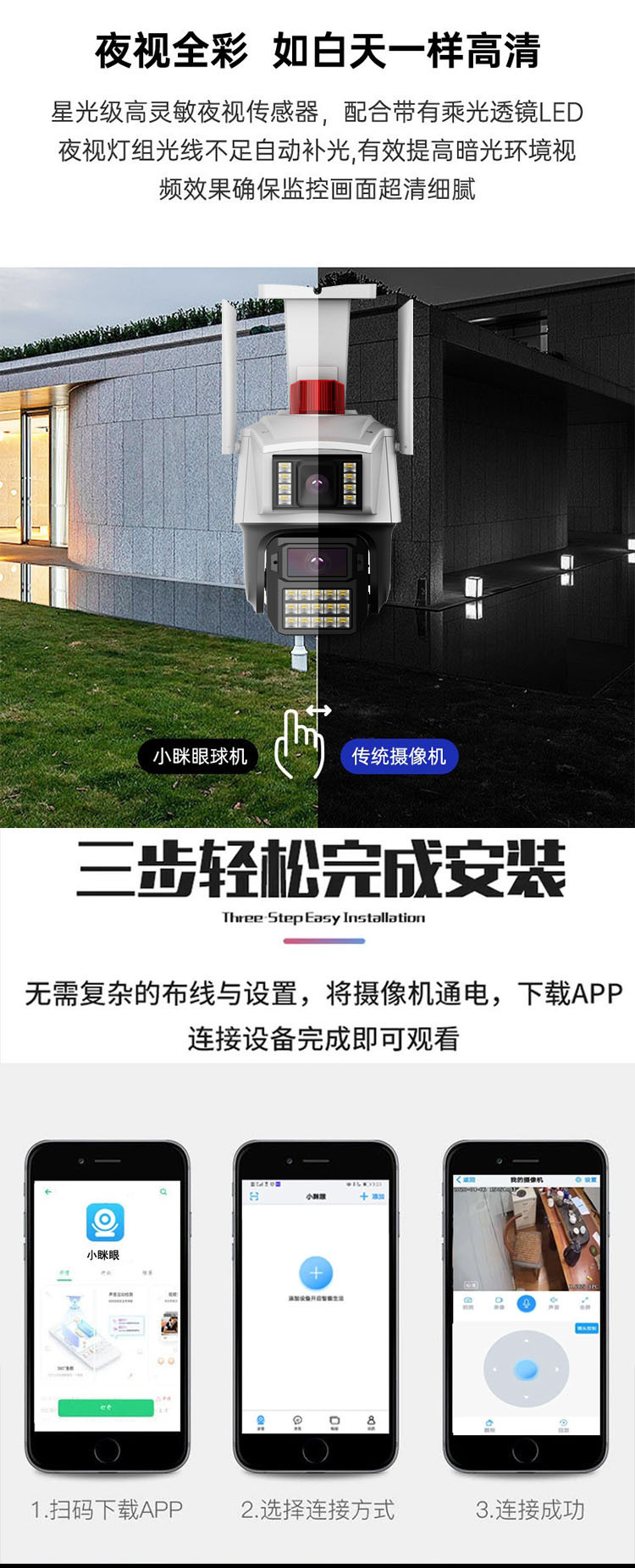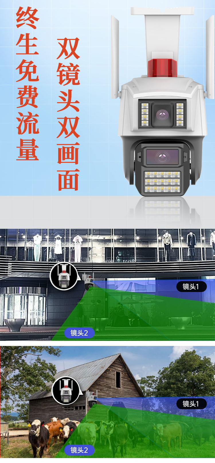 4G免充值送终身流量双头双画面枪球监控摄像头高清夜视无需网络