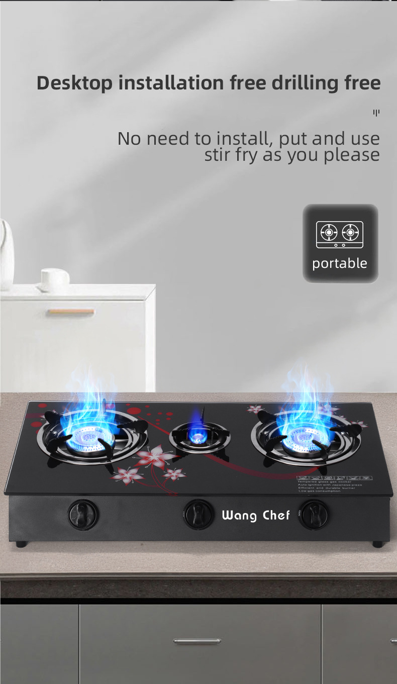 跨境外贸燃气灶双头商用煤气灶玻璃煤气炉台式厨具燃具厂家货
