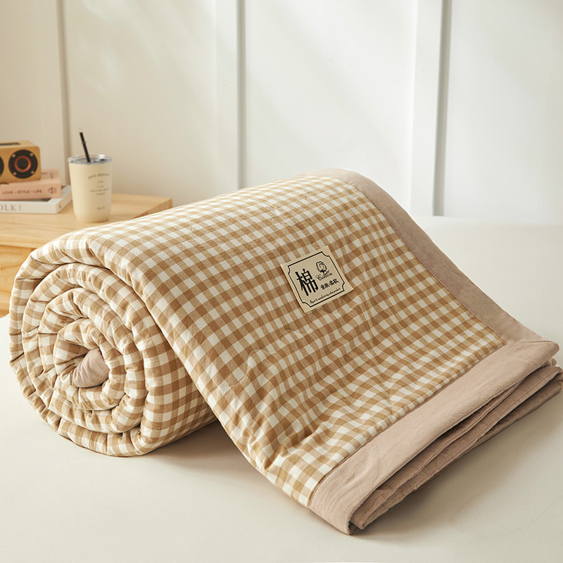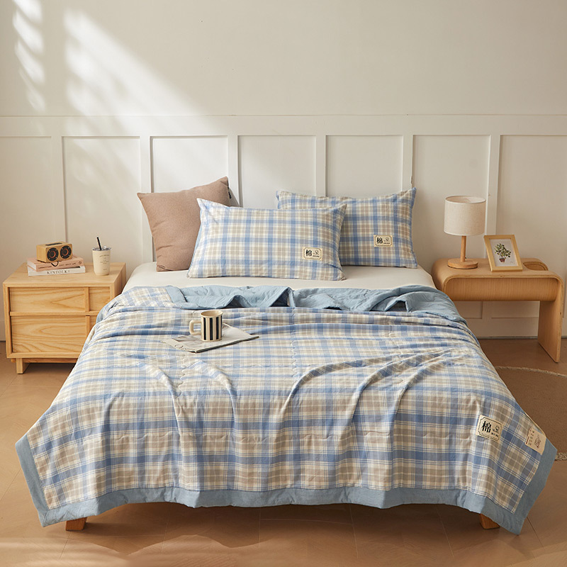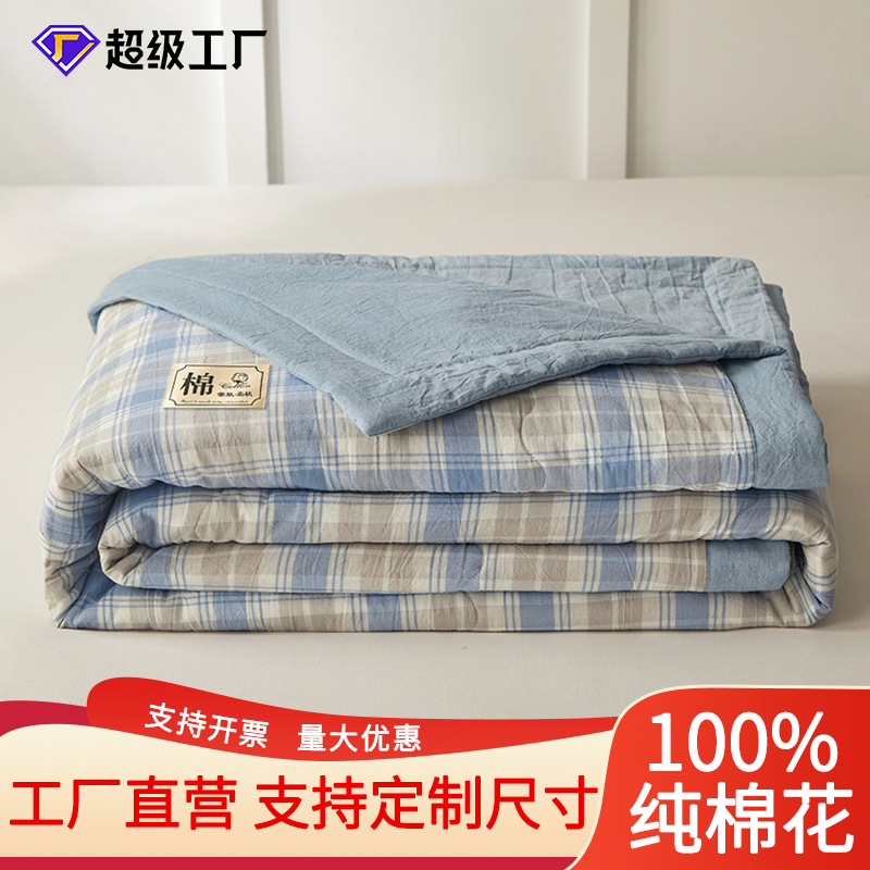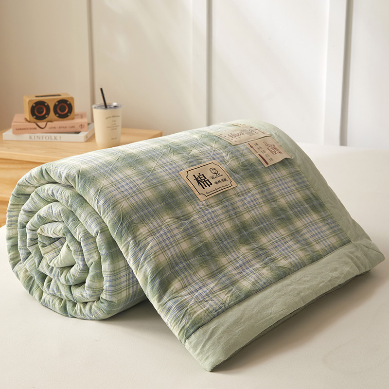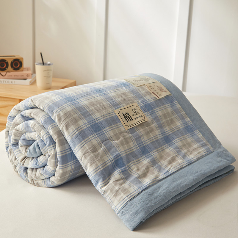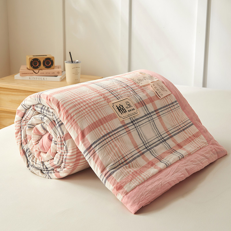 色织水洗棉夏凉被a类纯棉棉花空调被四件套可水洗机洗薄被ins风