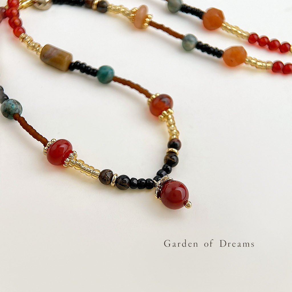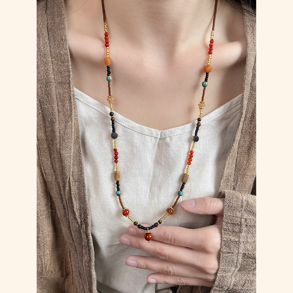 国风手作复古天然红玛瑙撞色毛衣链复古民族风新中式高级感项链女