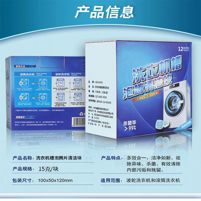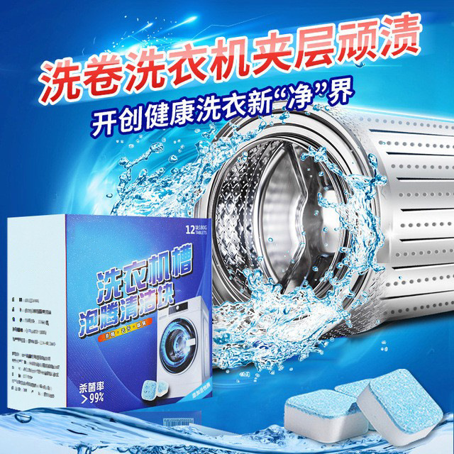 12片装洗衣机槽泡腾片深层清洁去污除污垢清洁剂固体洗衣机清洗剂