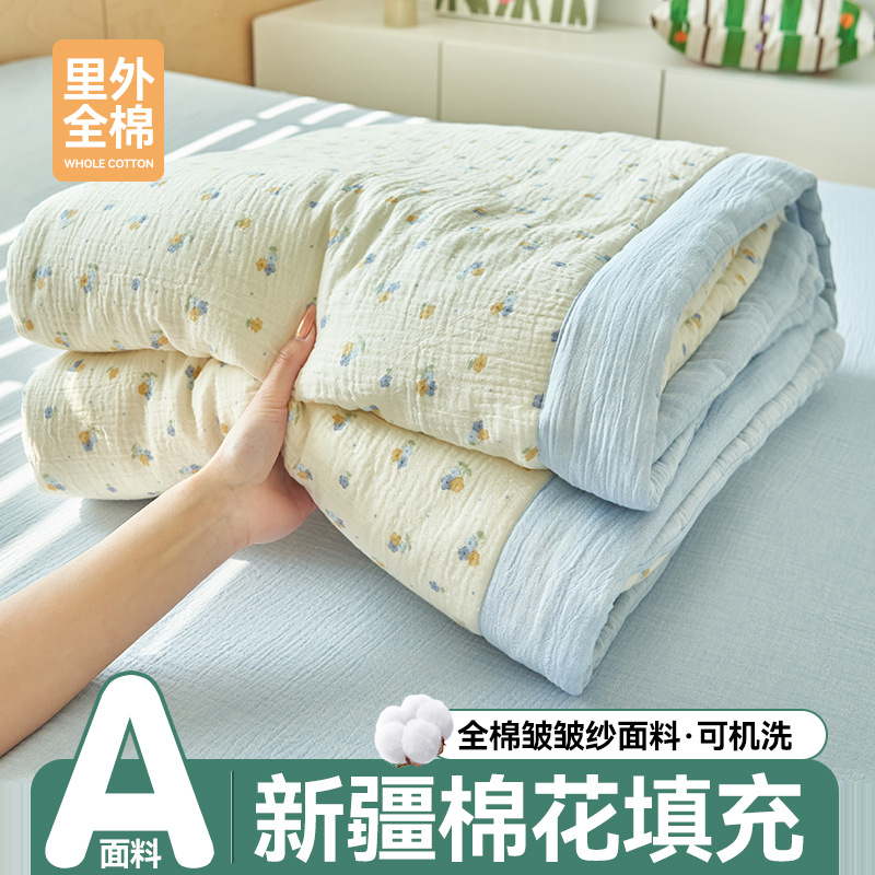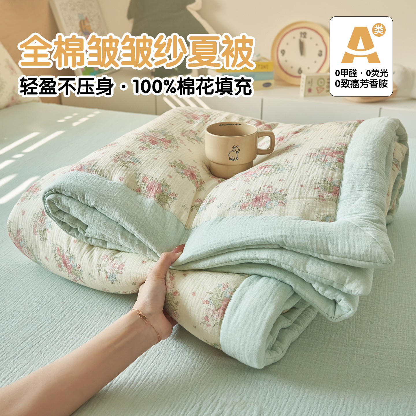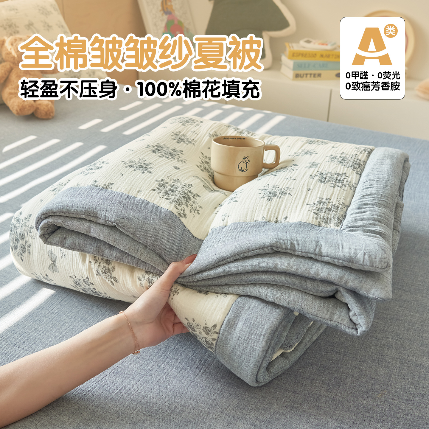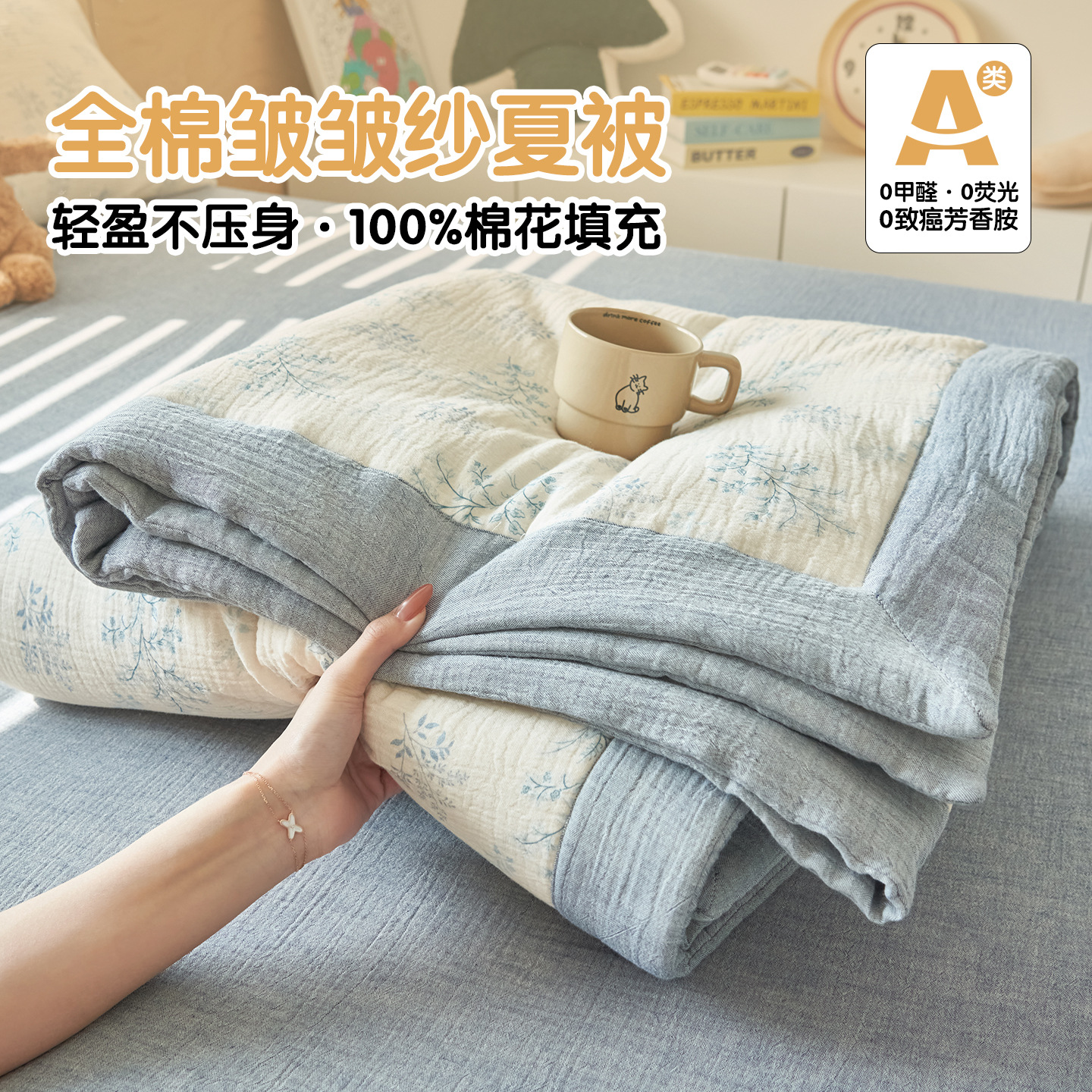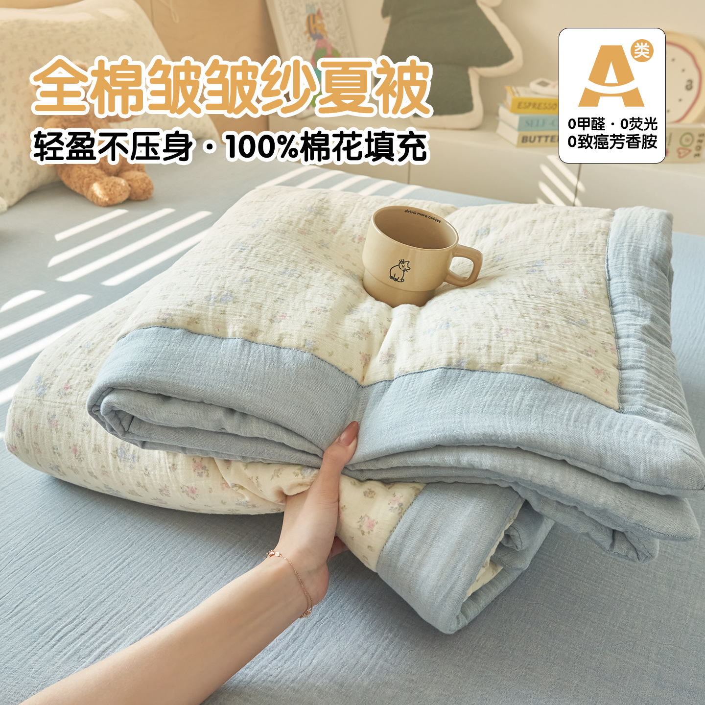 新疆棉皱皱纱夏凉被a类母婴级棉花空调被薄被可机洗亲肤裸睡夏被