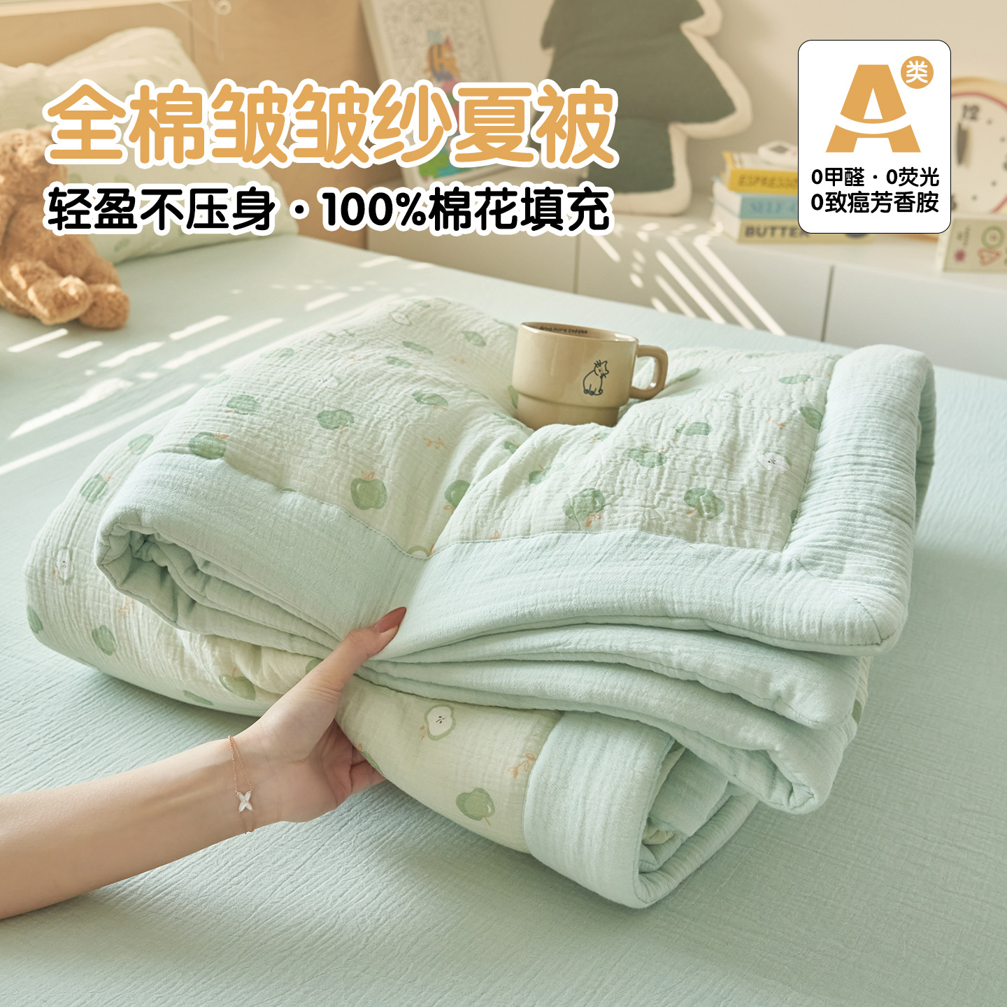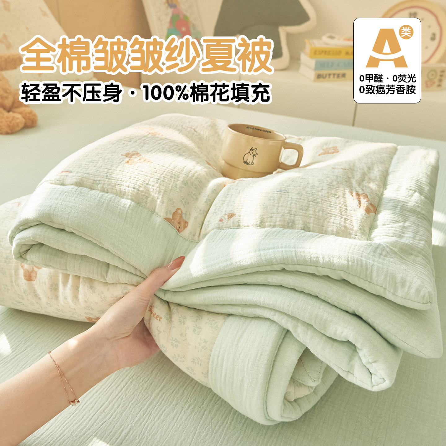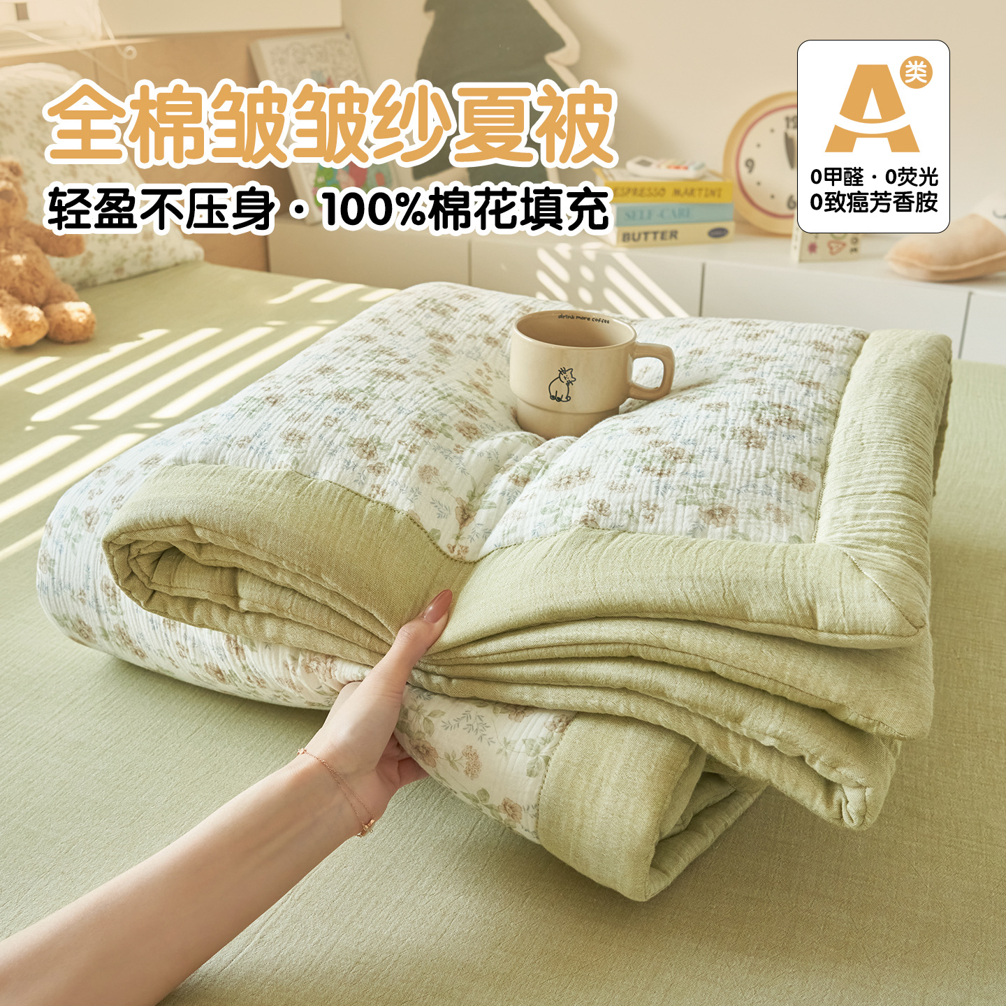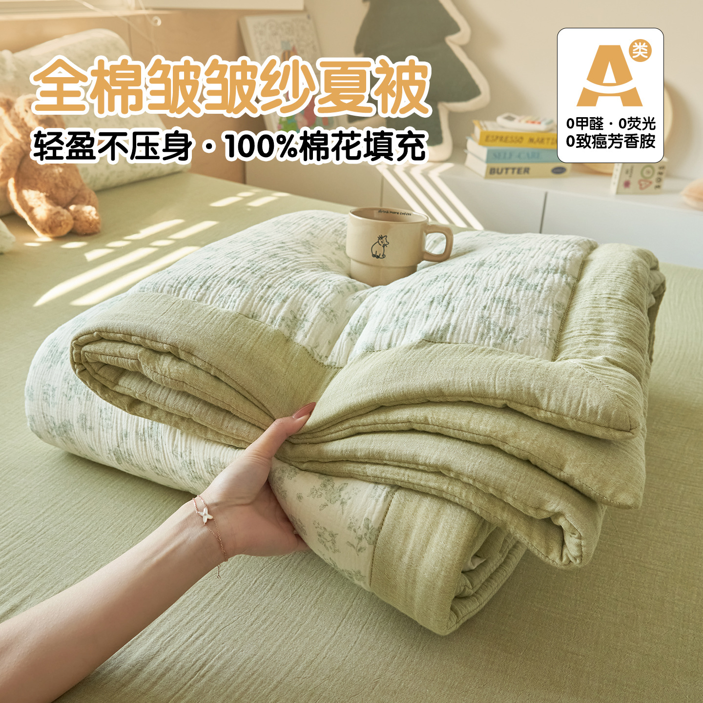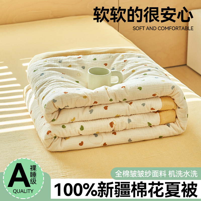 新疆棉皱皱纱夏凉被a类母婴级棉花空调被薄被可机洗亲肤裸睡夏被