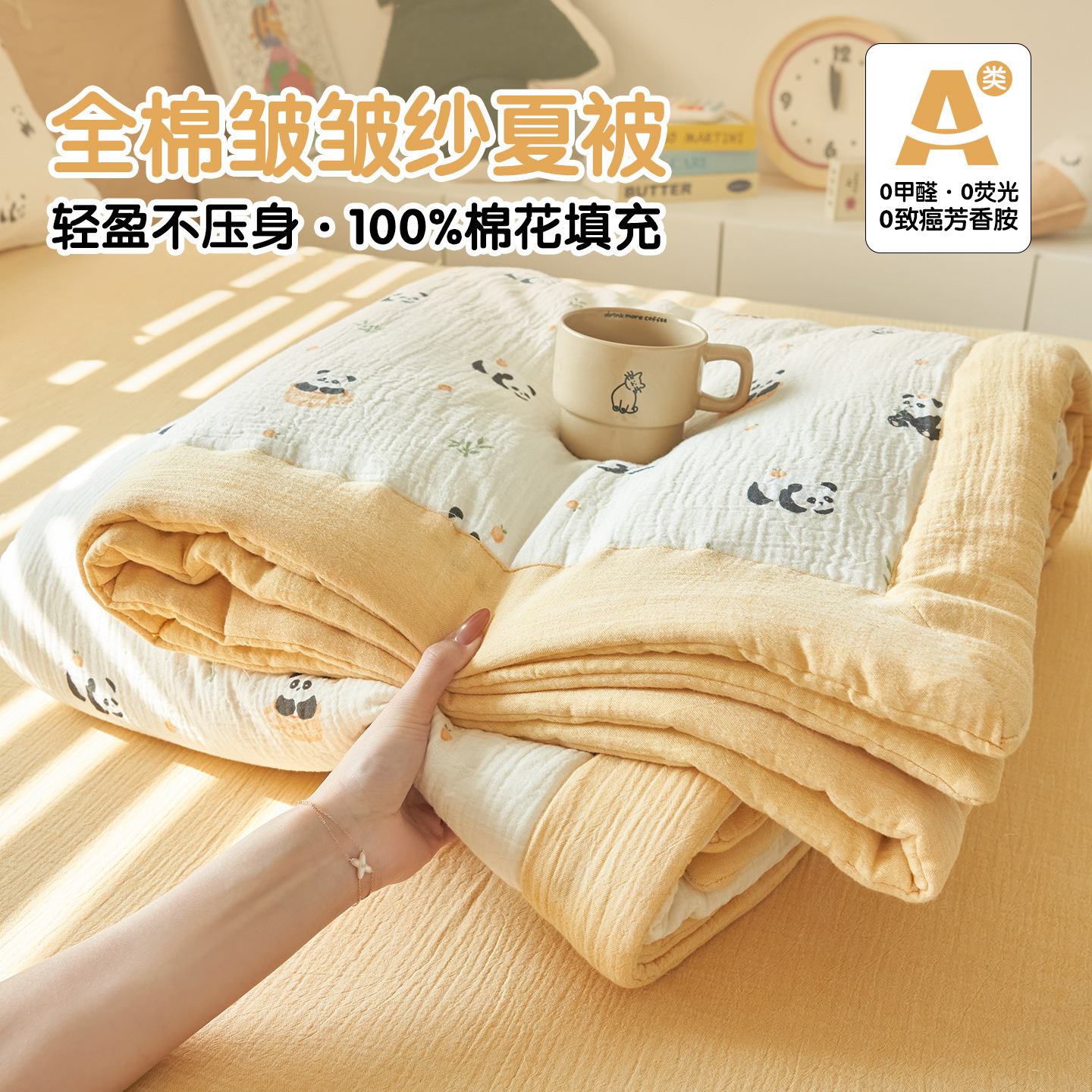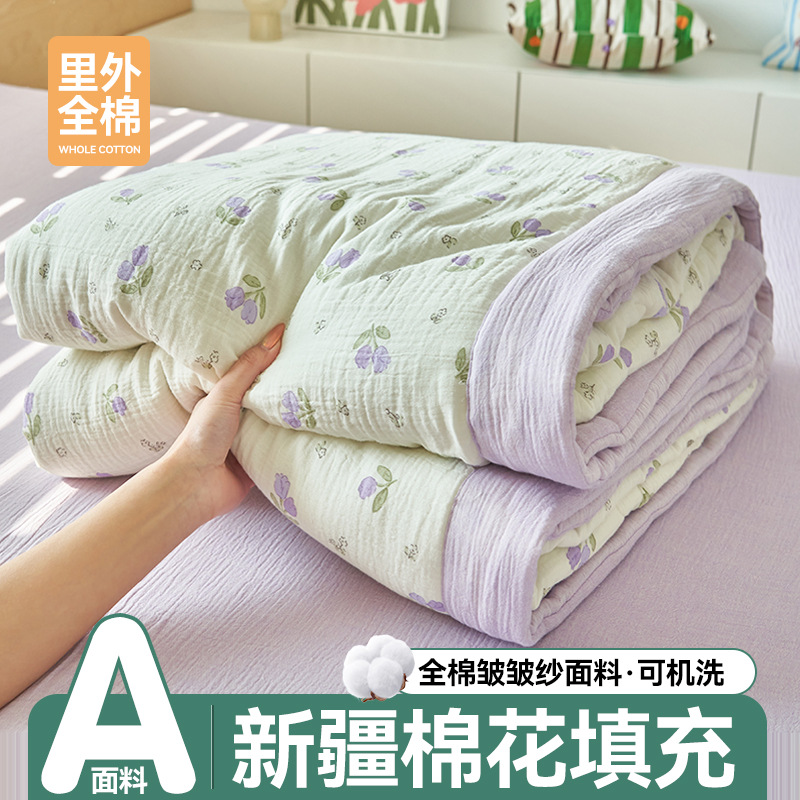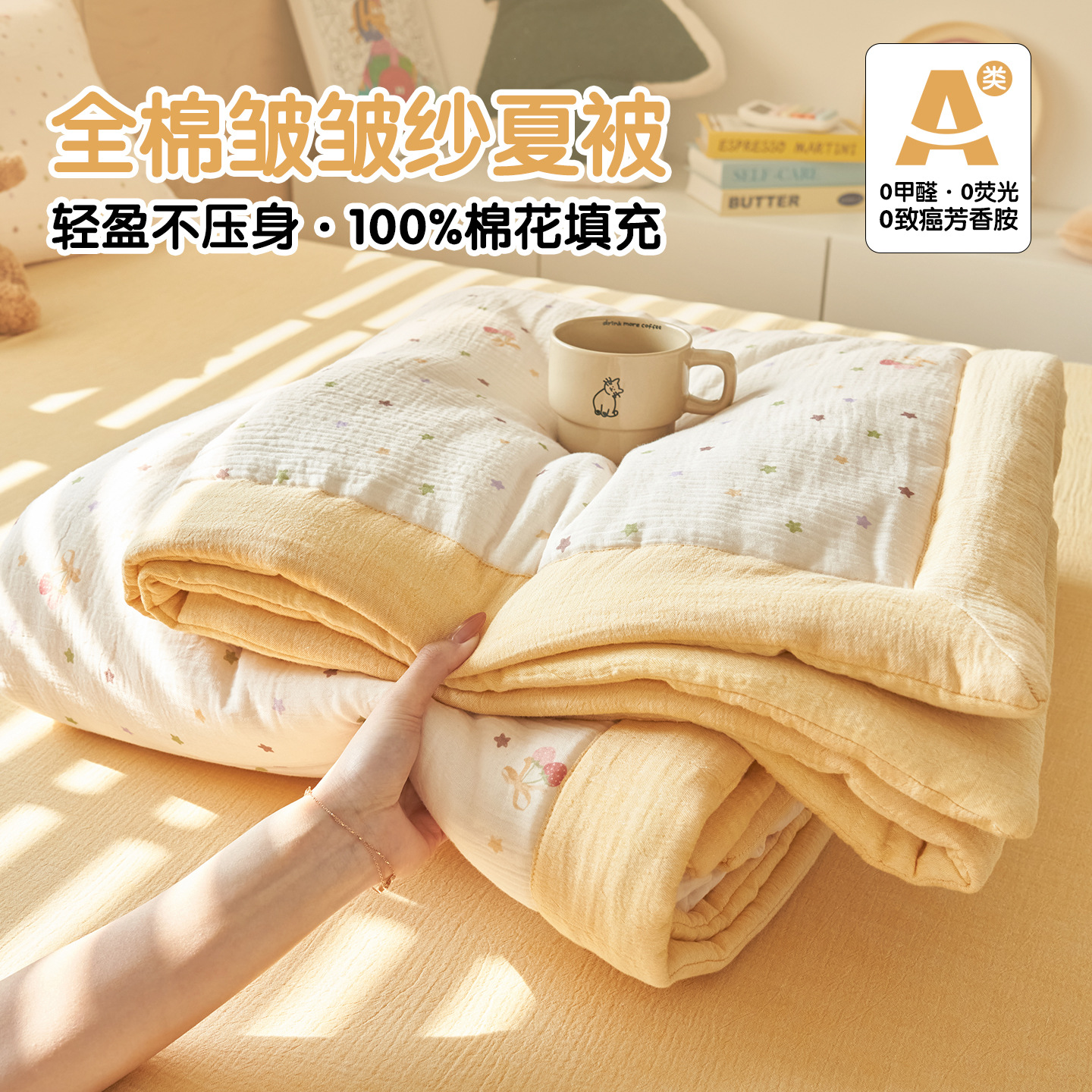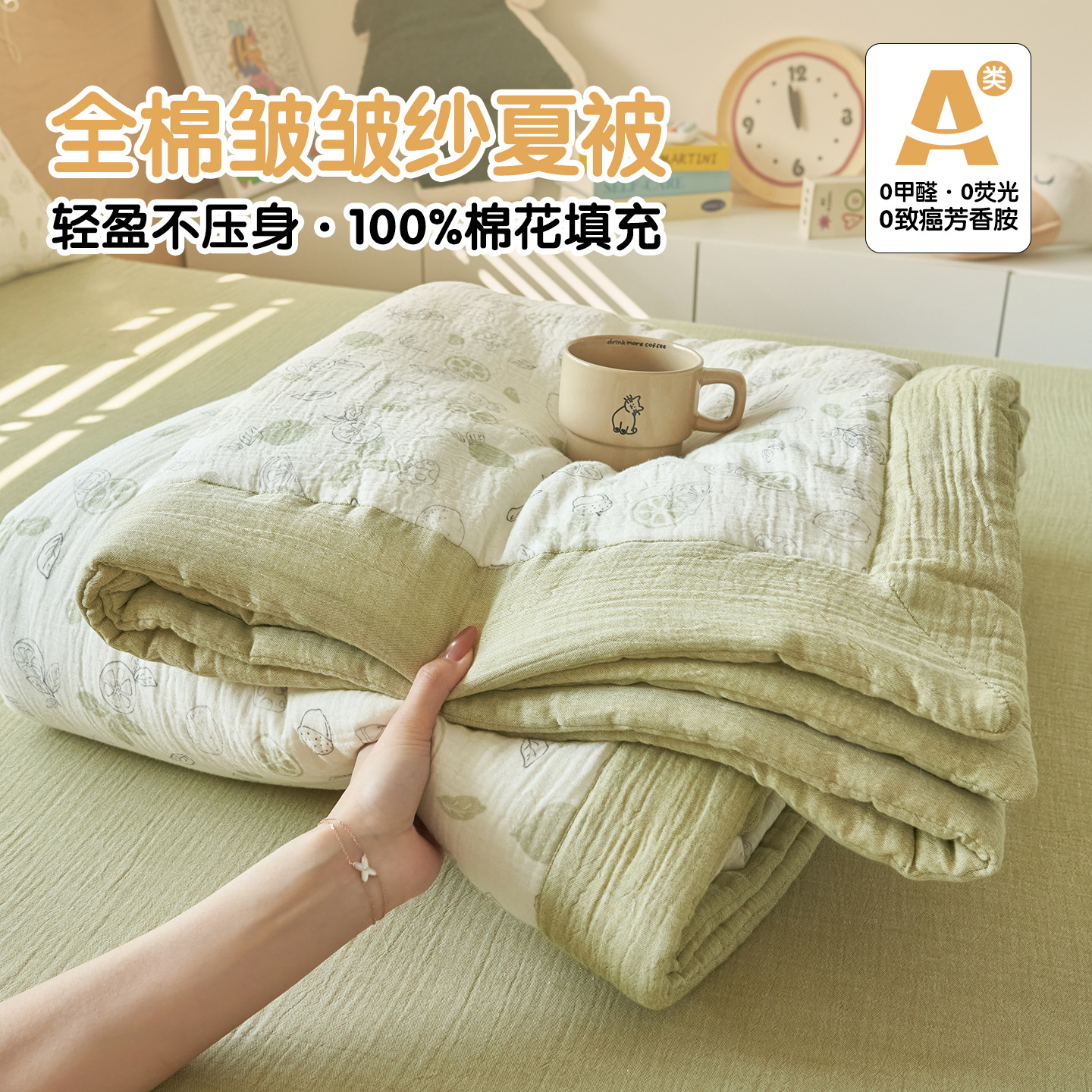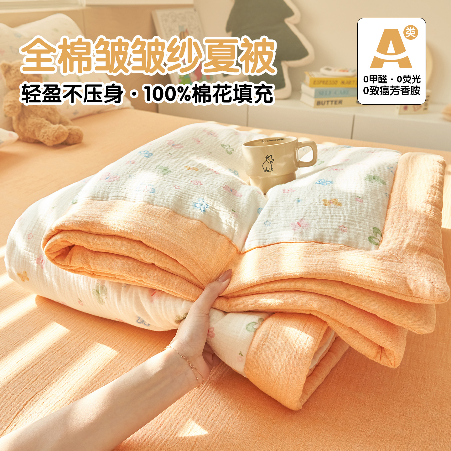 新疆棉皱皱纱夏凉被a类母婴级棉花空调被薄被可机洗亲肤裸睡夏被