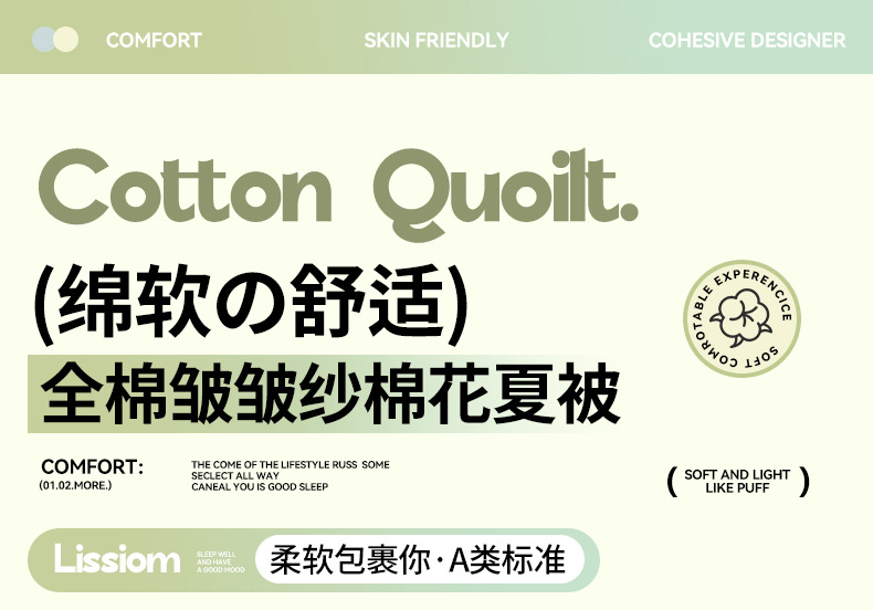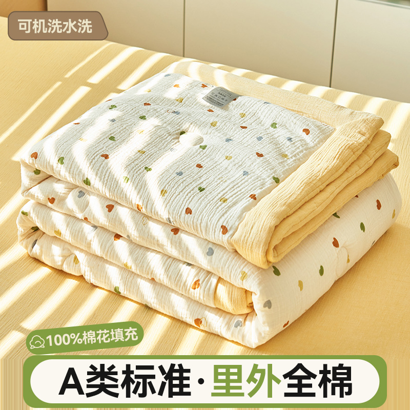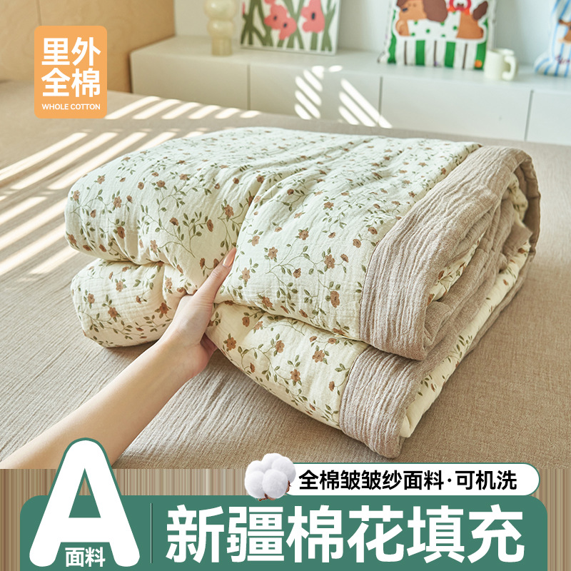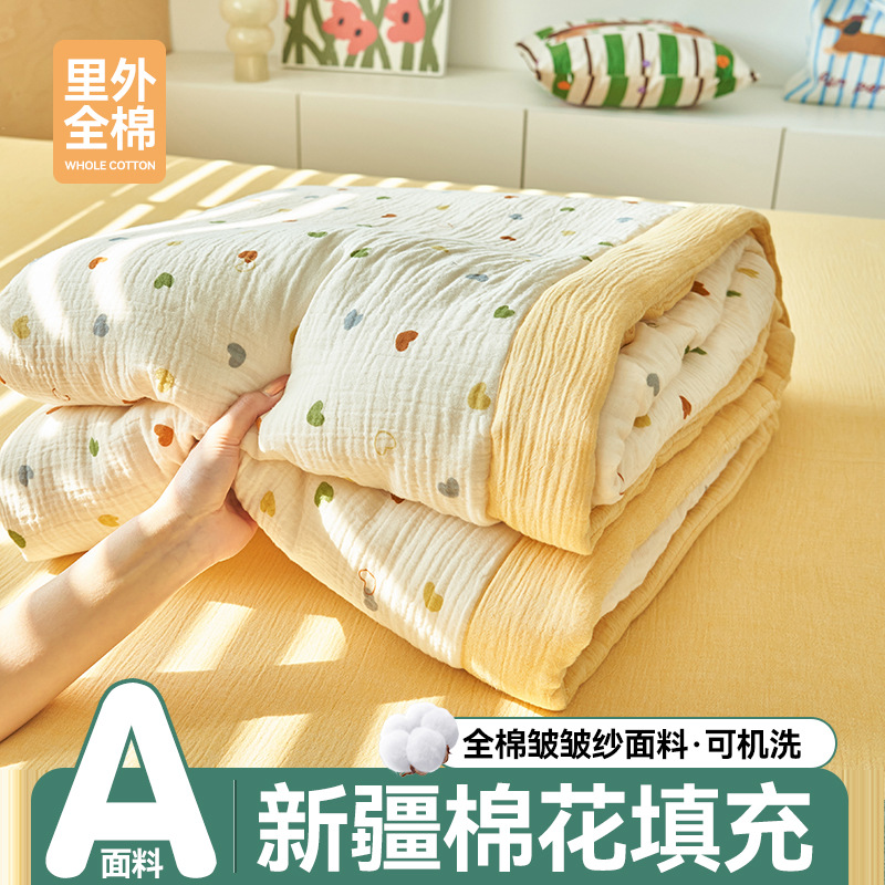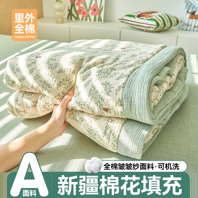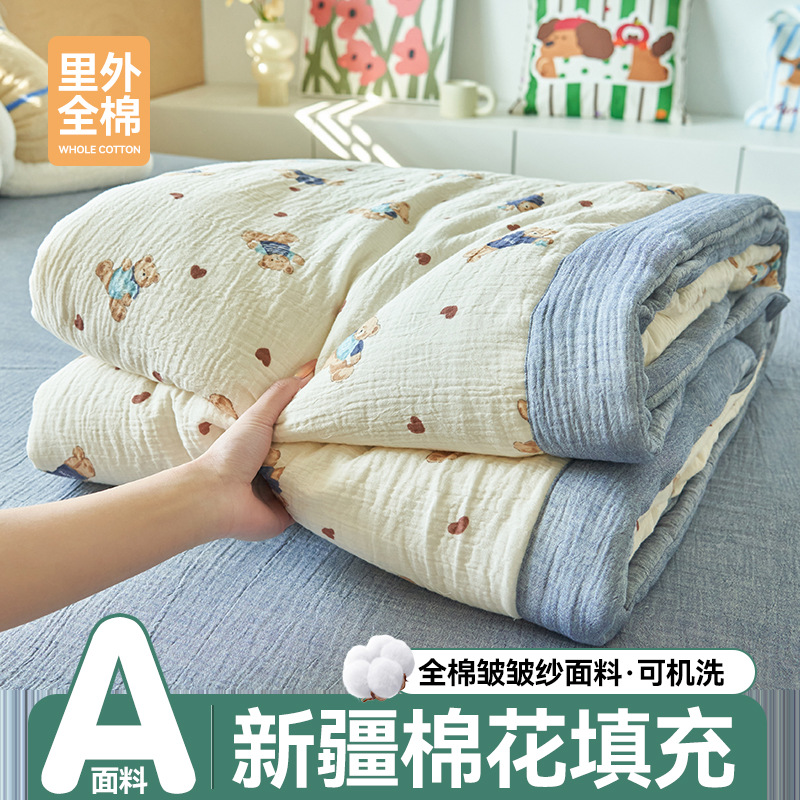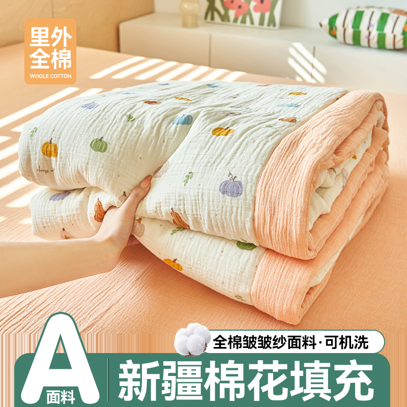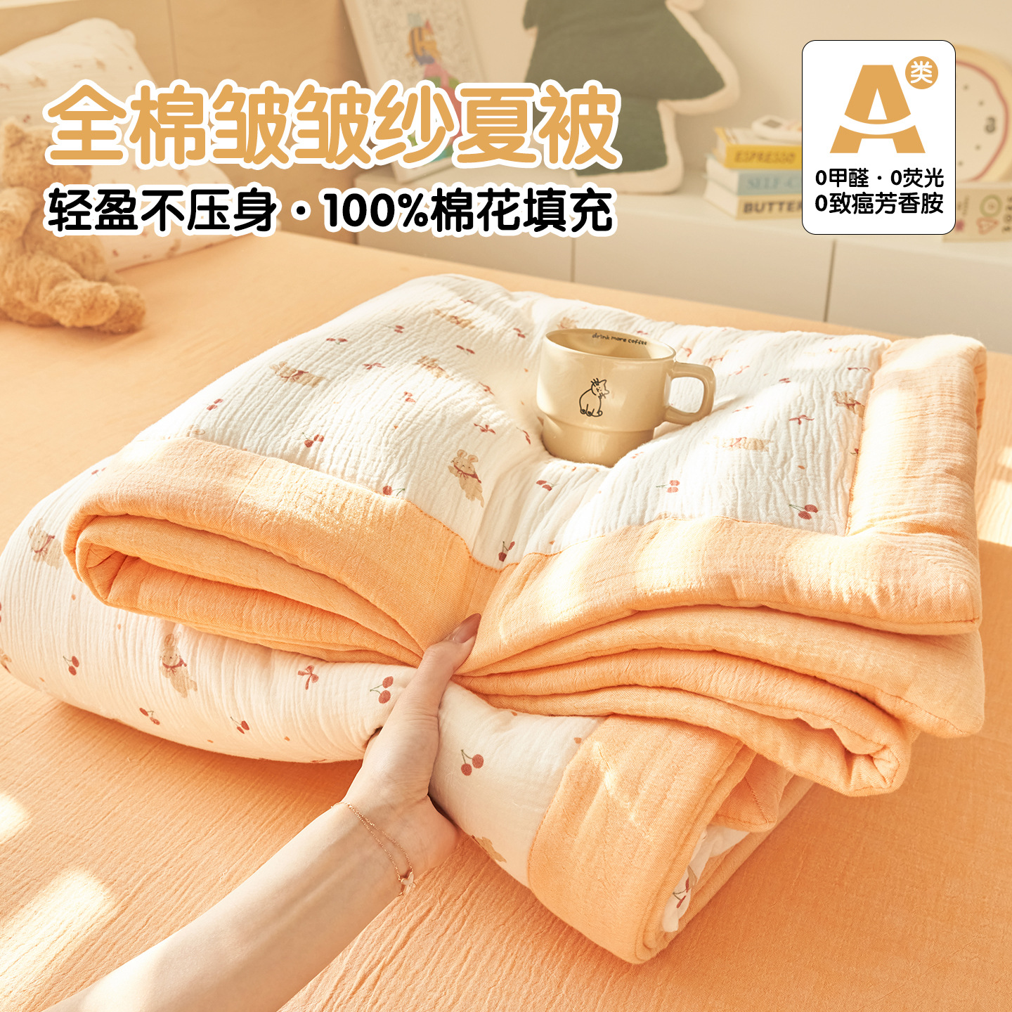 新疆棉皱皱纱夏凉被a类母婴级棉花空调被薄被可机洗亲肤裸睡夏被