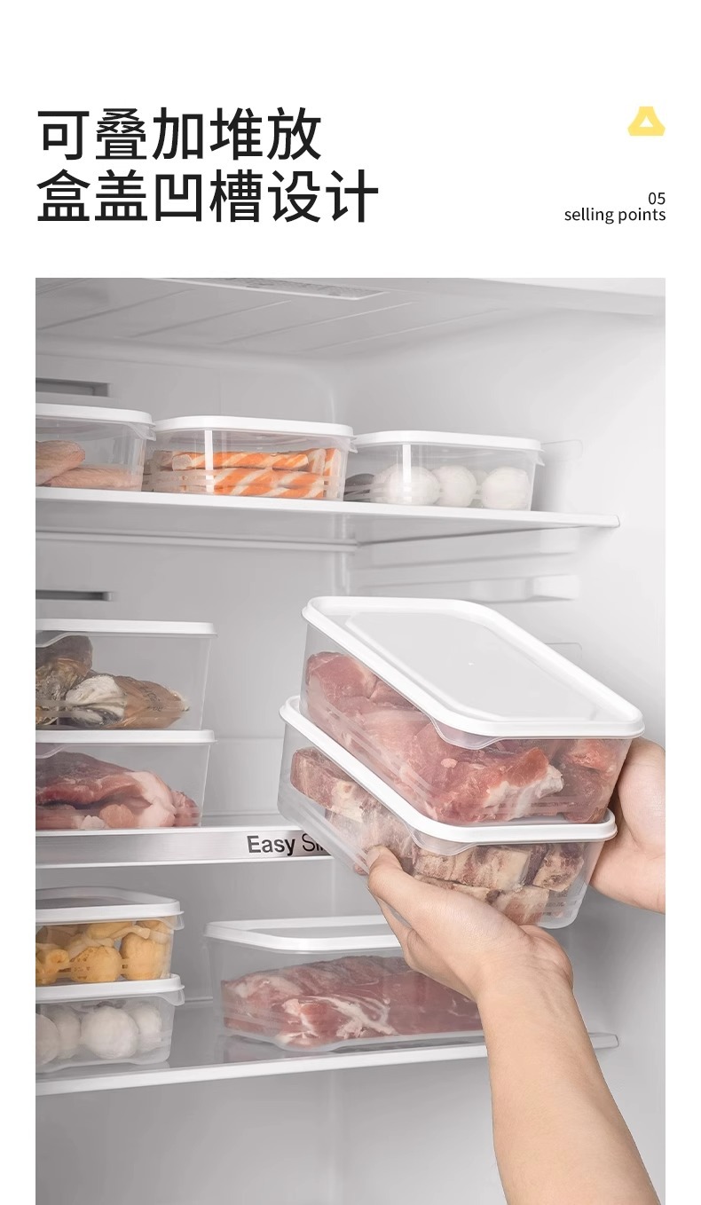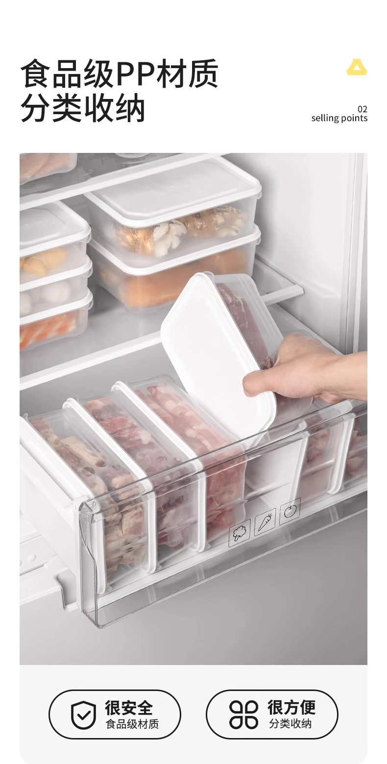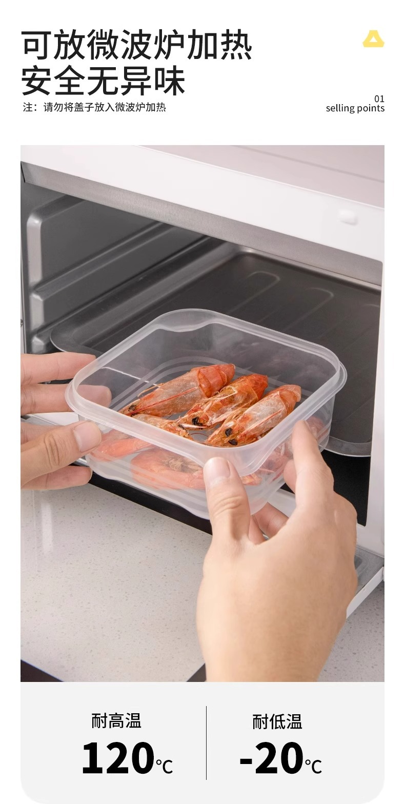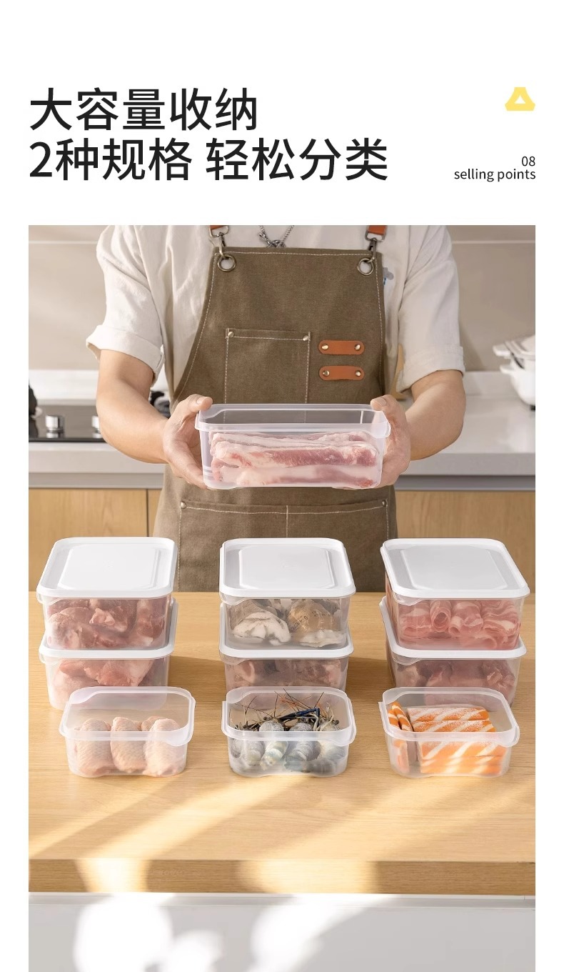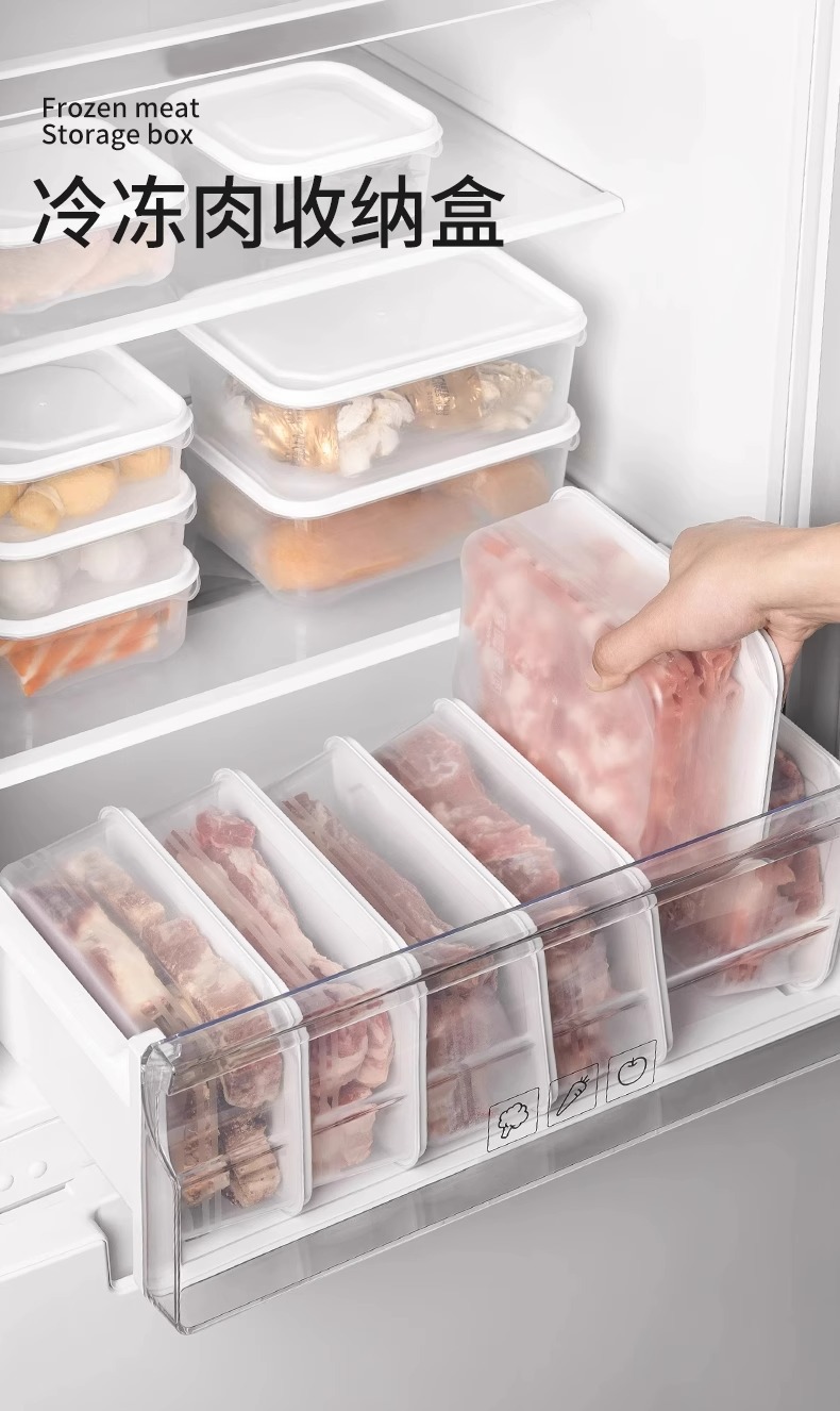 冰箱冻肉保鲜盒厨房备菜分装耐冷冻塑料盒长方形食品级收纳密封盒