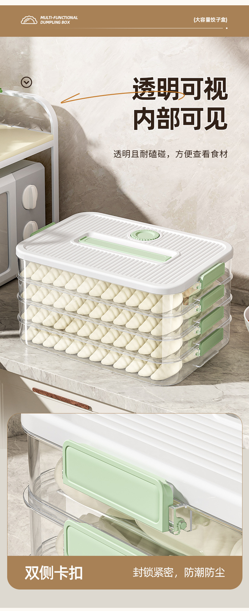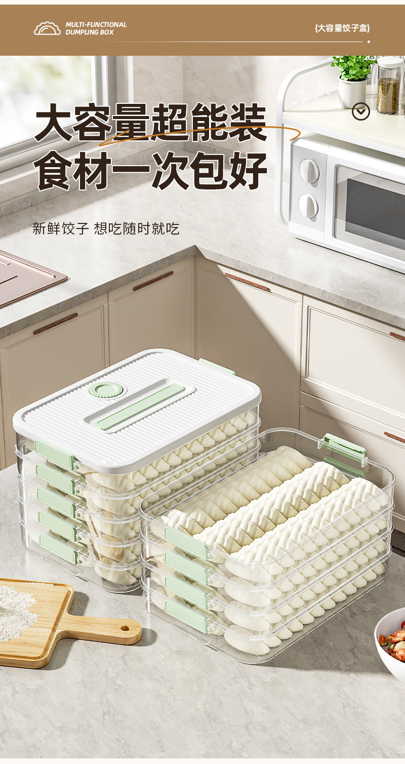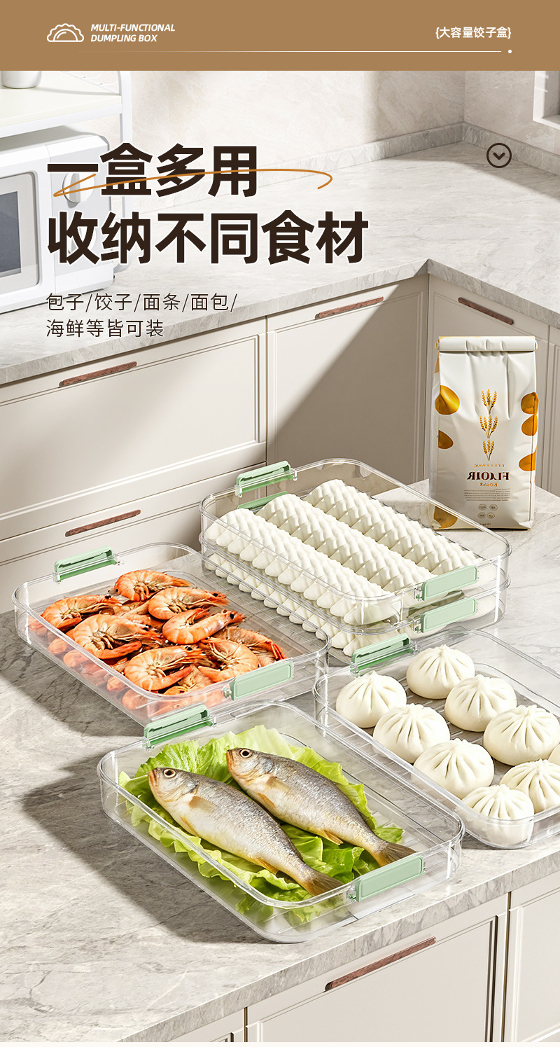 食品级饺子盒大容量多层冷冻专用密封保鲜盒馄饨厨房冰箱收纳盒子