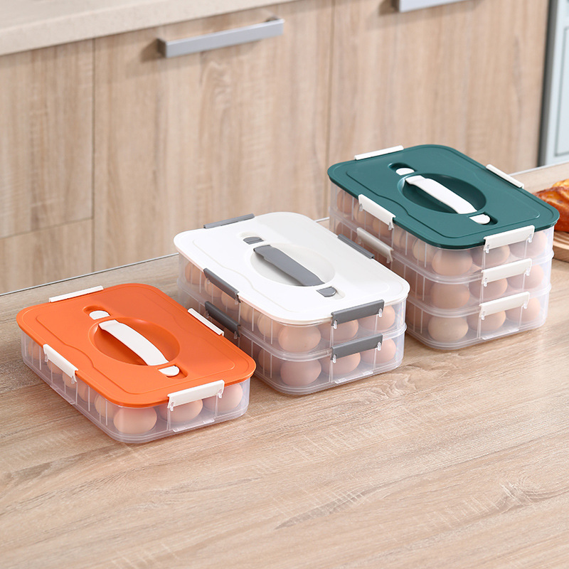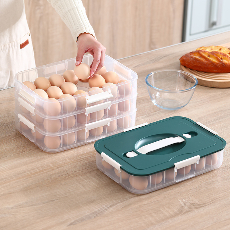 手提保鲜盒鸡蛋收纳盒厨房冰箱密封防尘食品级塑料多层收纳鸡蛋